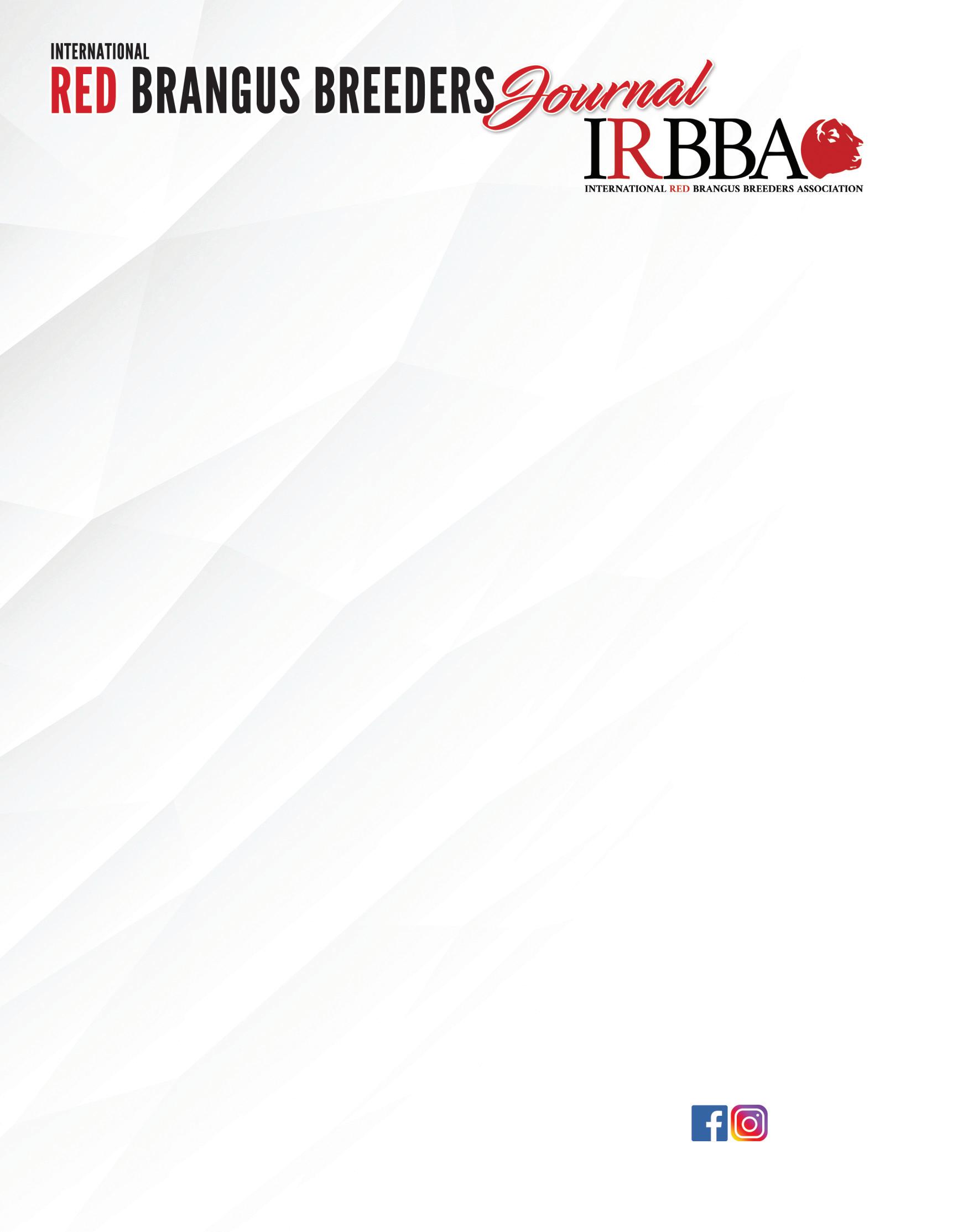 Nos enorgullece presentar nuestra próxima edición de The Red Brangus Journal. Esta publicación es nuestra presentación bianual que destaca los beneficios y cualidades de nuestra gran raza y exhibe a nuestros criadores de Red Brangus. Nuestro Journal viajará por todo Estados Unidos y el Mundo Brangus, llegando a las manos de ganaderos en todas partes. Gracias a nuestros anunciantes patrocinadores por su compromiso con promover y difundir la presencia del Red Brangus en todo el mundo.