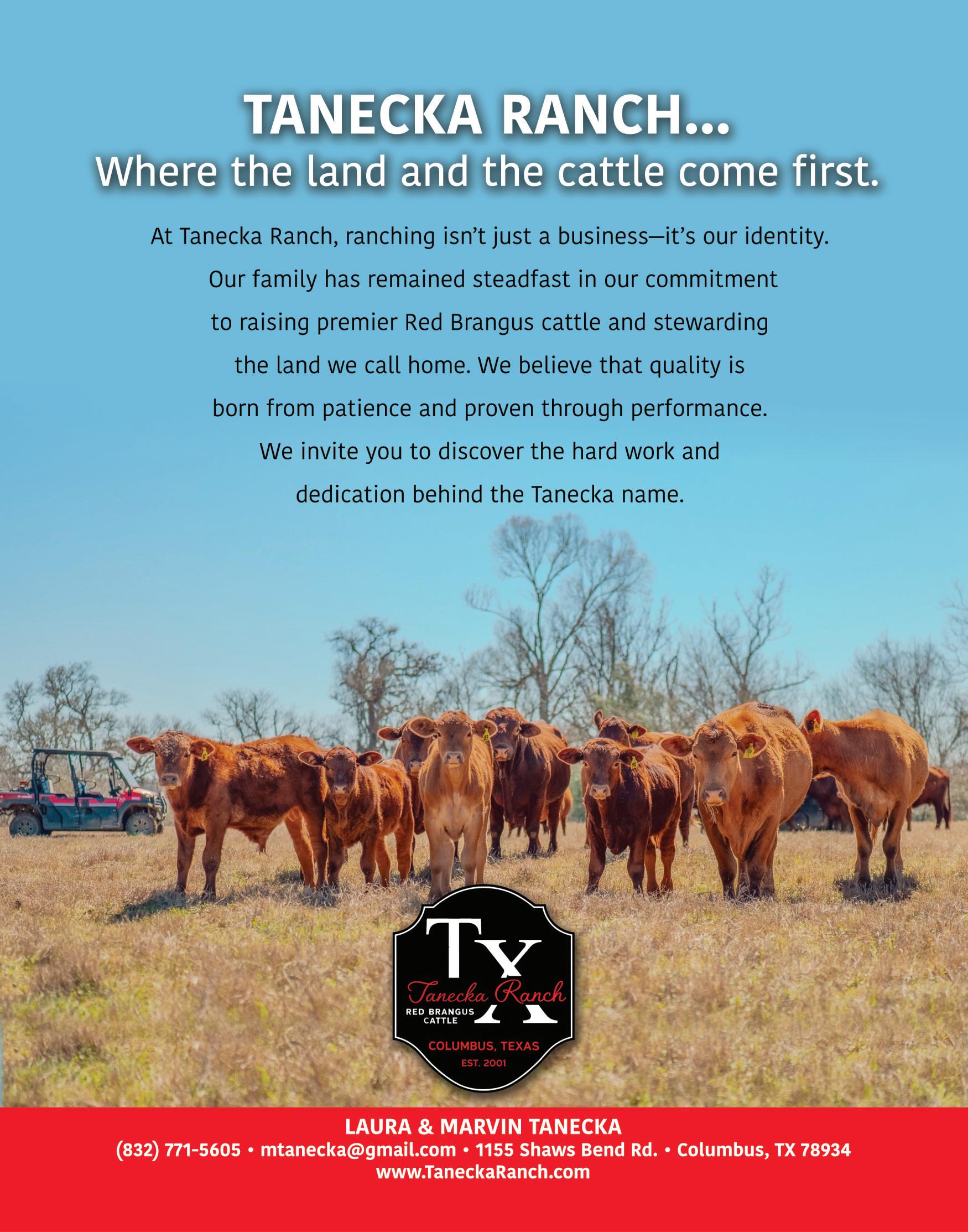 of Don’s Red Brangus herd was originally purchased more than a century ago by his grandparents. Don grew up with a deep respect for their way of life and a clear sense that agriculture was not just an occupation, but a responsibility.