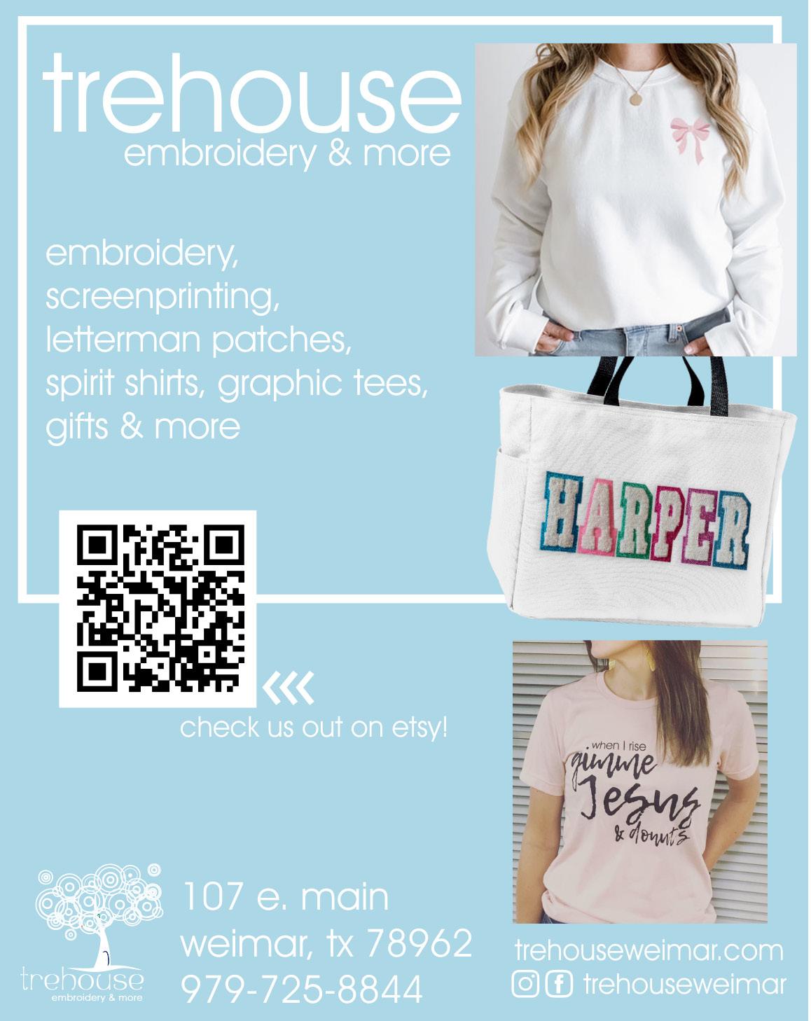 TreHouse Embroidery & More 107 East Main Street, Weimar 979-725-8844