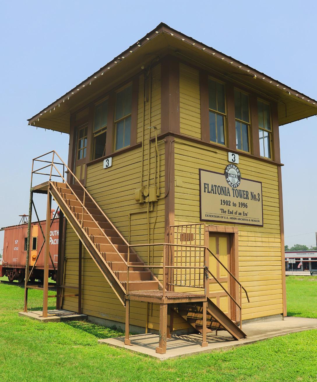 Adjacent to the museum is the FLATONIA RAIL PARK, home to several notable attractions. Visitors can explore the restored Flatonia Tower No. 3, a two-story rail switching tower constructed in 1902, which remained in operation until 1996. The park also features a fully restored caboose rail car and the historic Flatonia Jail, known as the calaboose, built in 1890. These structures provide a tangible connection to the town’s past and offer insight into the daily operations of early railroad life.