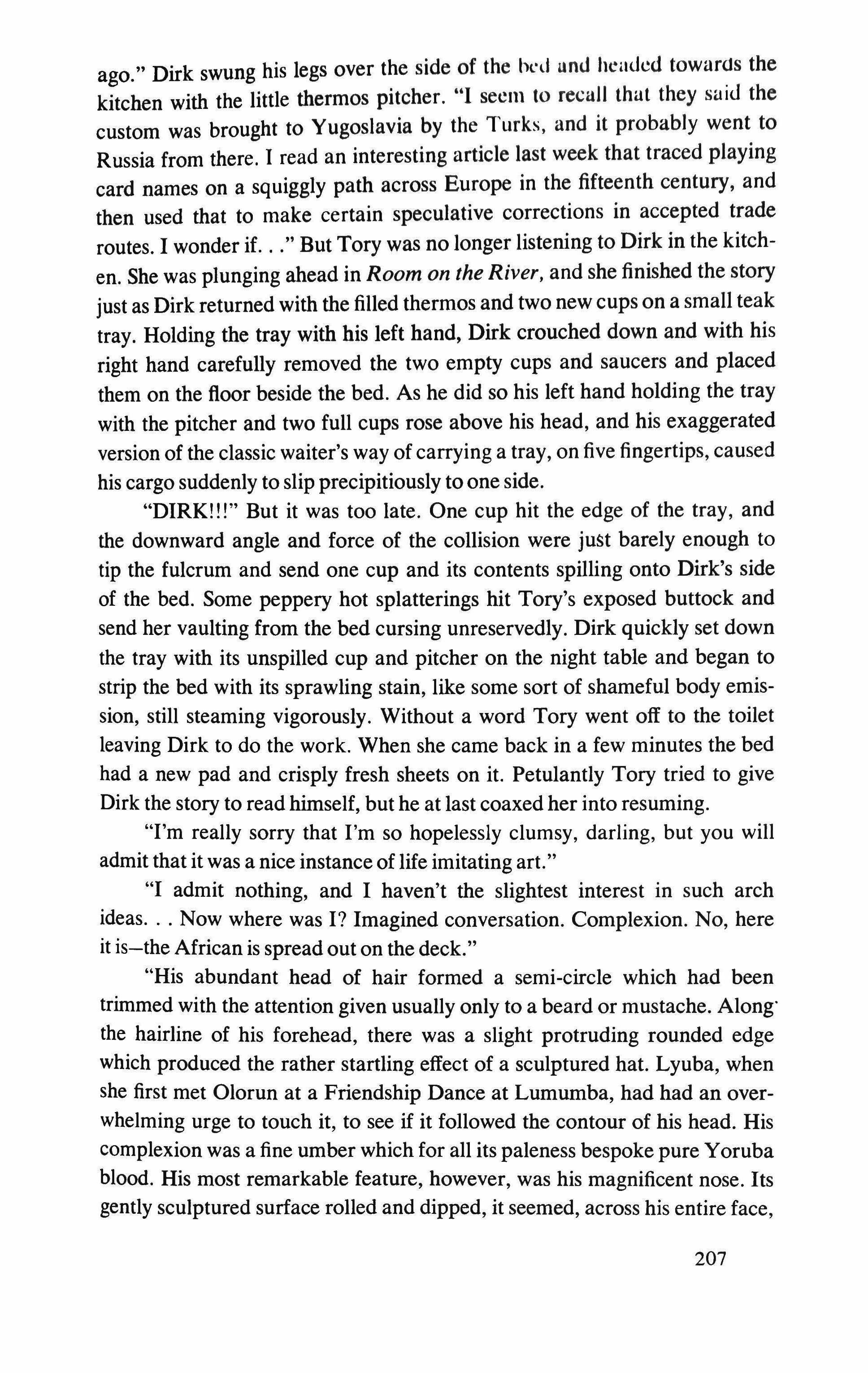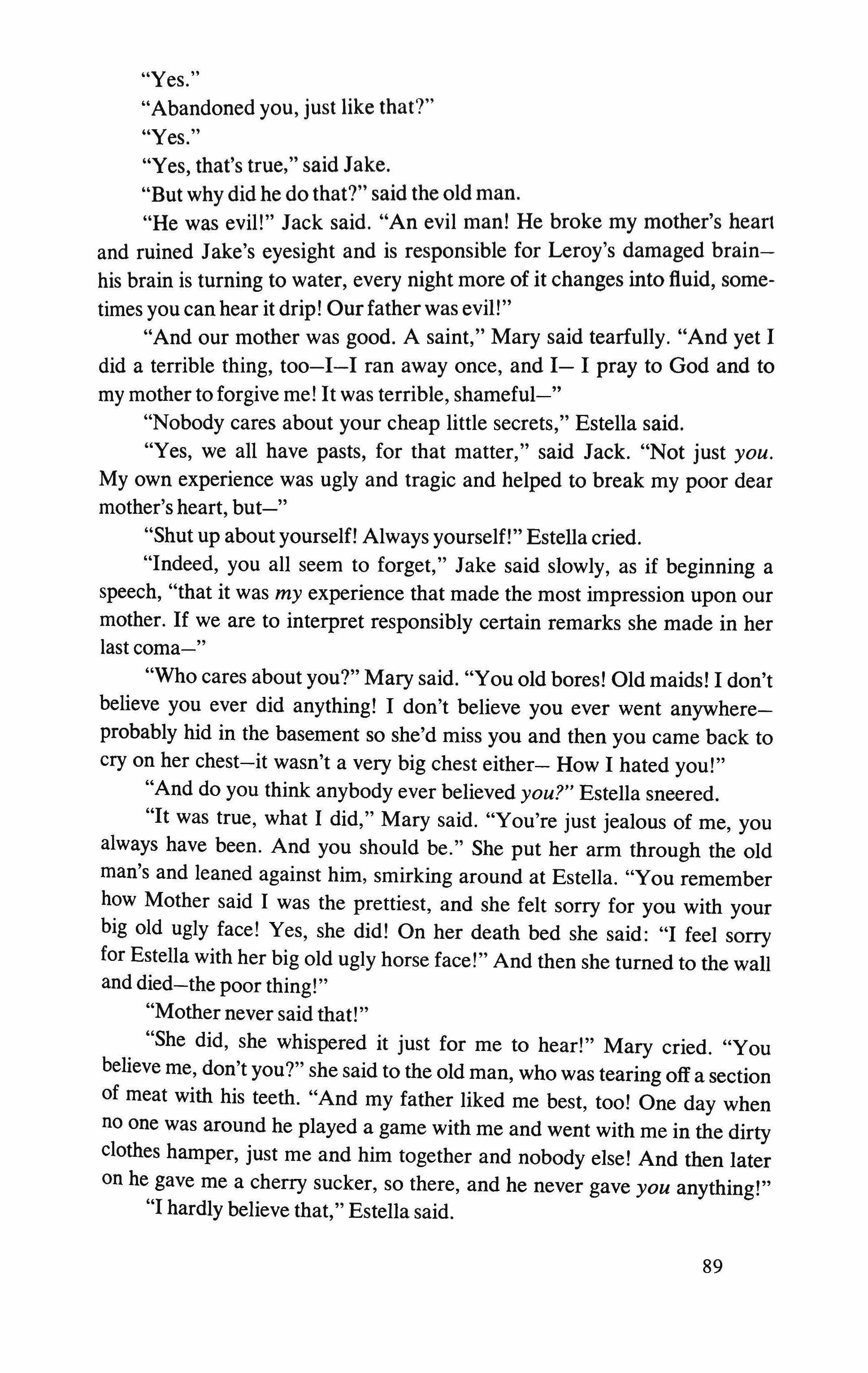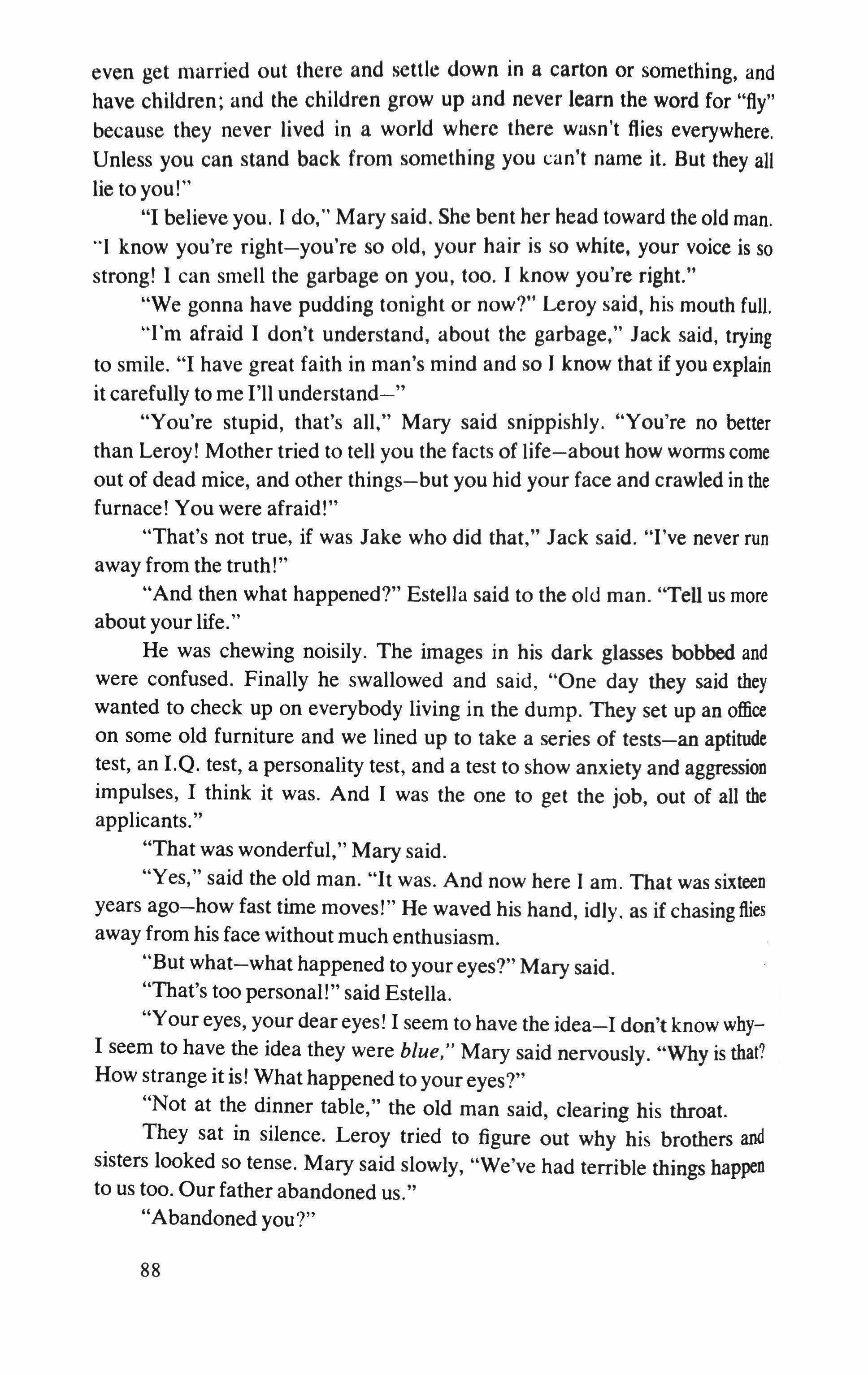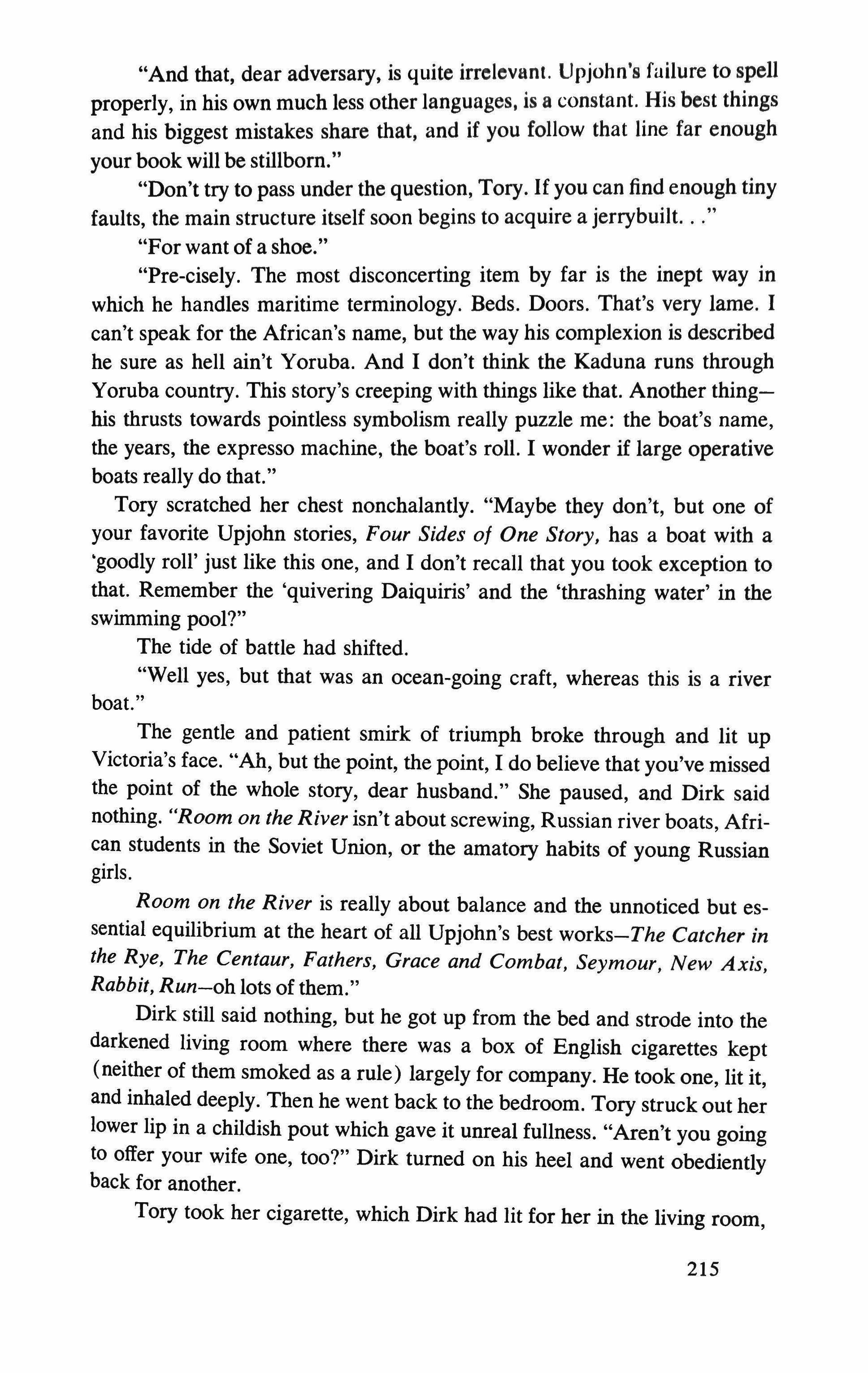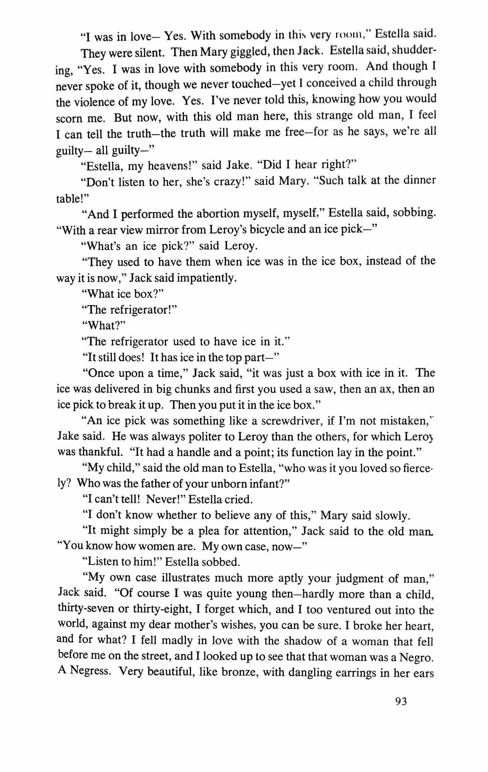 In a world which has doggedly refused to see itself as anything but metaphor for a hundred years, this could be a refreshing throwback in the American idiom. Mutha and Celine and Inque do exist, in literary fact, just as the Calcutta of the dream does: we need not prove it either spatially or temporally.