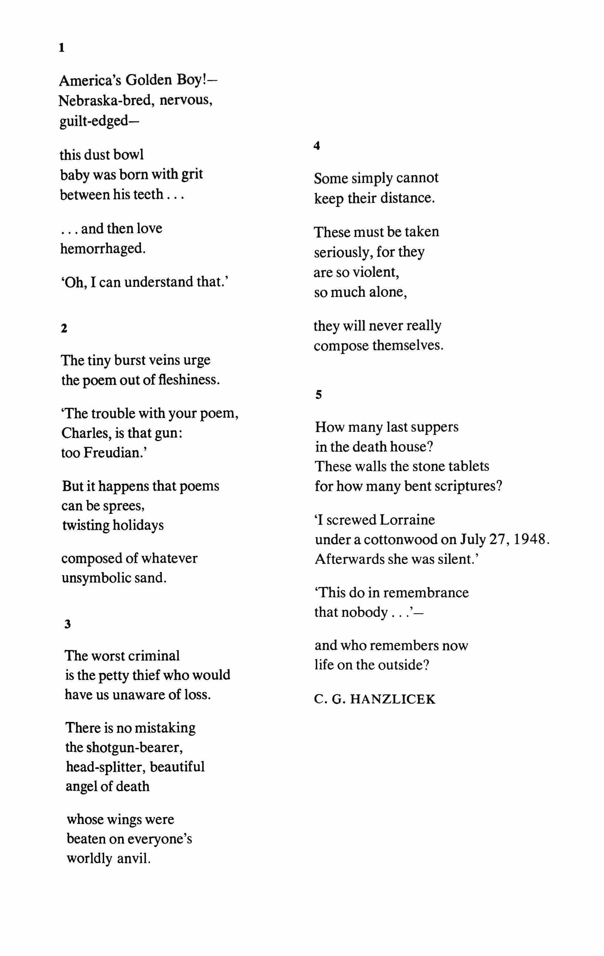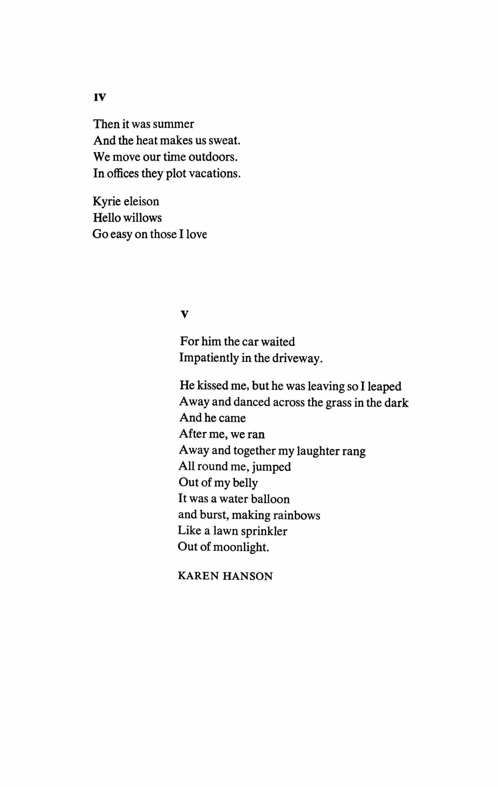 "What superb poems - certainly she is writing some of the finest poetry in English today. She has an imaginative apprehension of experience and precisely the right power of expression for it; reading her work is a continual reward. She's terrific." HARRY T. !\100RE