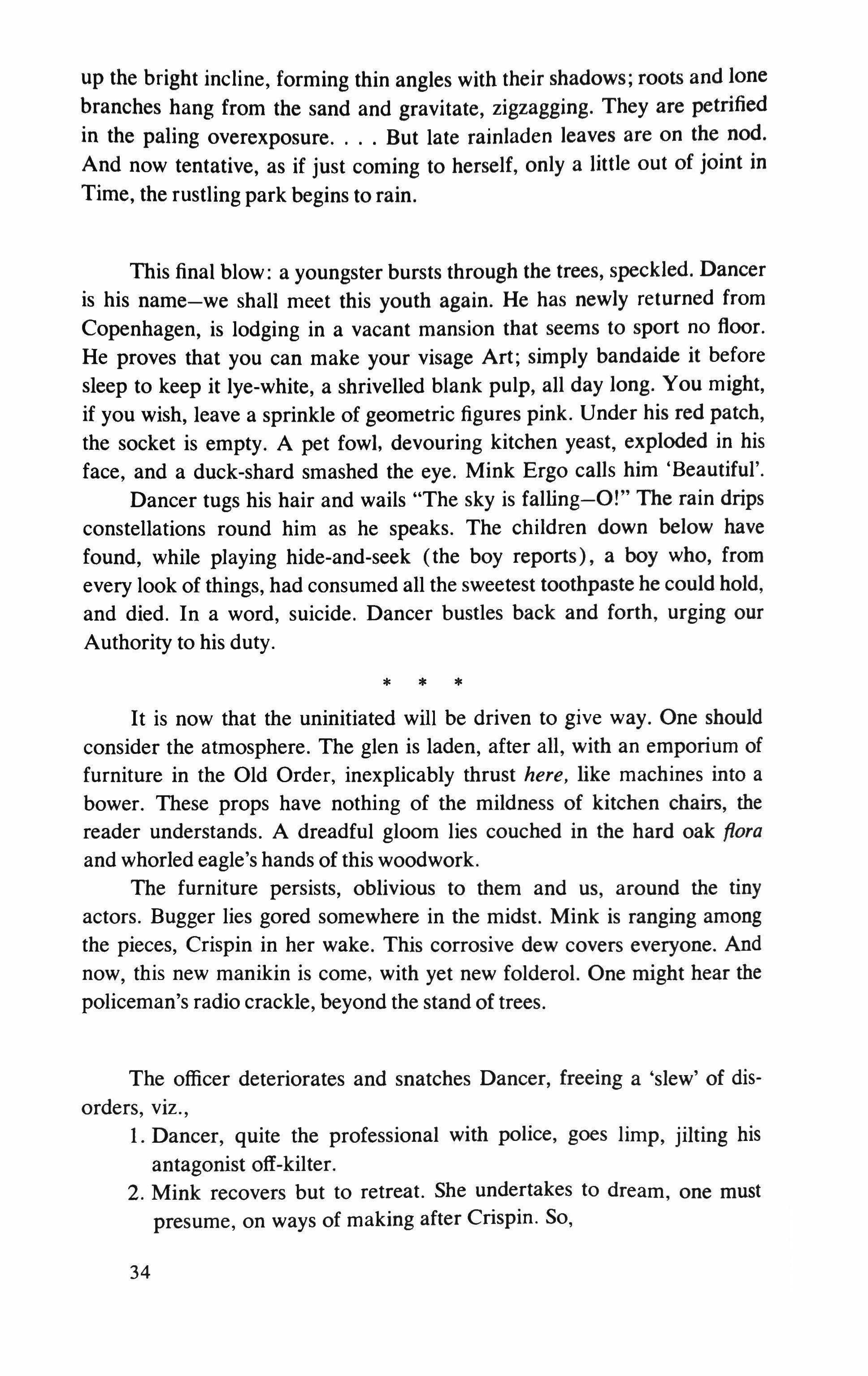 comment as render them fictional narrative. Finally the whole-stage directions, dialogue, scene changes-is written in rough blank verse, for no ascertainable reason other than that Twigge-Chafe wanted to demonstrate how possible it would be to write a novel in the form of verse-drama.