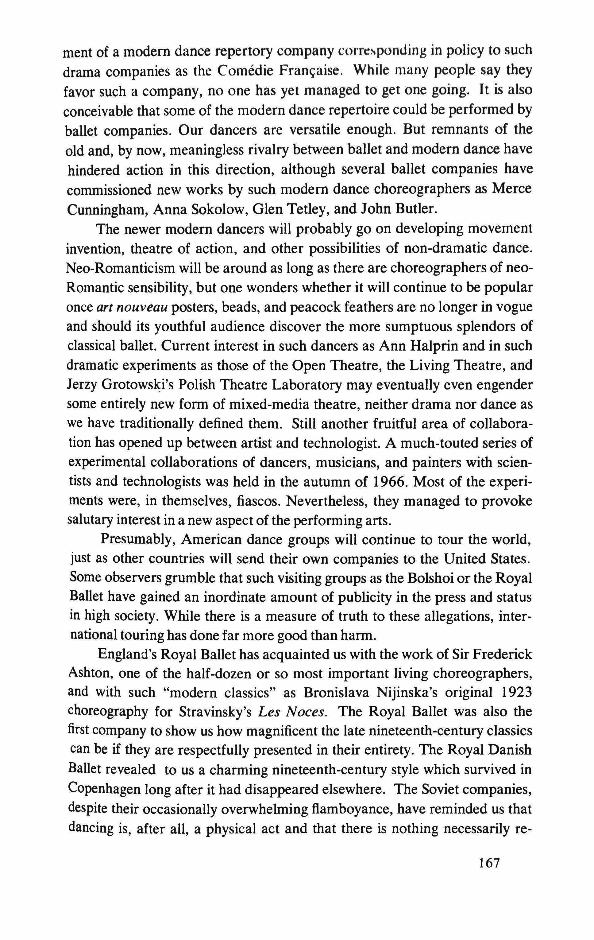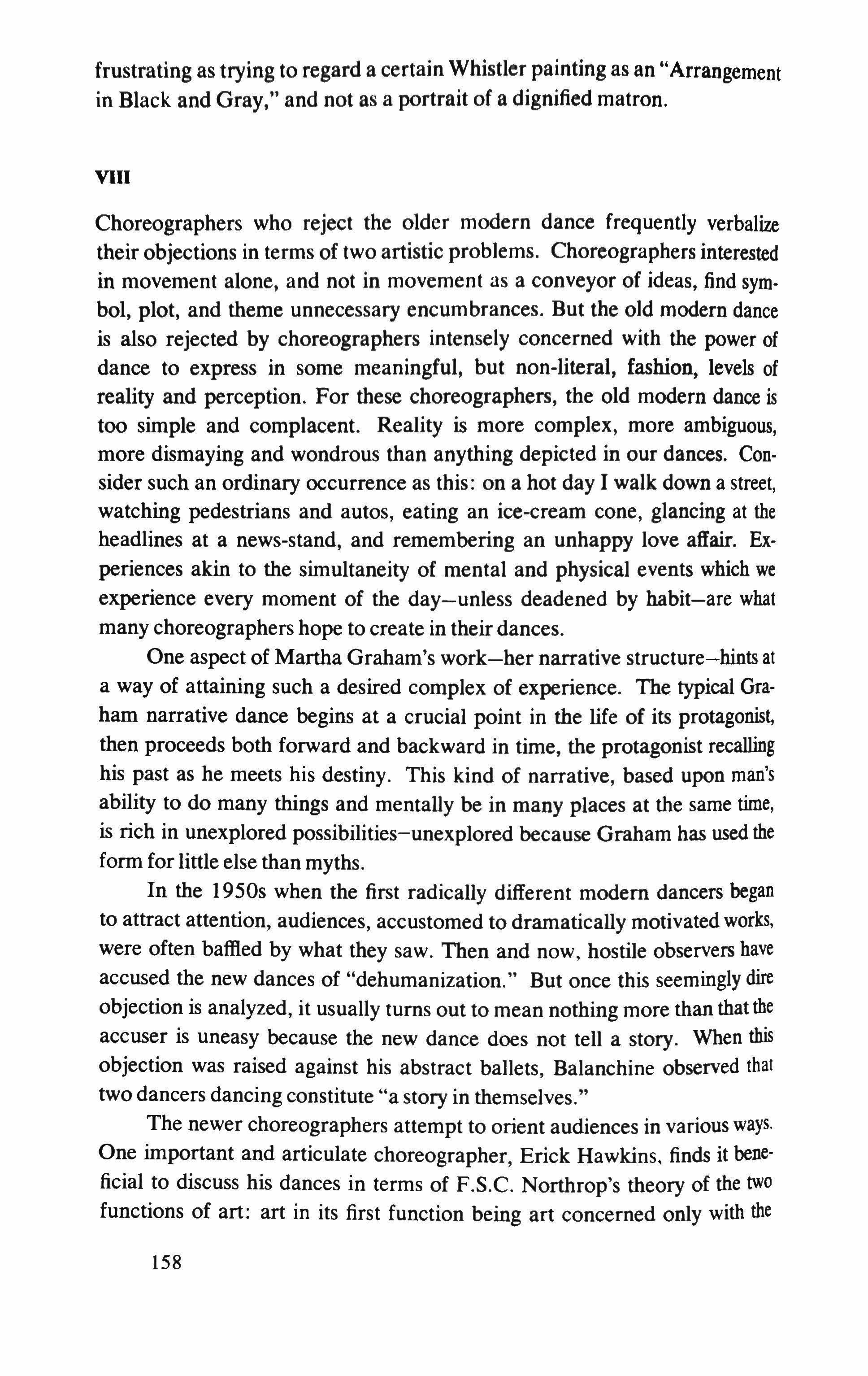 But don't get me wrong, as the politicians say. Outside its philosophical dimension, Greenberg's formulation ought to have enormous value in the actual practice of the arts, particularly the literary arts. For example, compare the most interesting French theater of the fifties with our own. The common concern of figures like Beckett, Ionesco, Genet is theatricality: questions of rhetoric, action, mobility, the assumption of identity and the like. The brilliant results contrast shamefully with our own theater, where an inordinate overload of theatricality in the pejorative sense exists wholly bereft of that critical capacity Greenberg mentions. Unfortunately, a similar technical insight into the novel has not yet been forthcoming, though I think that for all his cold limitations, Robbe-Grillet will eventually stand