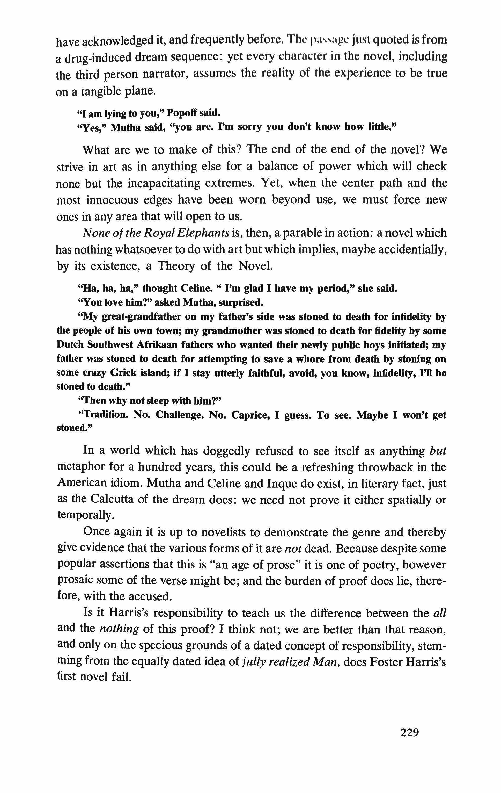 None of the Royal Elephants is, then, a parable in action: a novel which has nothing whatsoever to do with art but which implies, maybe accidentially, by its existence, a Theory of the Novel.