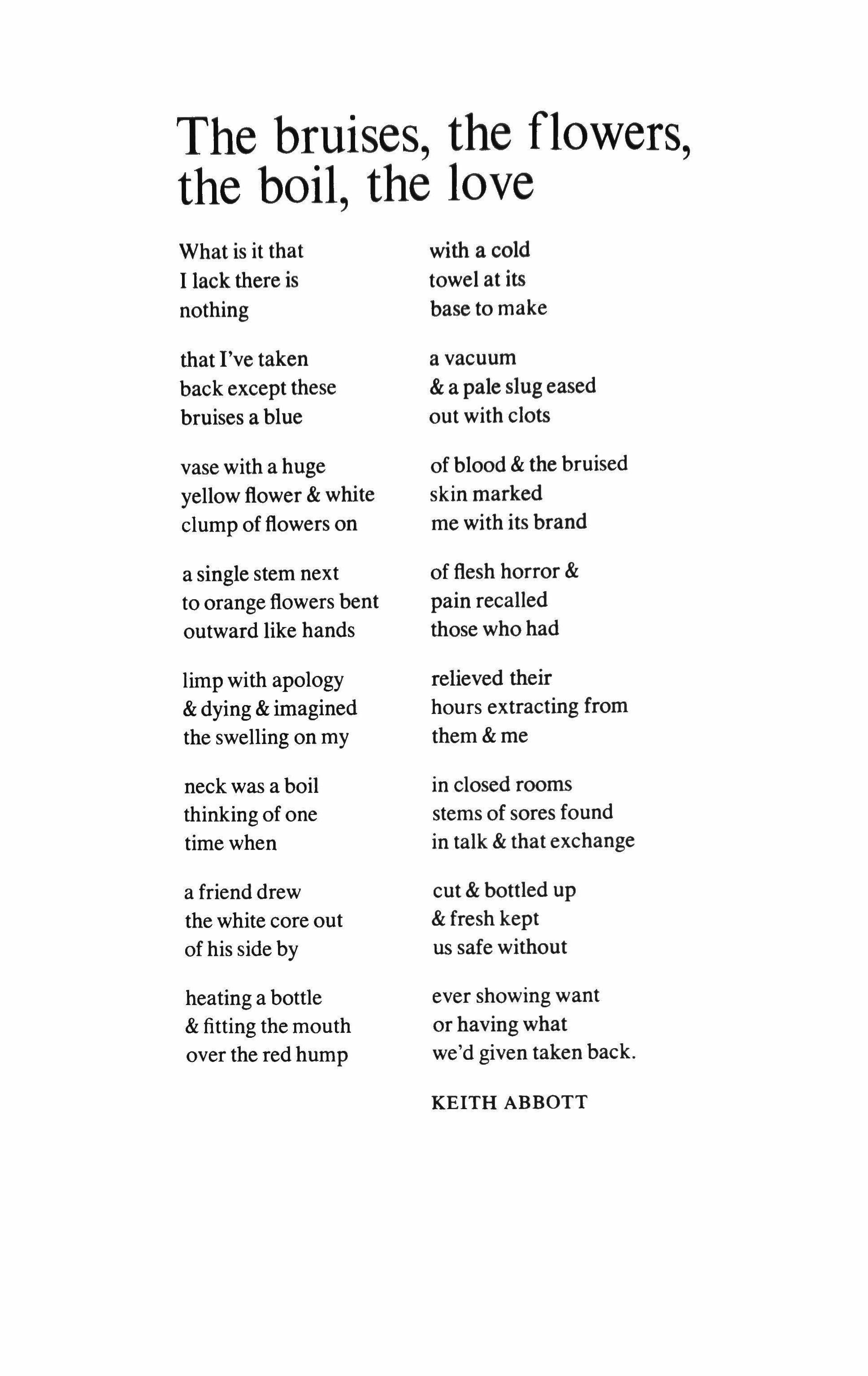 Fragments You are covering the cot With sheets. I feel No end. No end. It stalls In me. It's still alive.