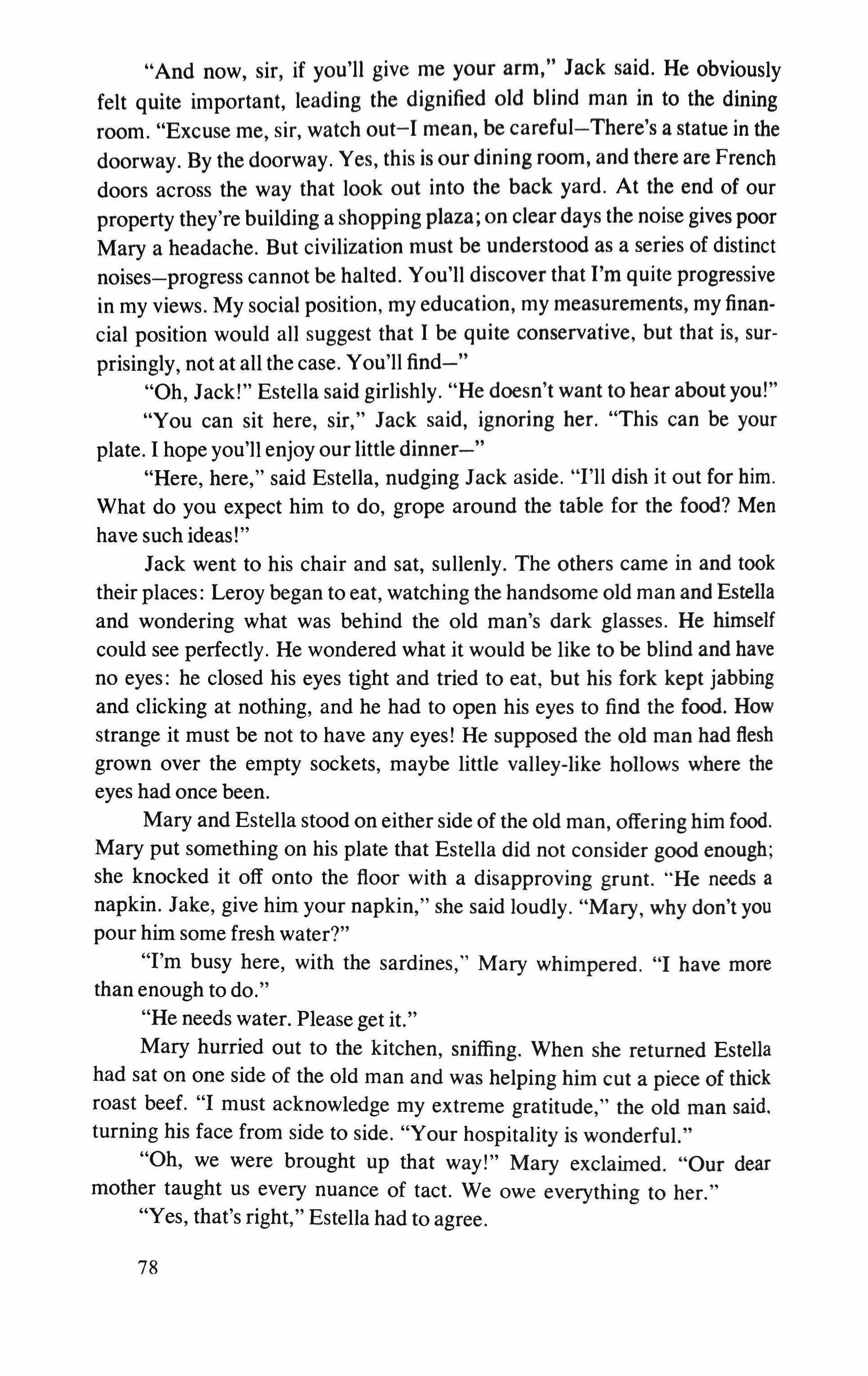 If Twigge-Chafc's writing prevents the book from having any literary or dramatic success, what is still central is the form, the intentions. And if we do overlook the failure-argument's sake, for the moment-what should have been accomplished by these alleged subtleties is what we've been told more tactfully for centuries: that things don't change; that every age and level rediscovers what has always been there; that every new thing is simply a restructuring of something else, primeval, for which we have finally, or again, learned the language. The importance of form is that it be proper for transmitting its message. We already know what we will be told; we only have to learn to say it for ourselves.