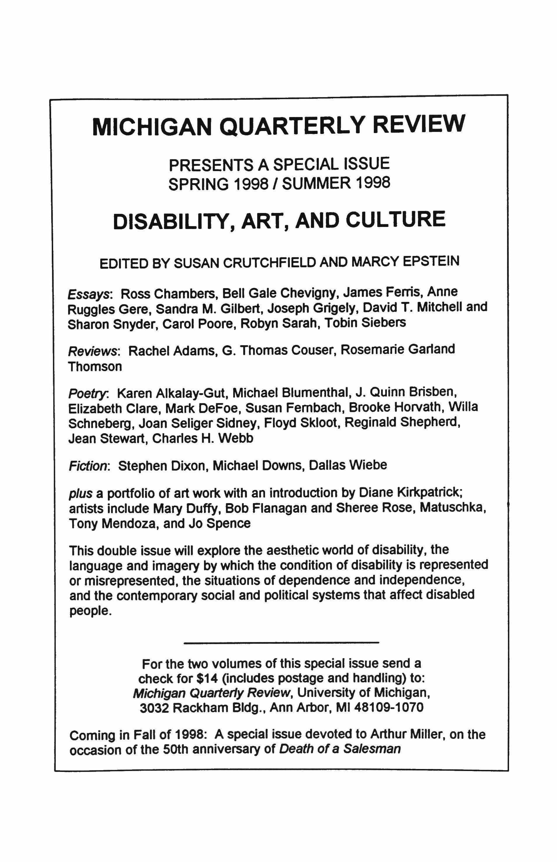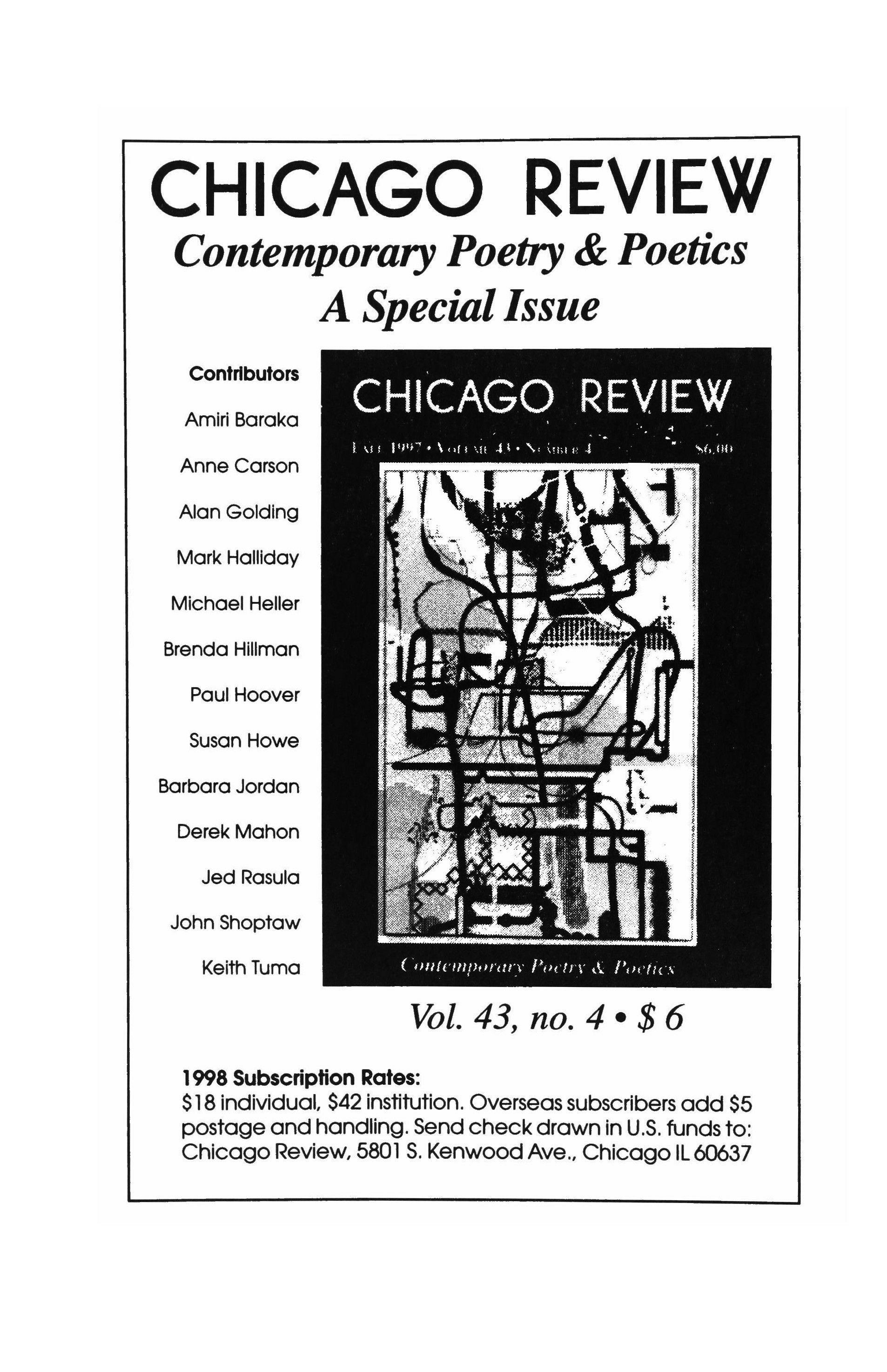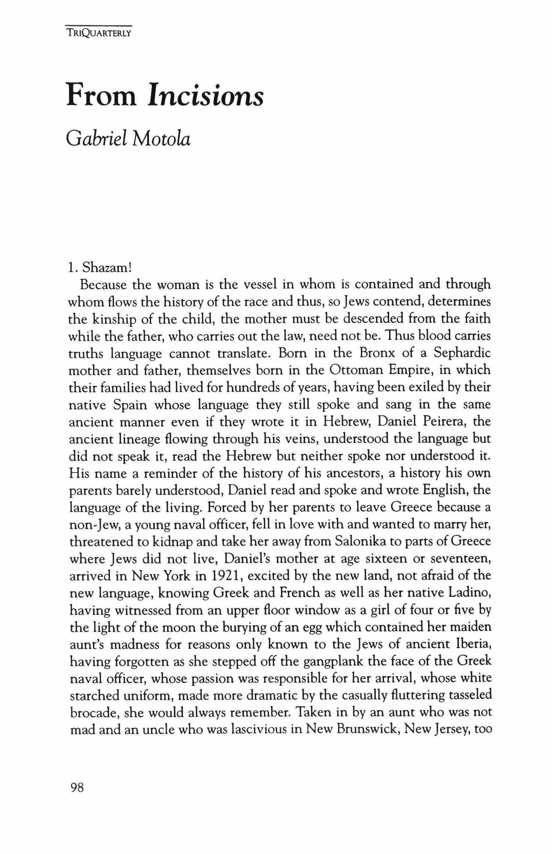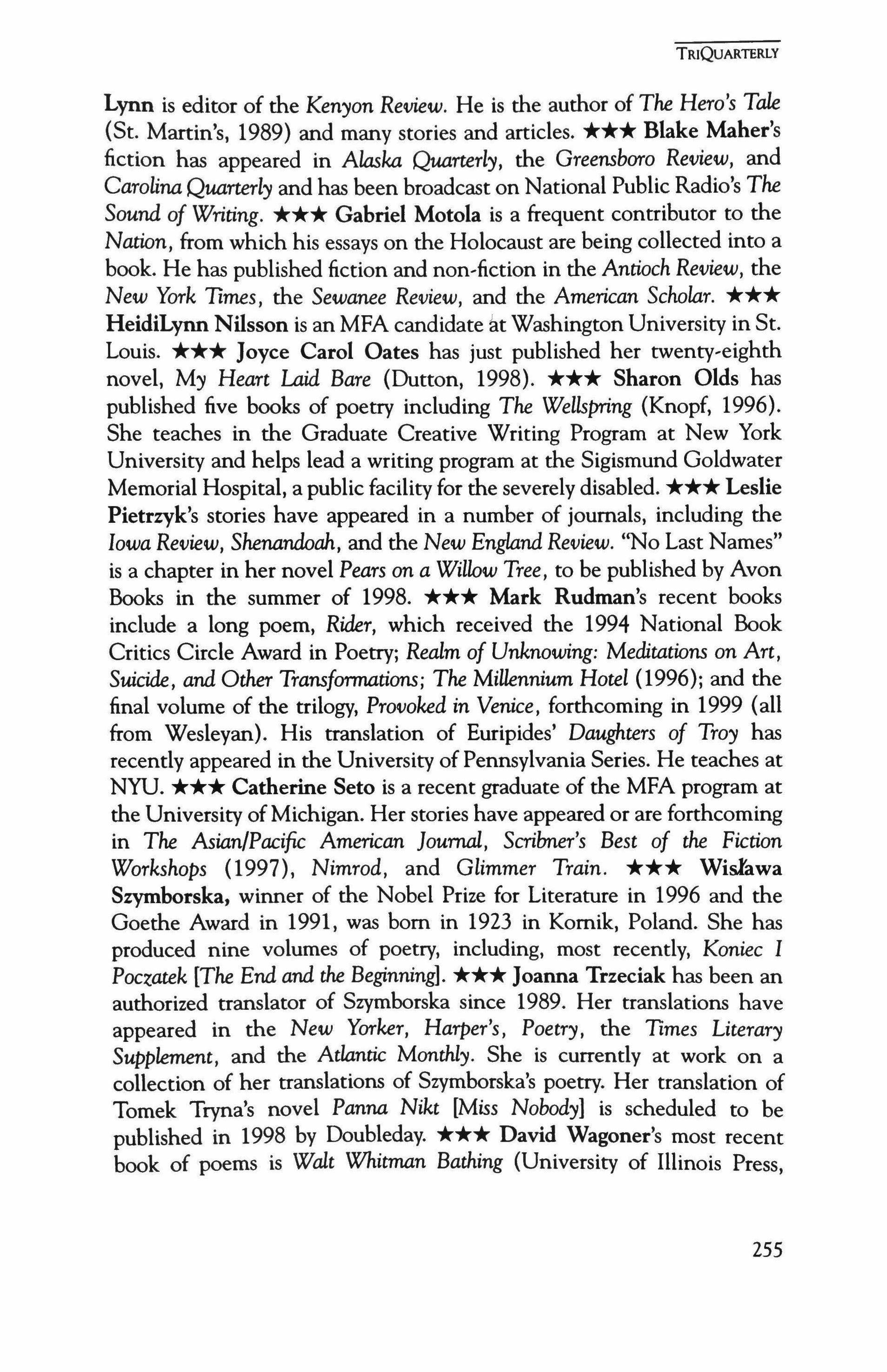Copyright © 1998 by TriQuarterly. No part of this volume may be reproduced in any manner without written permission, The views expressed in this magazine are to be attributed to the writers, not the editors or sponsors. Printed in the United States ofAmerica by A to Z Printing; typeset by TriQuarterly. ISSN:.0041-3097.