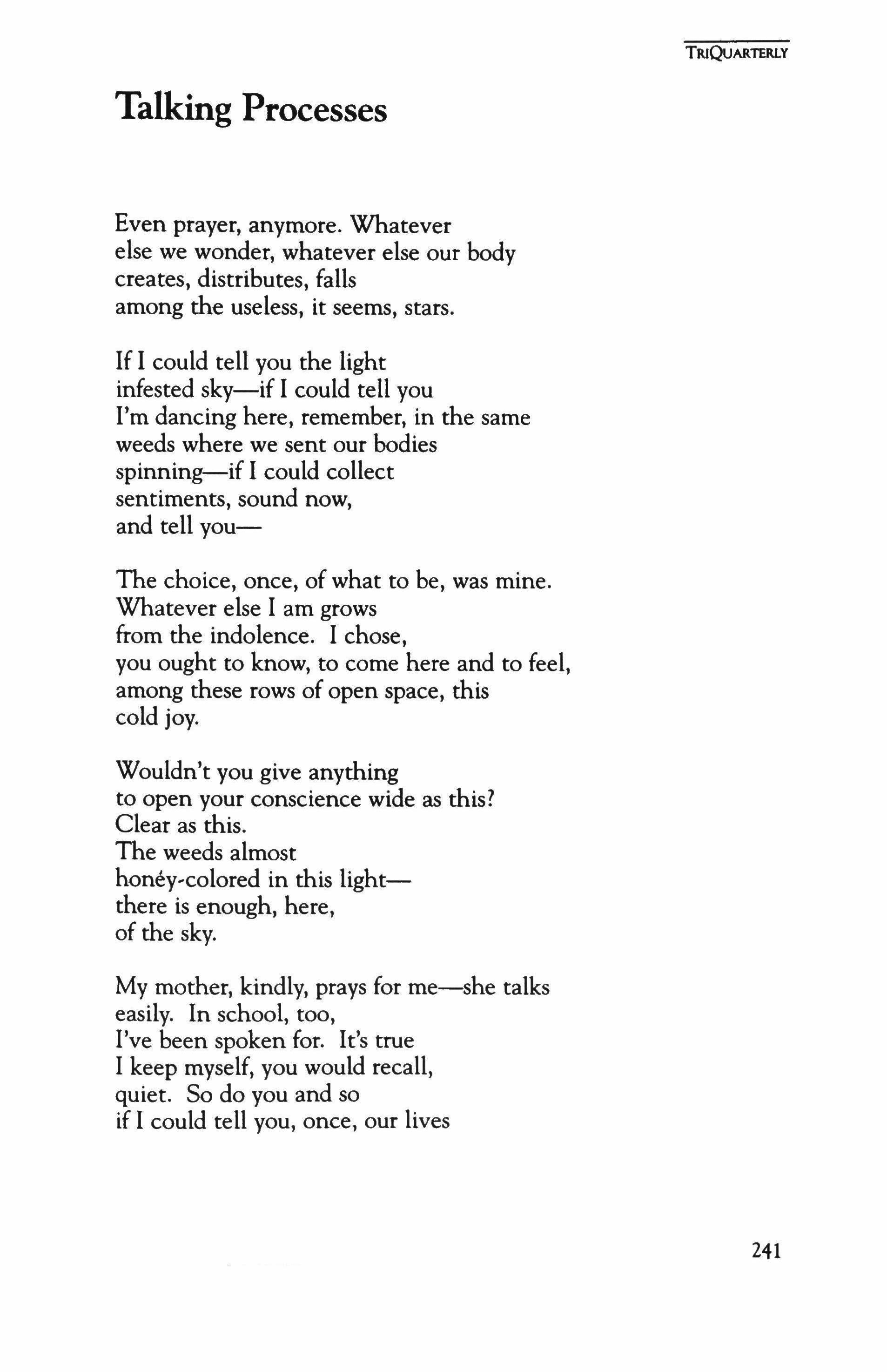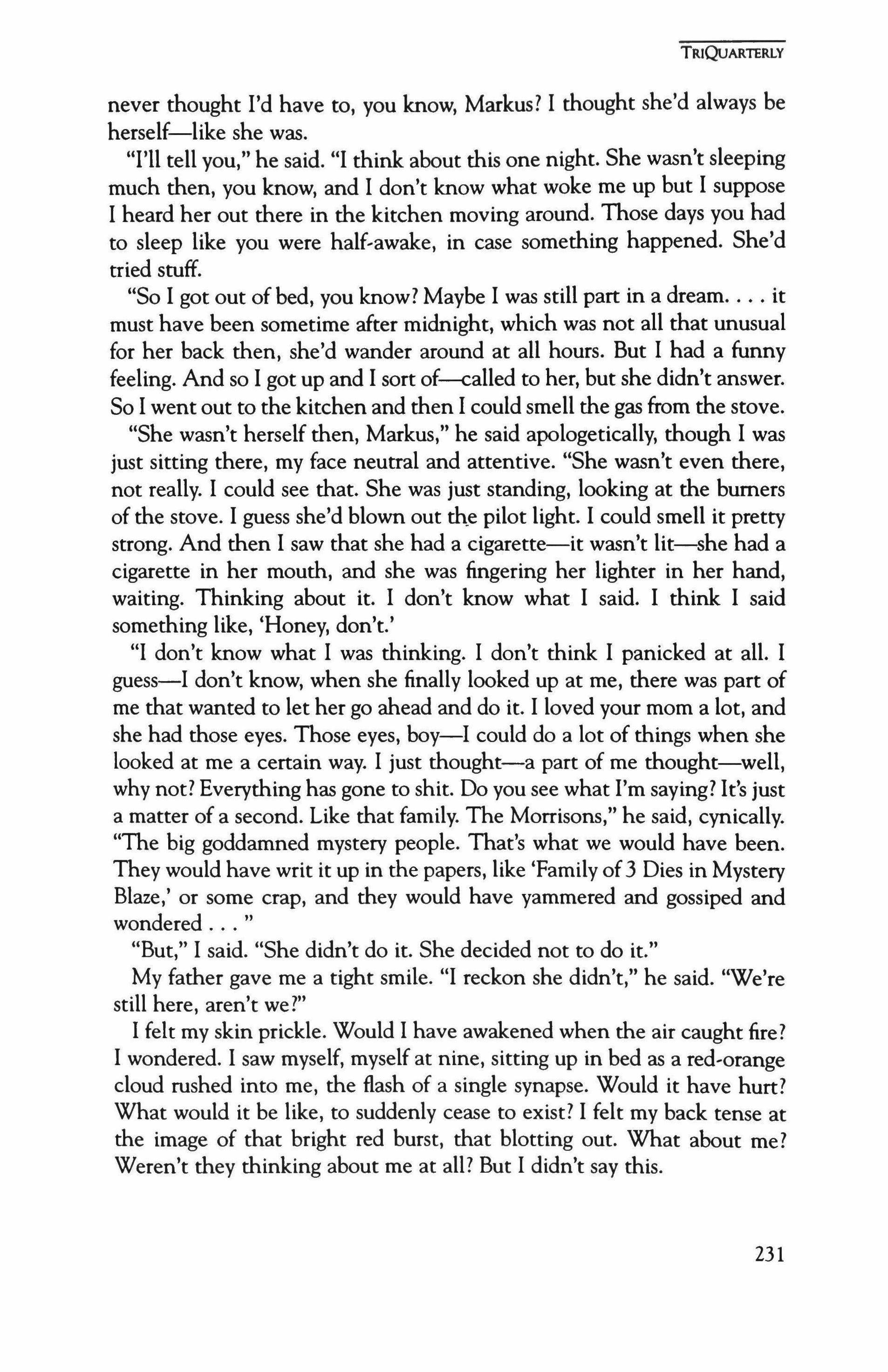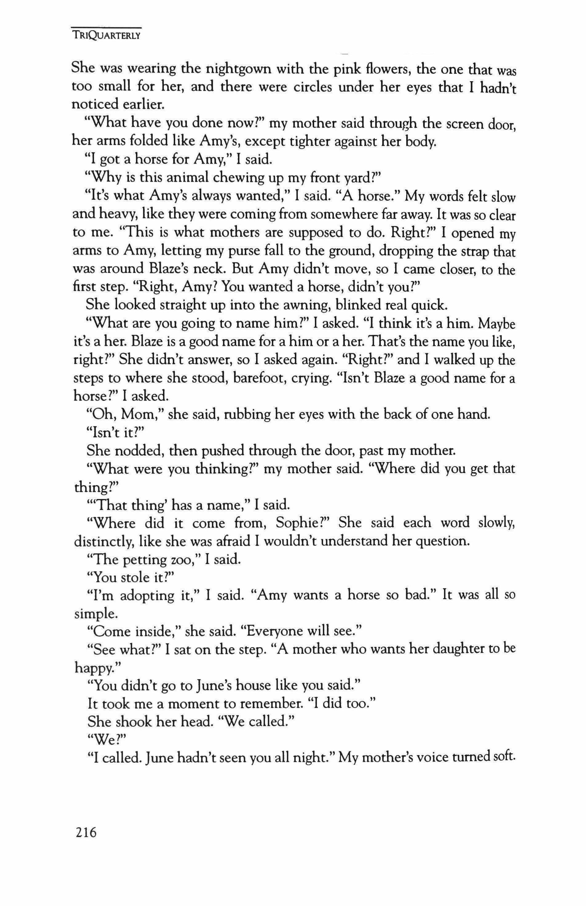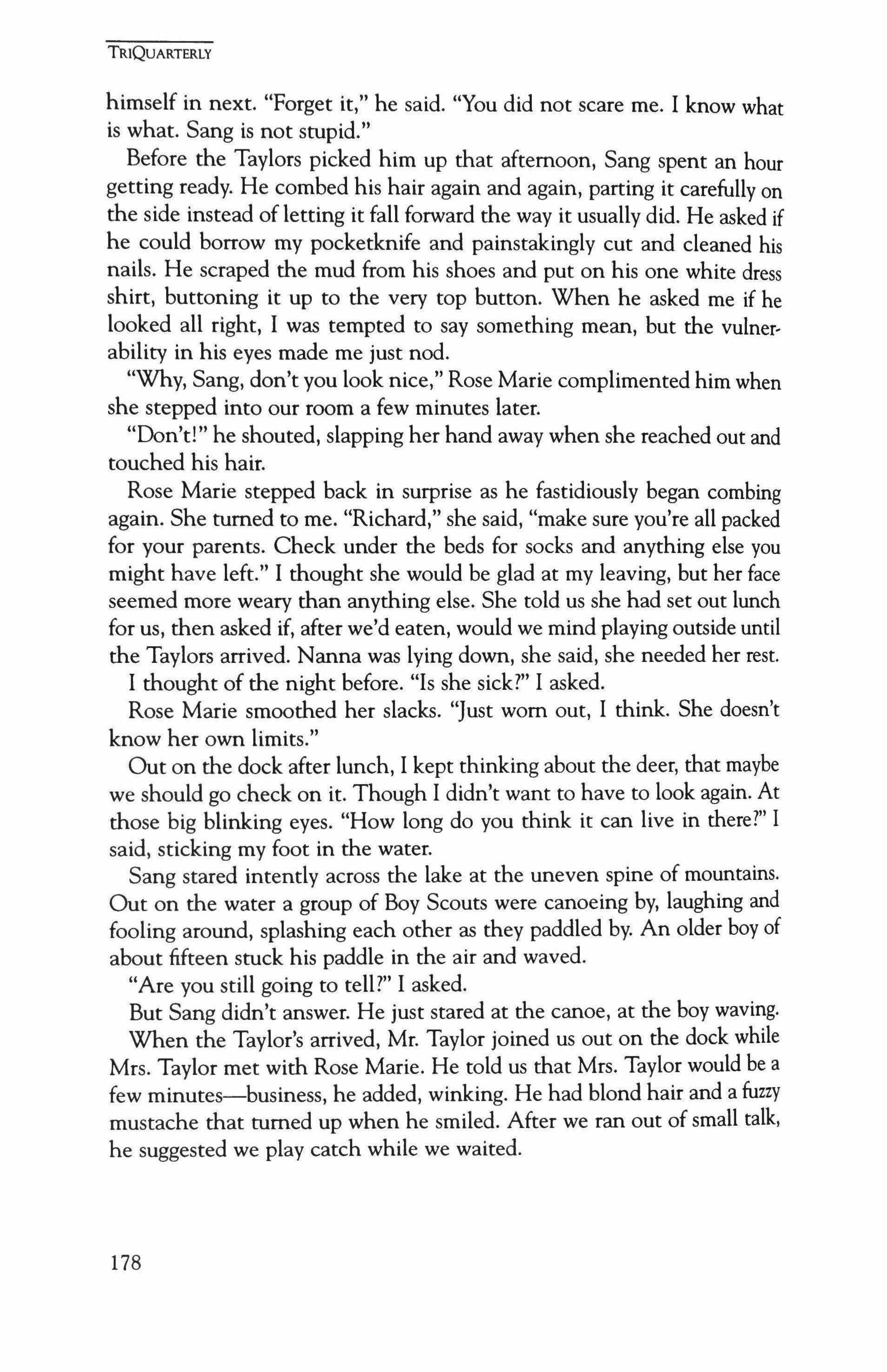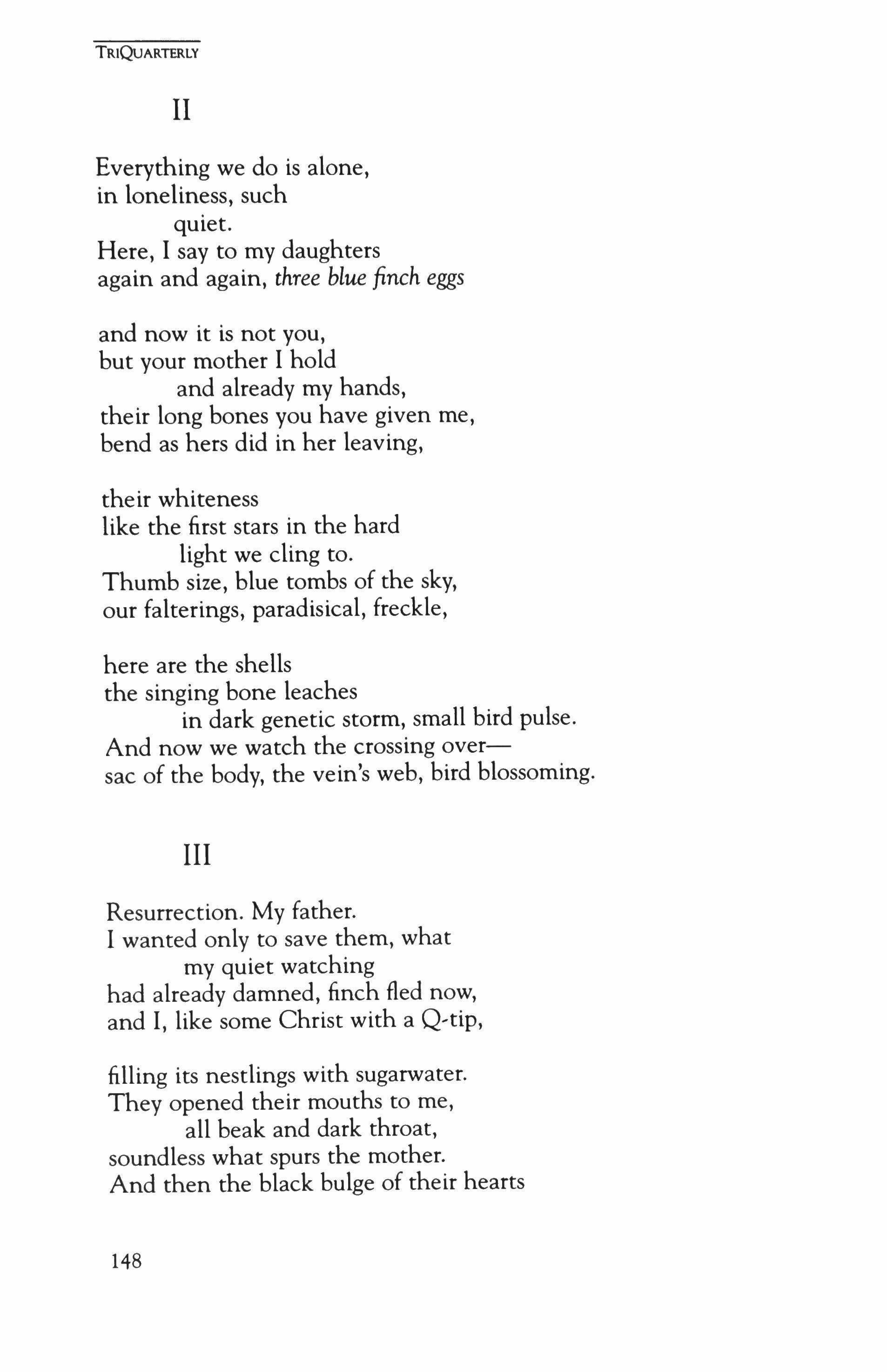 Finch Nested poem 147 Kathryn Winograd Grounded poem 150 Kawita Kandpal The Competition poem 152 Rachel Levine Killer stary 154 Catherine Seto Over the Moon stary 166 Blake Maher Decadence stary 183 Brian Boularey No Last Names novel excerpt 198 Leslie Pietrzyk Among the Missing stary 219 Dan Chaon Avulsion poem 236 Kathleen Halme By Fire; By Earth poems 237 Sharon Olas ��We Are Easily Reduced"; Talking Processes poems 239 HeidiLynn Nilsson