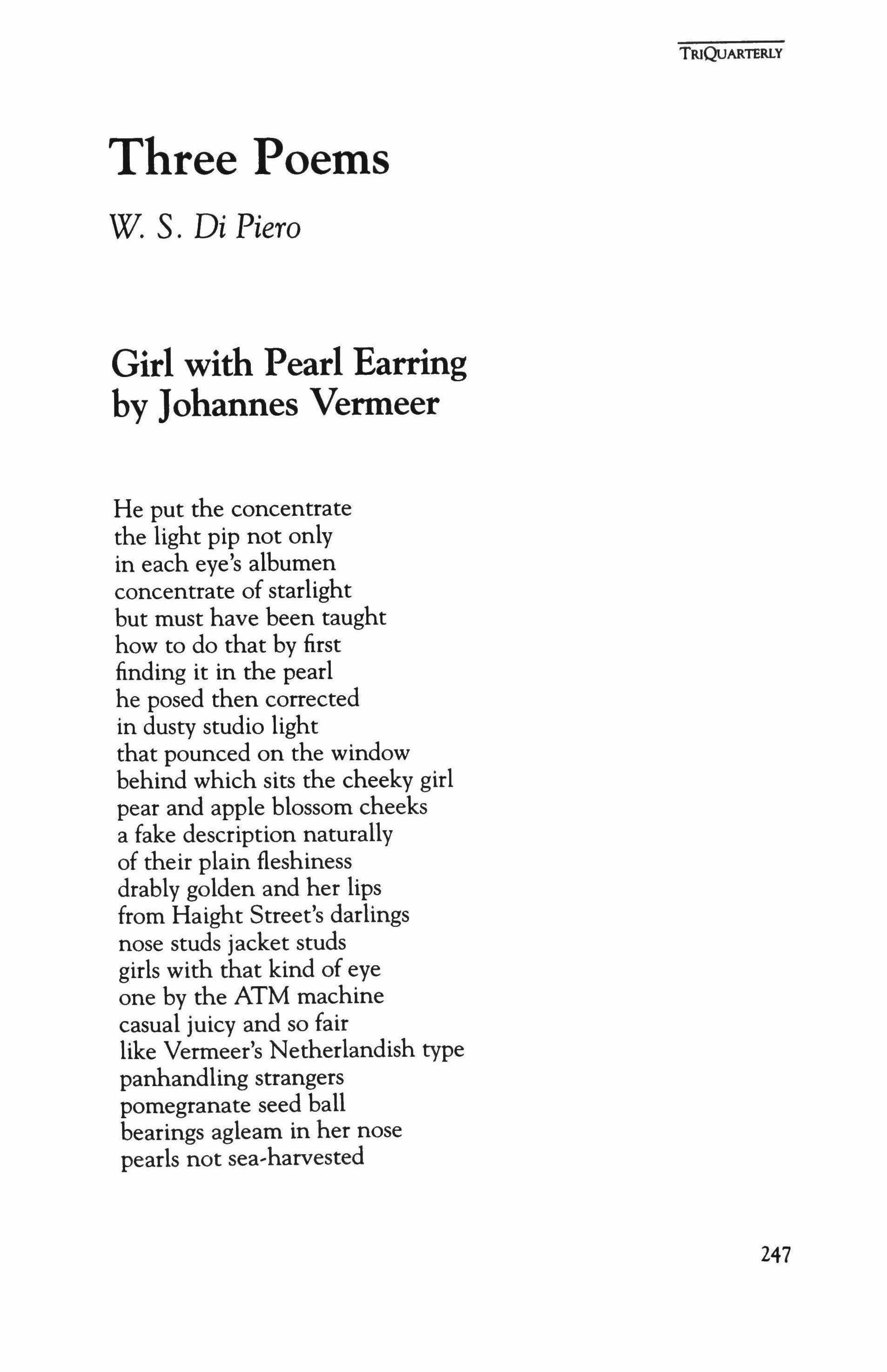 Girl with Pearl Earring by Johannes Vermeer; The 1950s; The Bull Roarers poems 247