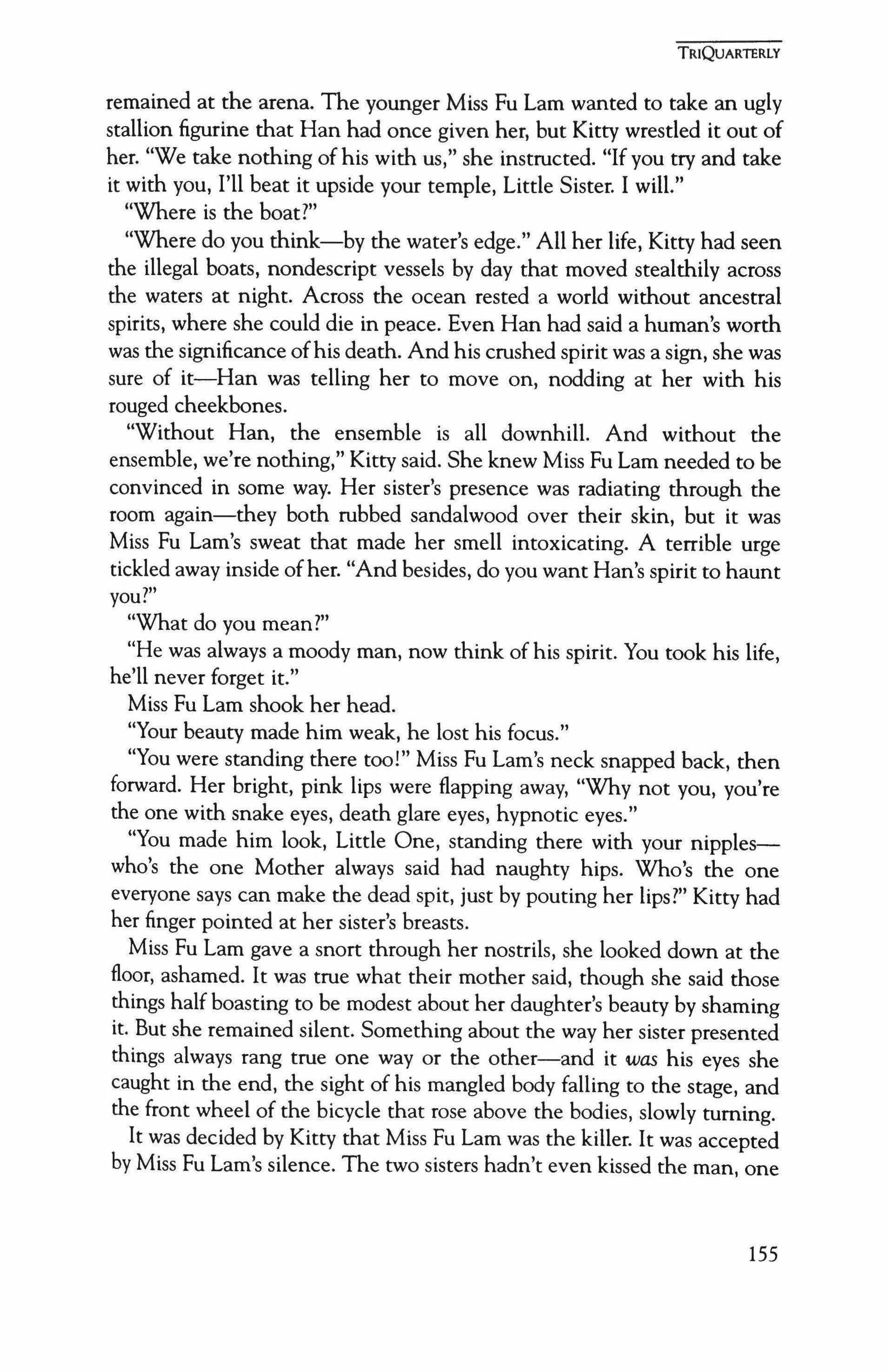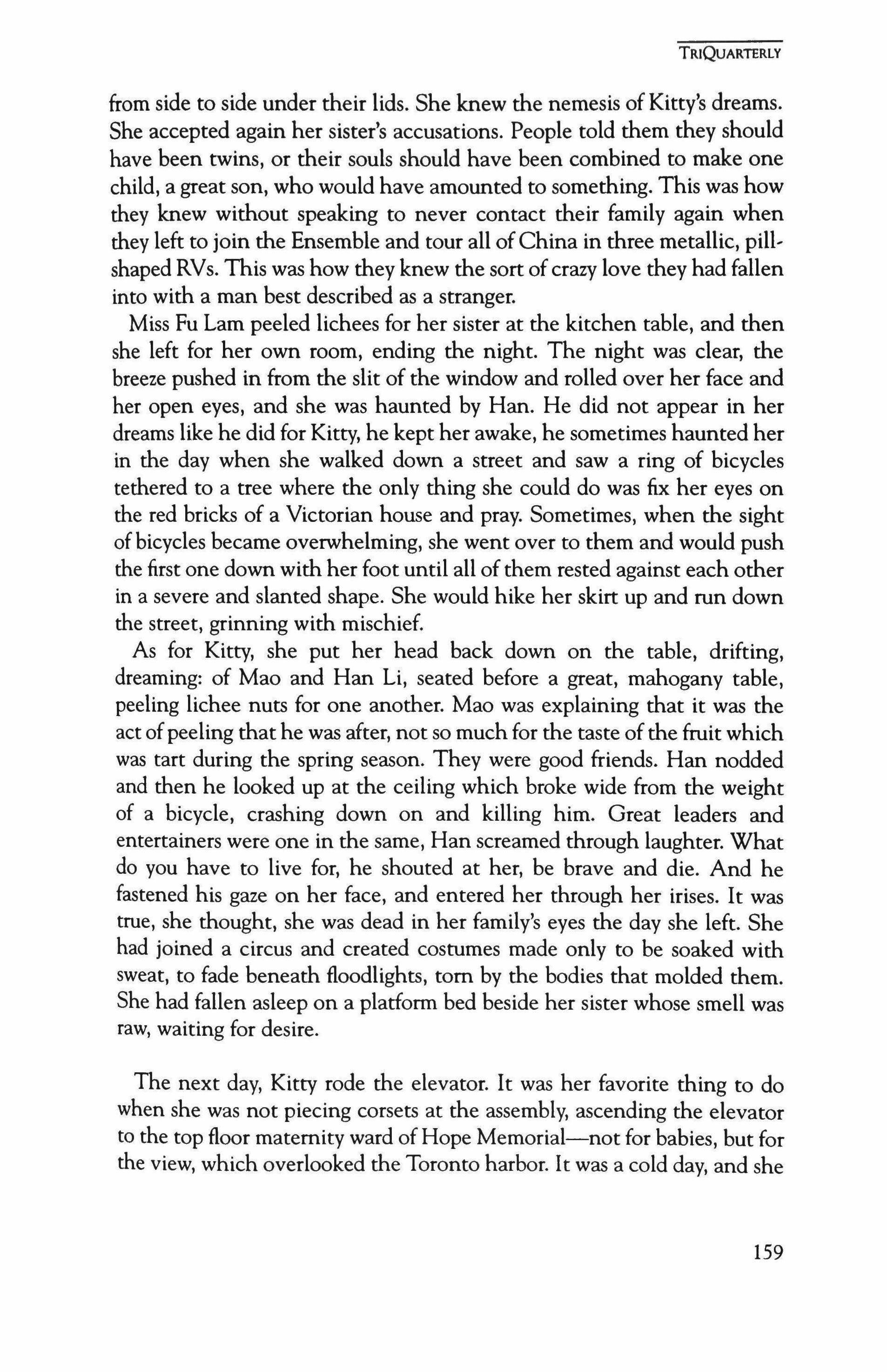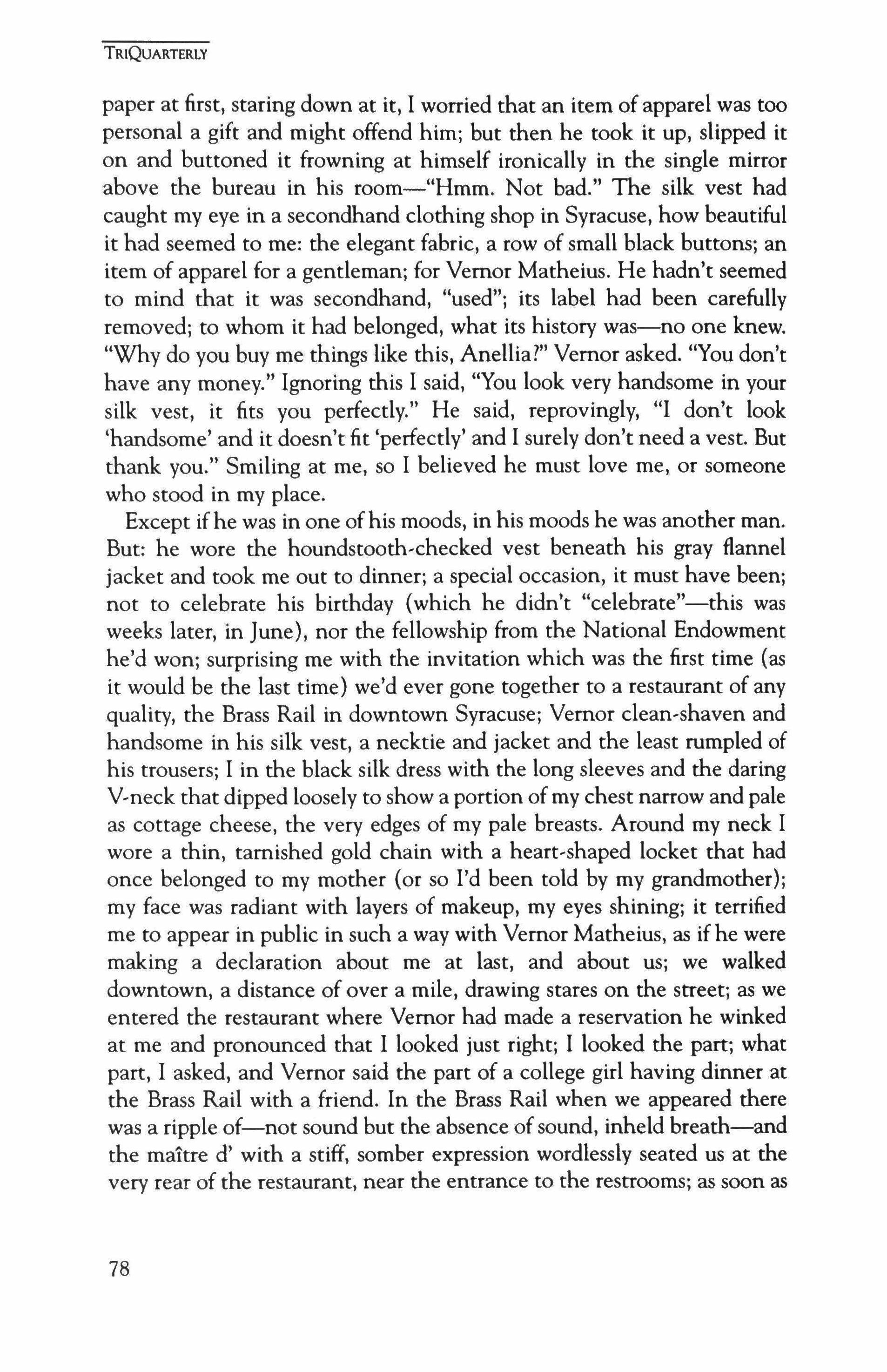 Publication of TriQuarterly is made possible in part by the donors of gifts and grants to the magazine. For their recent and continuing support, we are pleased to thank the Illinois Arts Council, the Lannan Foundation, the John D. and Catherine T. MacArthur Foundation, the National Endowment for the Arts, the Chicago Community Trust, and individual donors.