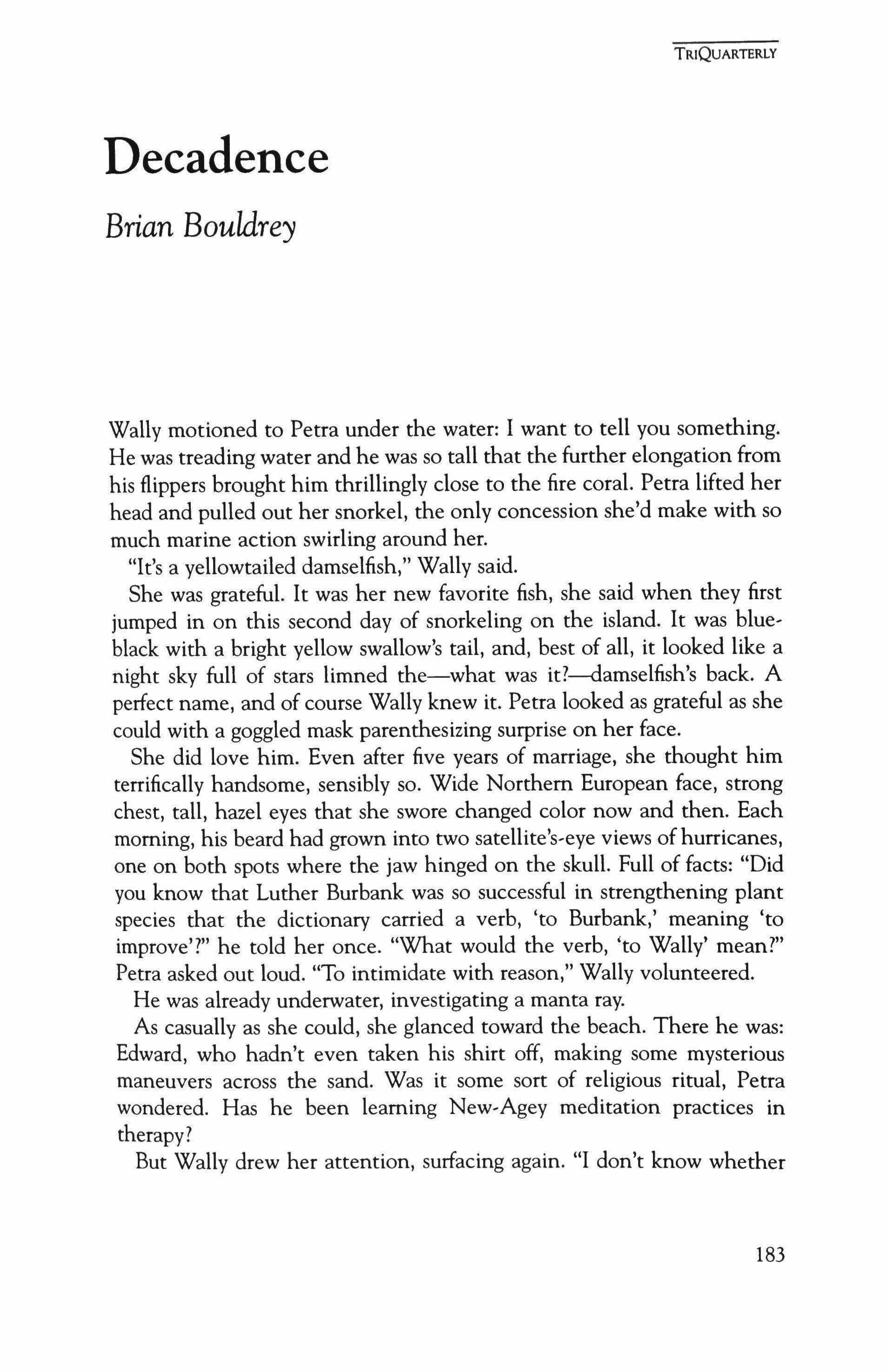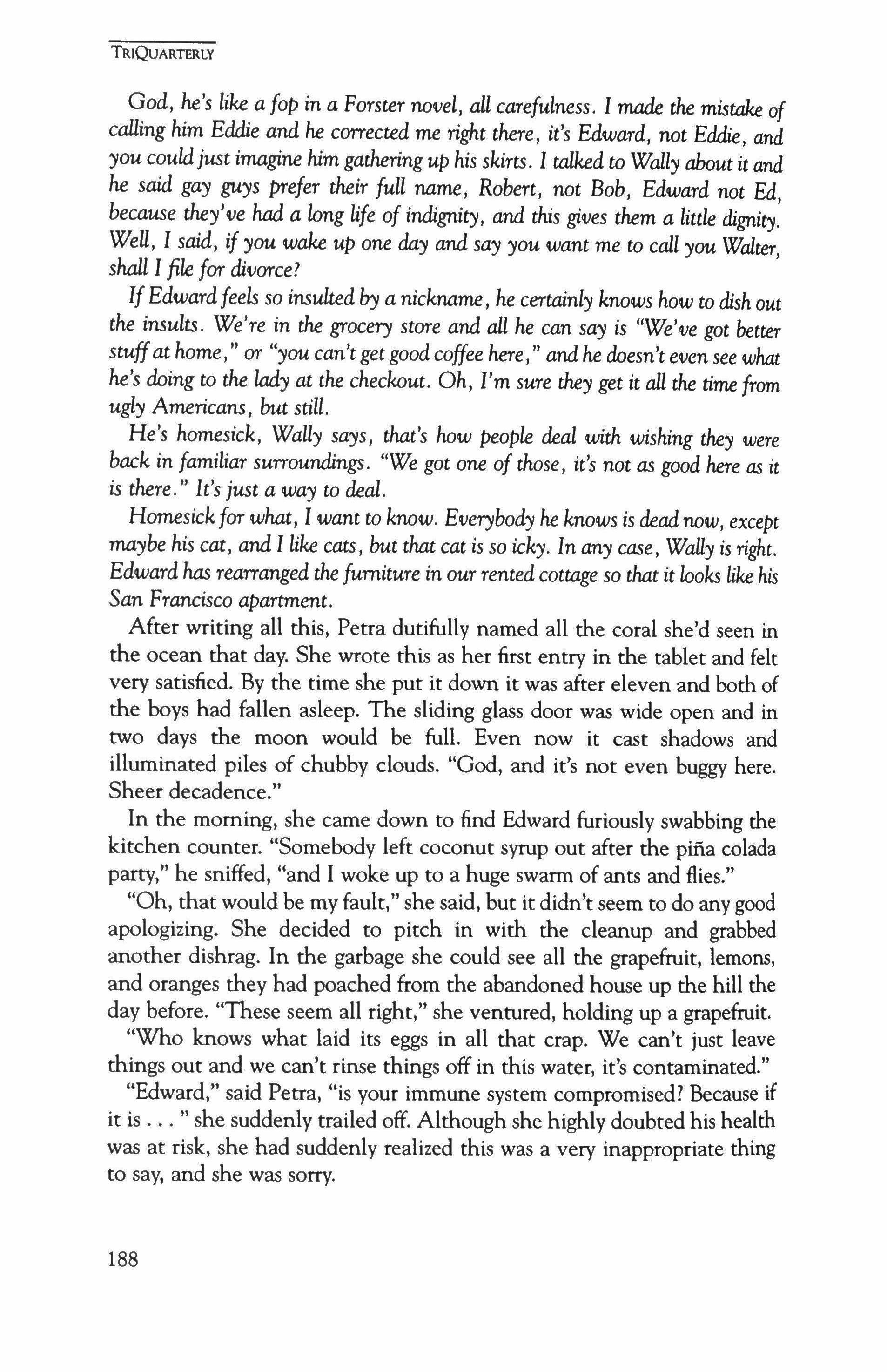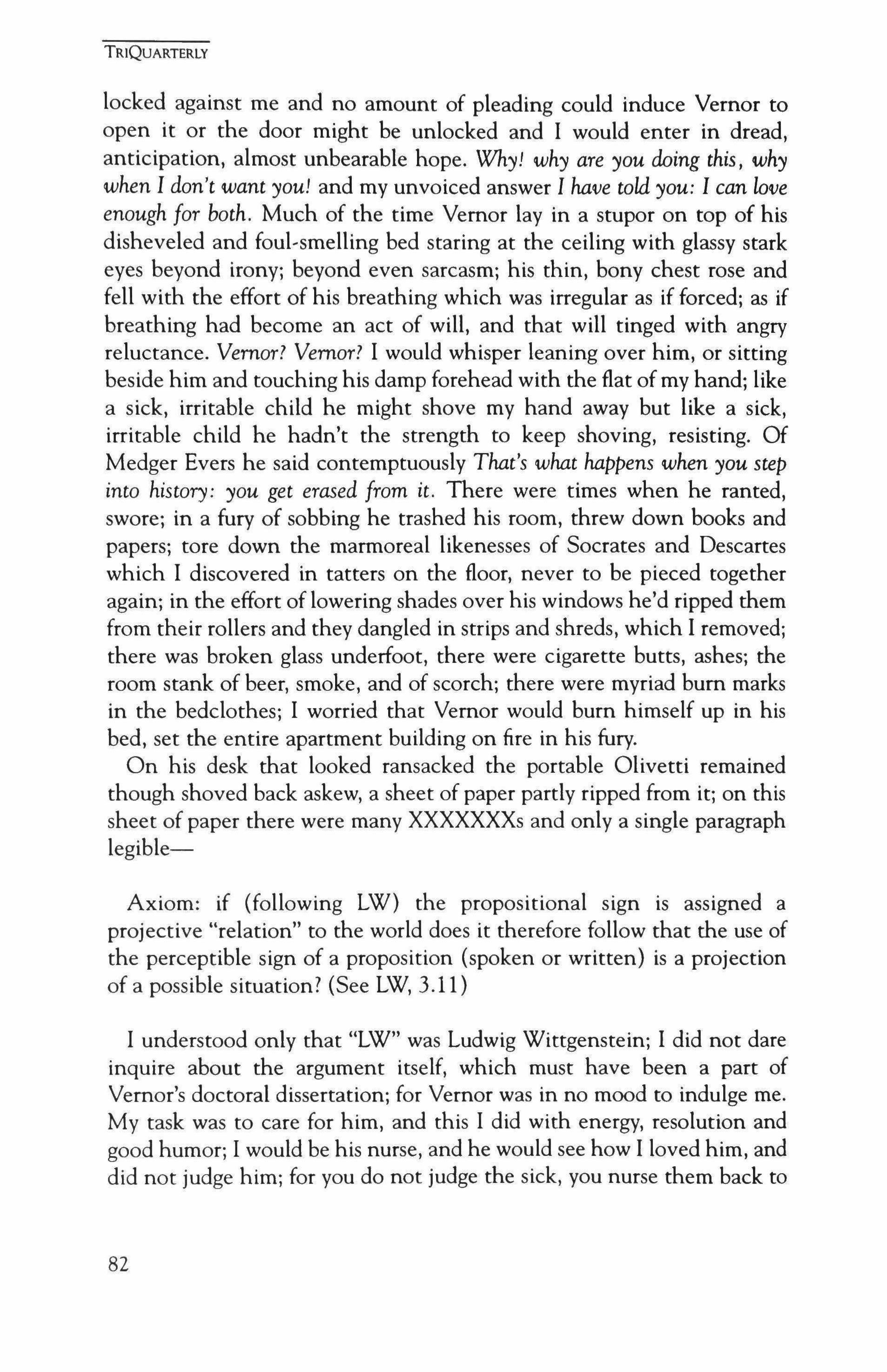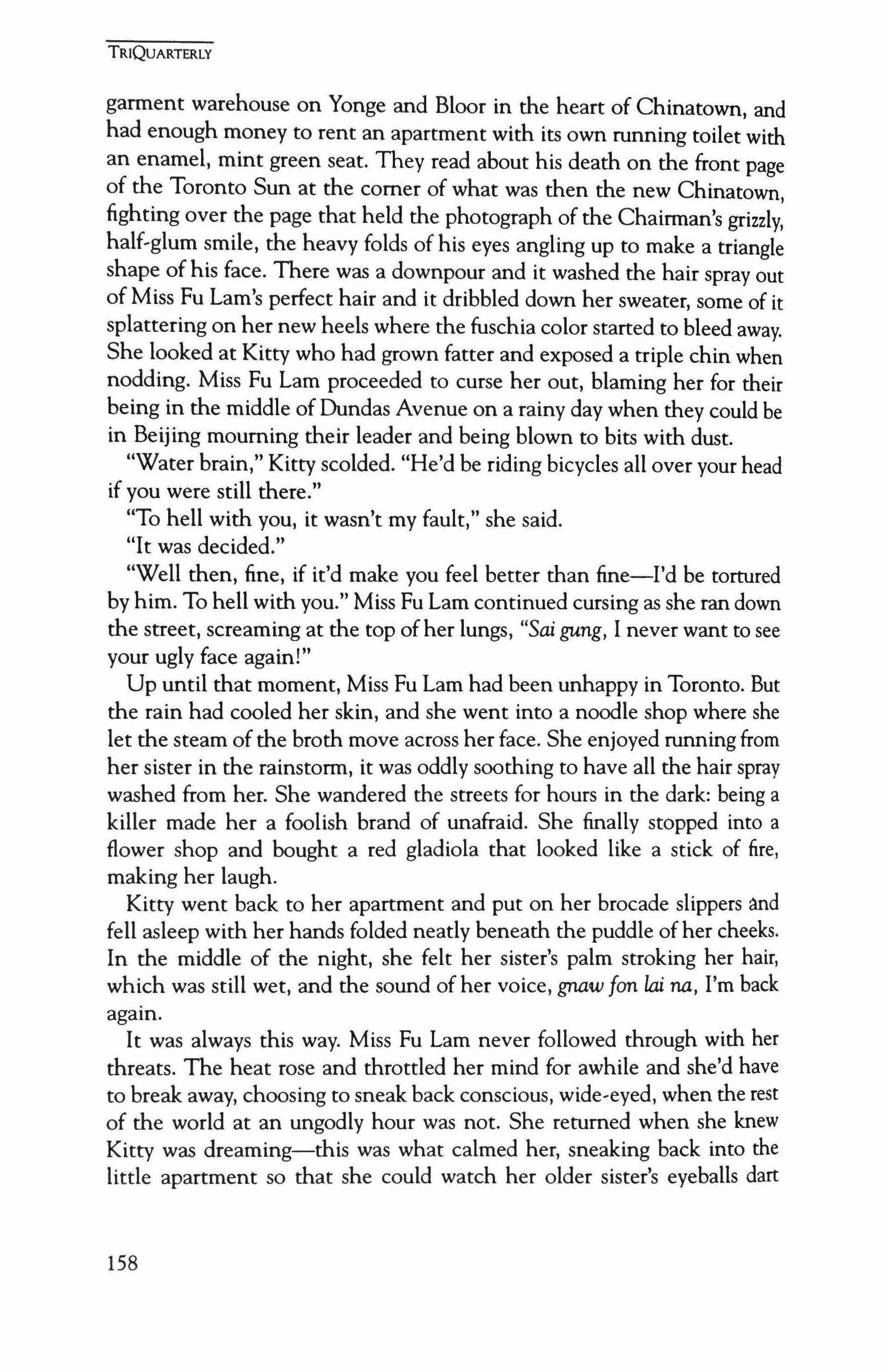 Publication of TriQuarterly is made possible in part by the donors of gifts and grants to the magazine. For their recent and continuing support, we are pleased to thank the Illinois Arts Council, the Lannan Foundation, the John D. and Catherine T. MacArthur Foundation, the National Endowment for the Arts, the Chicago Community Trust, and individual donors.