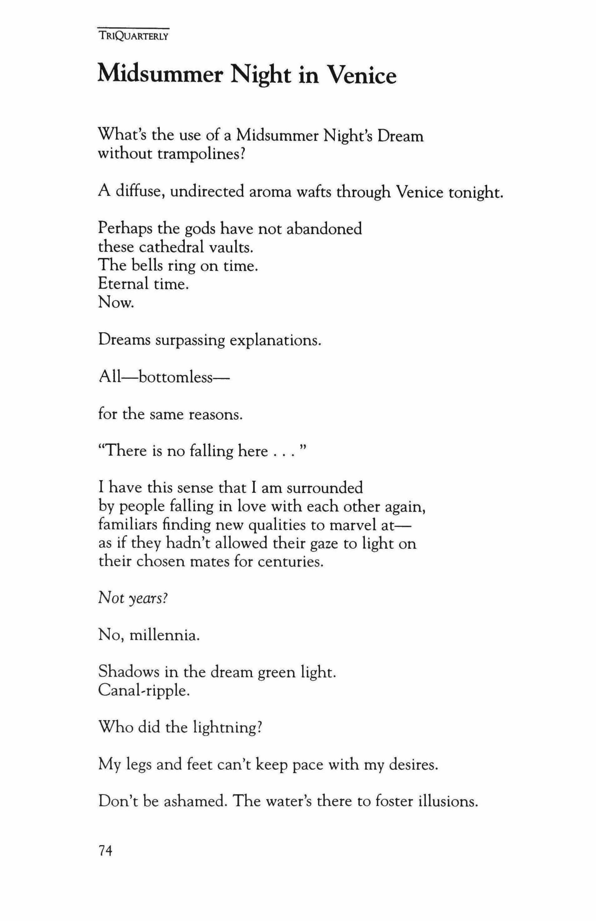 The editors invite submissions offiction, poetry and literary essays, which must be postmarked between October 1 and March 31; manuscripts postmarked between April 1 and September 30 will not be read. No manuscripts will be returned unless accompanied by a stamped, selfaddressed envelope. All manuscripts accepted for publication become the property of TriQuarterly, unless otherwise indicated.