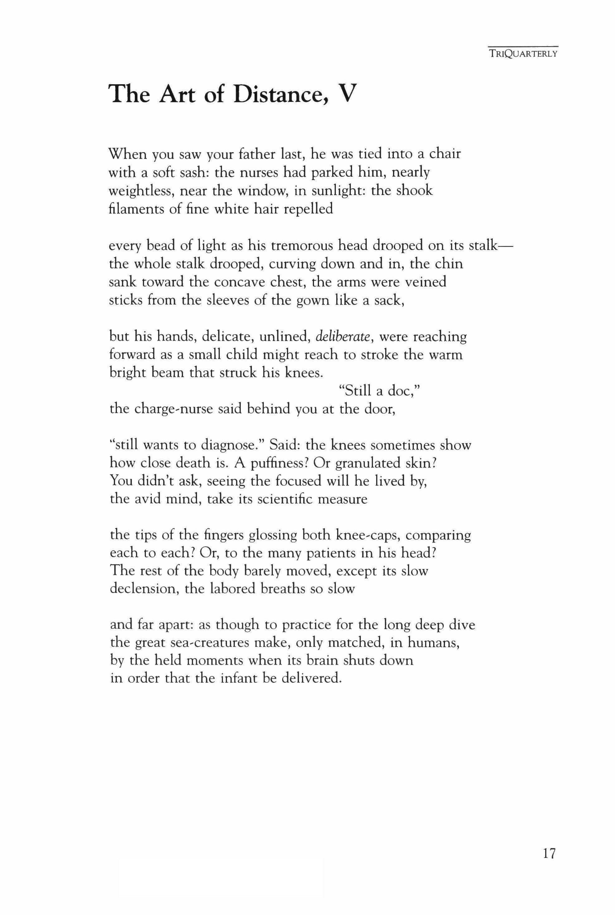 "still wants to diagnose." Said: the knees sometimes show how close death is. A puffiness? Or granulated skin? You didn't ask, seeing the focused will he lived by, the avid mind, take its scientific measure