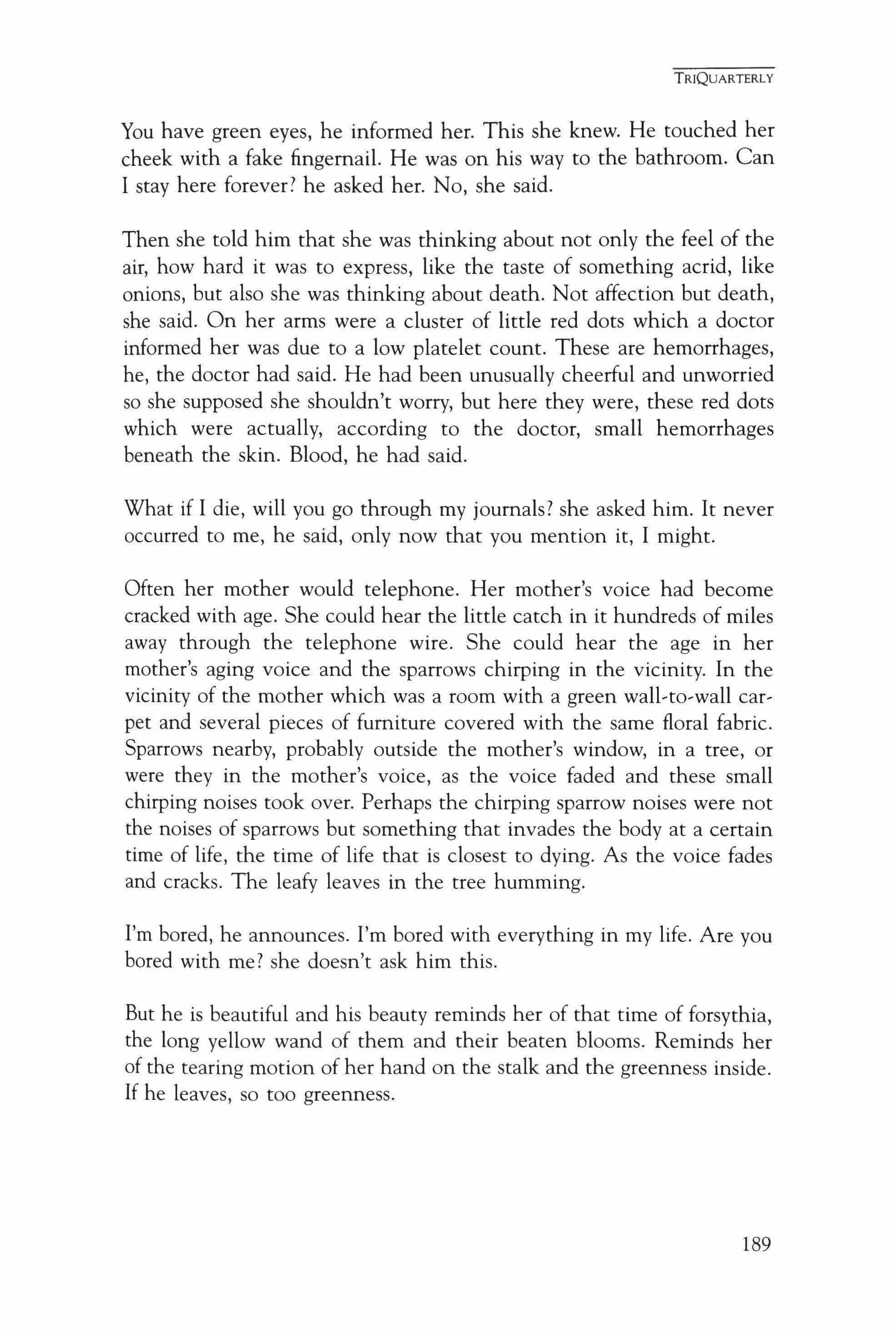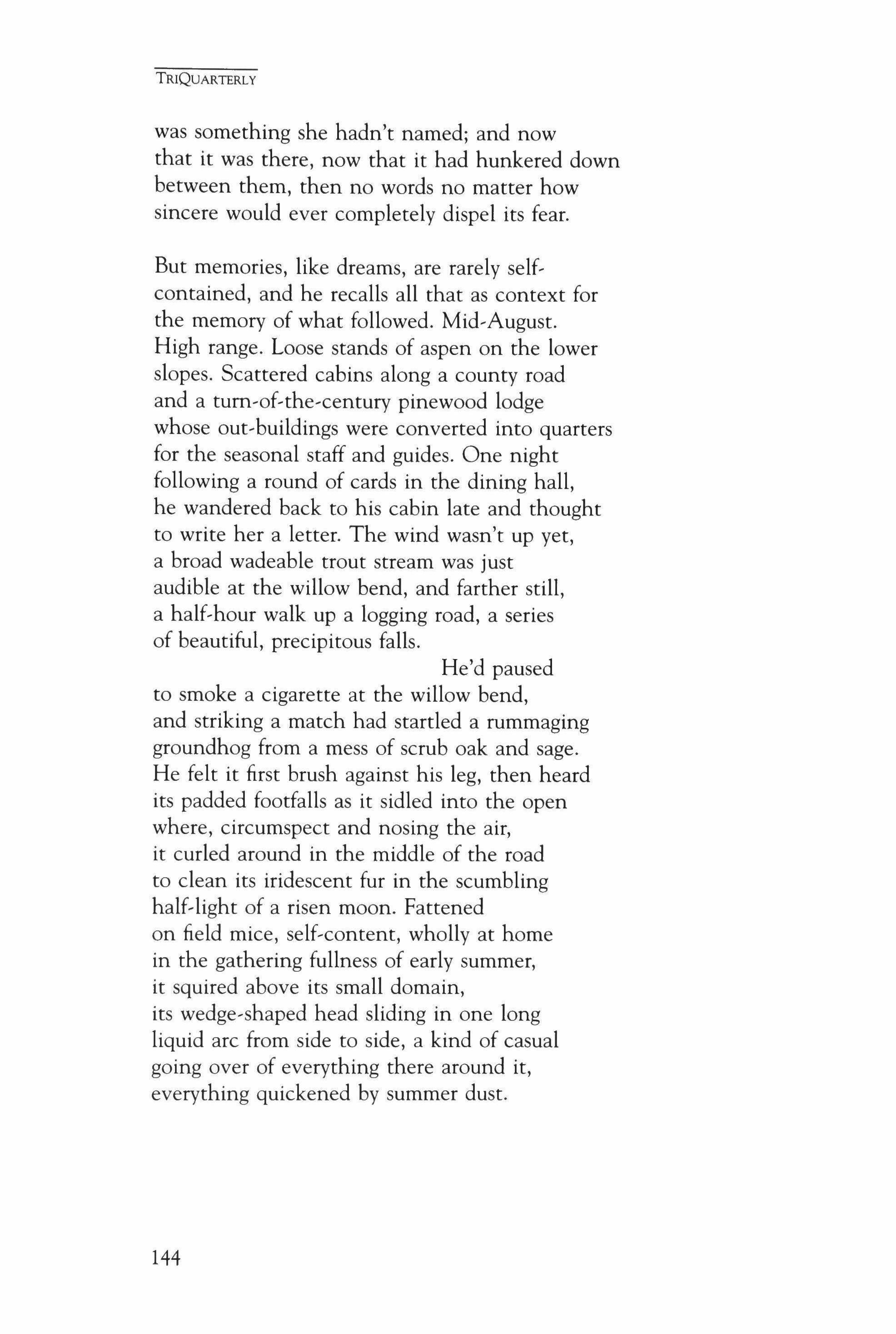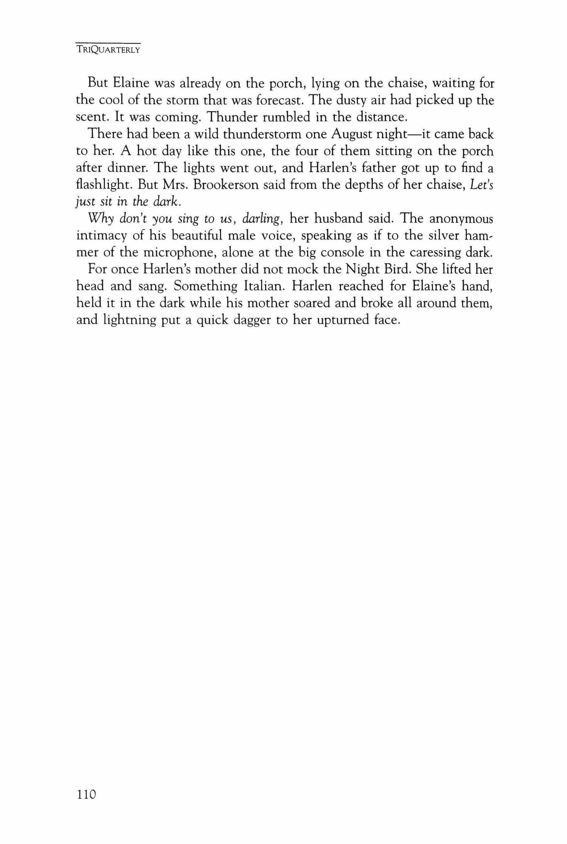 Copyright © 2000 by TriQuarterly. No part of this volume may be reproduced in any manner without written permission. The views expressed in this magazine are to be attributed to the writers, not the editors or sponsors. Printed in the United States of America by Edwards Brothers Printing. Typeset by TriQuarterly. ISSN: 0041-3097.