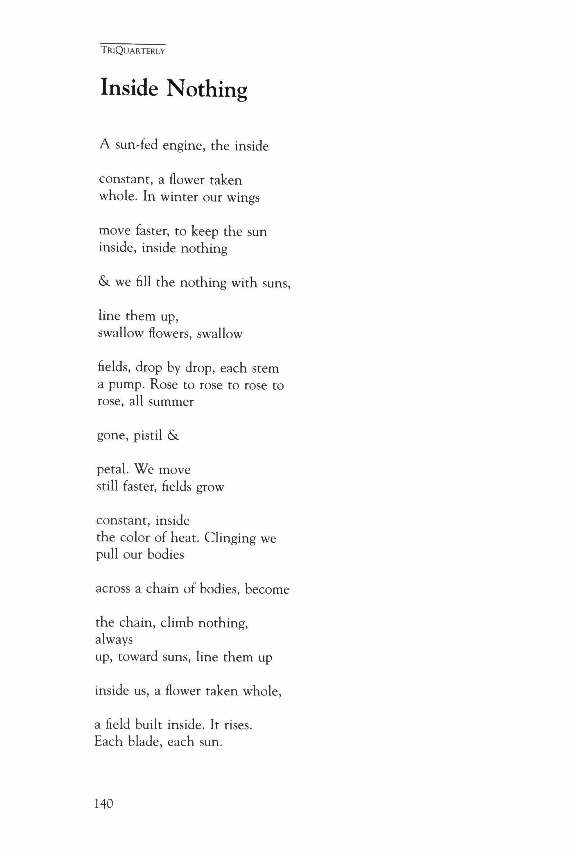TriQuarterly IS AN INTERNATIONAL JOURNAL OF WRITING, ART AND CULTURAL INQUIRY PUBLISHED AT NORTHWESTERN UNIVERSITY