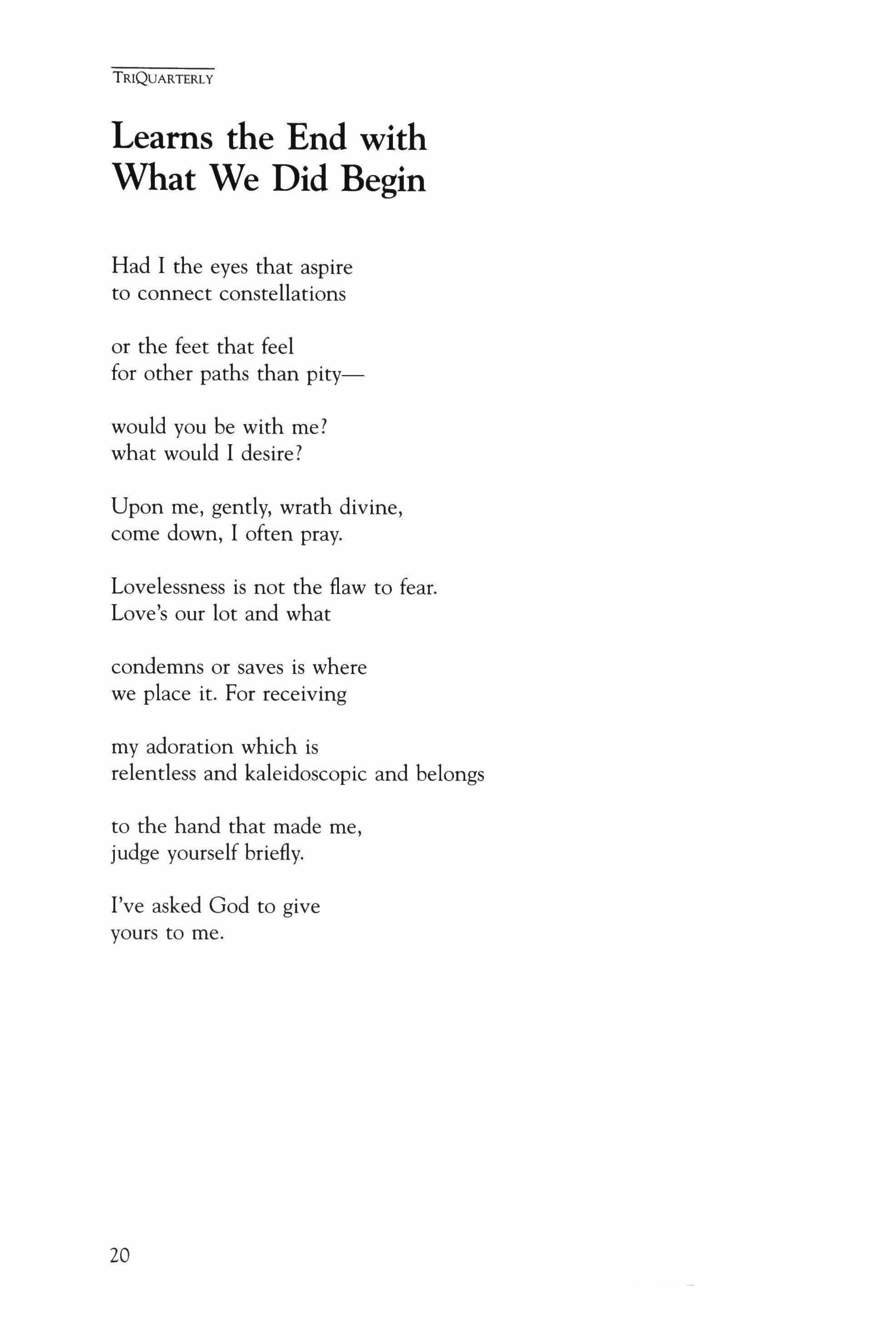 Lovelessness is not the flaw to fear. Love's our lot and what condemns or saves is where we place it. For receiving my adoration which is relentless and kaleidoscopic and belongs to the hand that made me, judge yourself briefly.