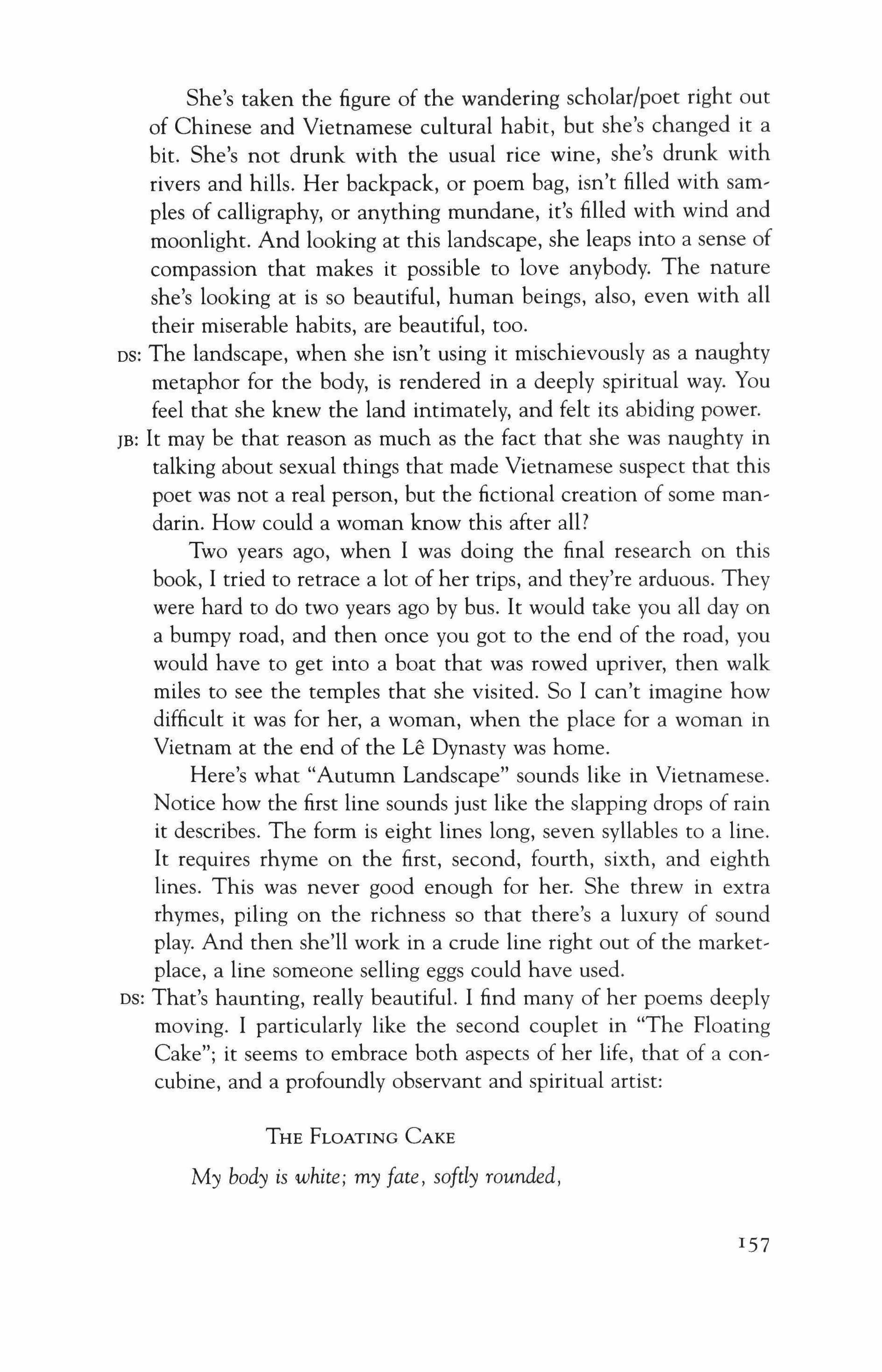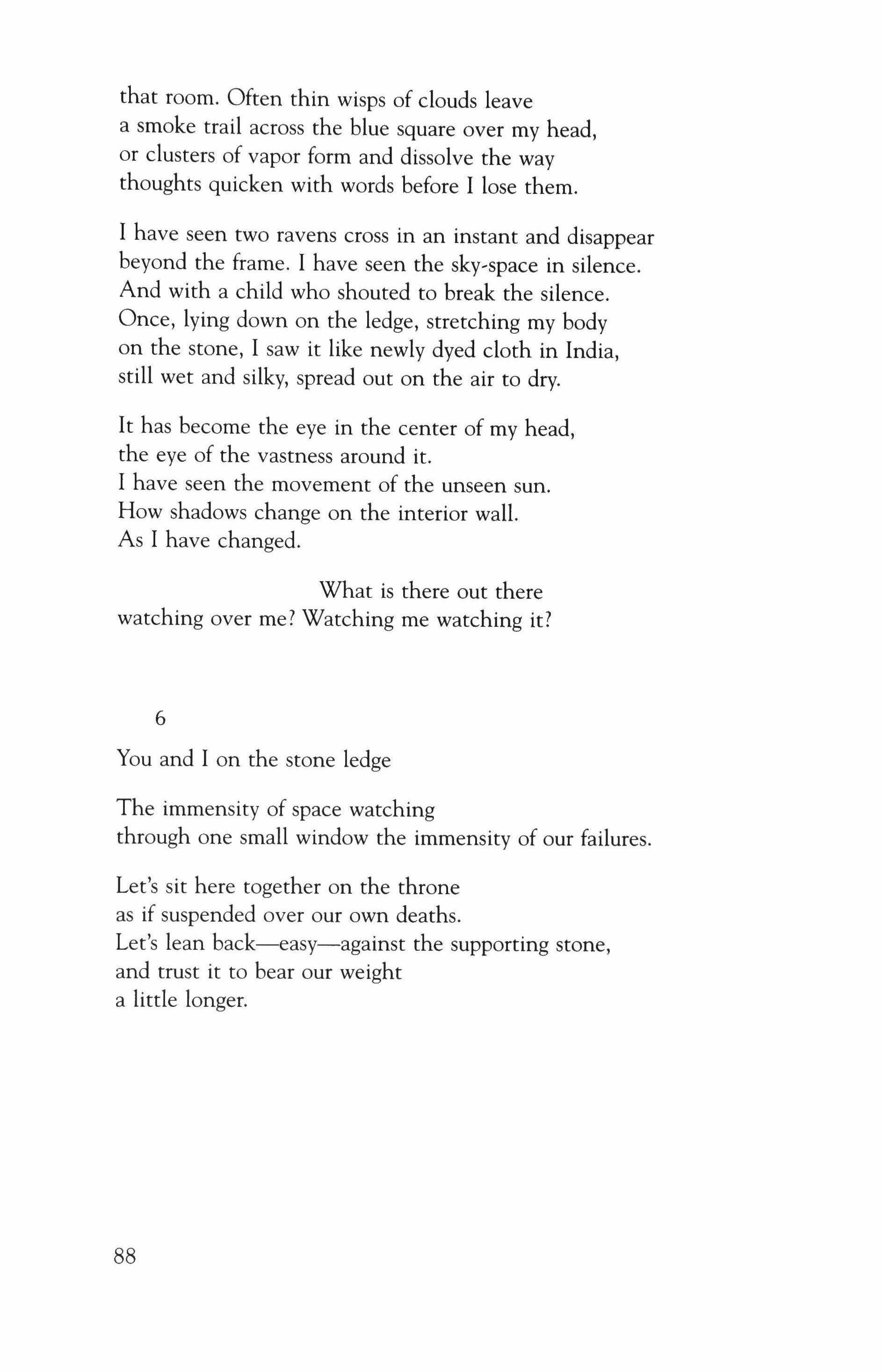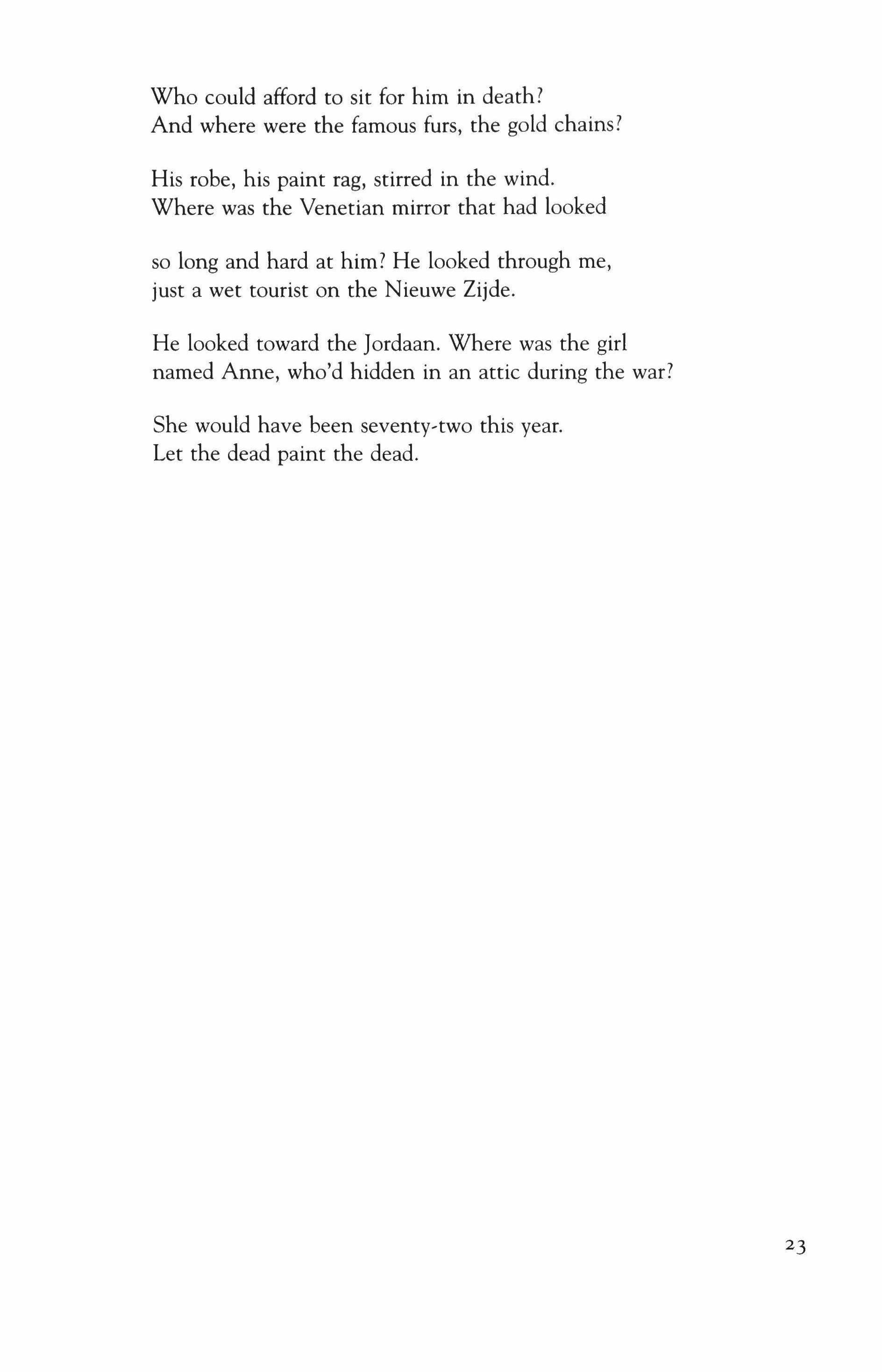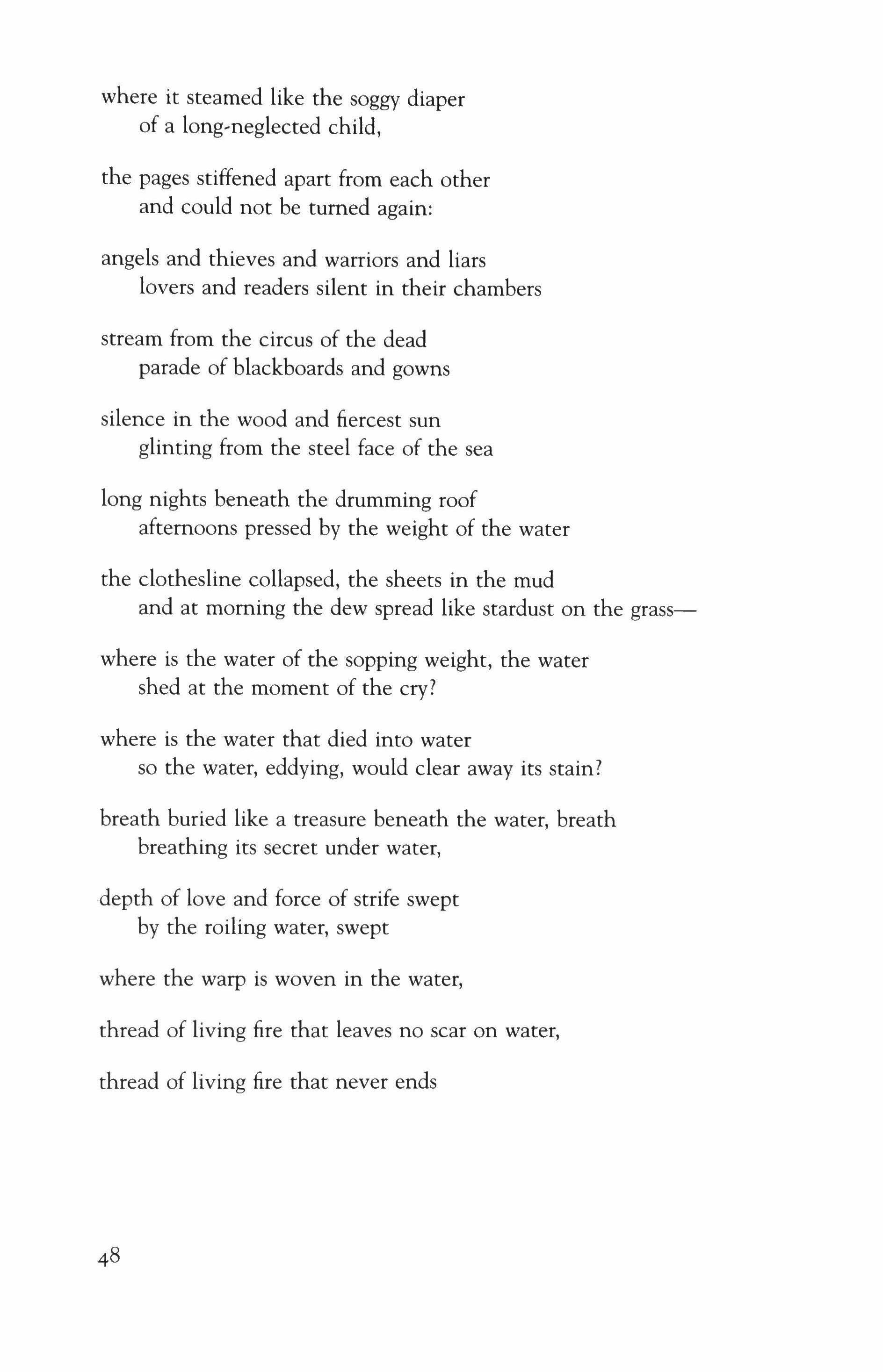 John Balaban is the author of eleven books of poetry and prose. He has won the Academy of American Poets' Lamont Prize, a National Poetry Series Selection, and two nominations for the National Book Award. His collection, Locusts at the Edge of Summer: New and Selected Poems, won the 1998 William Carlos Williams Award from the Poetry Society of America. Aliki Barnstone's most recent book is Wild With It (Sheep Meadow Press, 2002). She is editor of two anthologies, A Book of Women Poets from Antiquity to Now (Schoken/Random House, 1992) and Voices ofLight: Spiritual Poems by Women around the World from Sumeria to Now (Shambhala, 1999)' Rick Barot's poems have appeared in Ploughshares, the New Republic, New England Review, Yale Review, and the Threepenny Review. He is an NEA fellowship recipient and is Jones Lecturer in Poetry at Stanford. Peter Campion is a Wallace Stegner Fellow in poetry at Stanford. His poems and prose have appeared or are forthcoming in Agni, Raritan, Southwest Review, and other journals. Michael Chitwood has work that has recently appeared or is forthcoming in Poetry, Virginia Quarterly Review, the Southern Review, Field, and the Threepenny Review. Deborah Cummins is the author of Beyond the Reach (BKMK Press, 2002) and