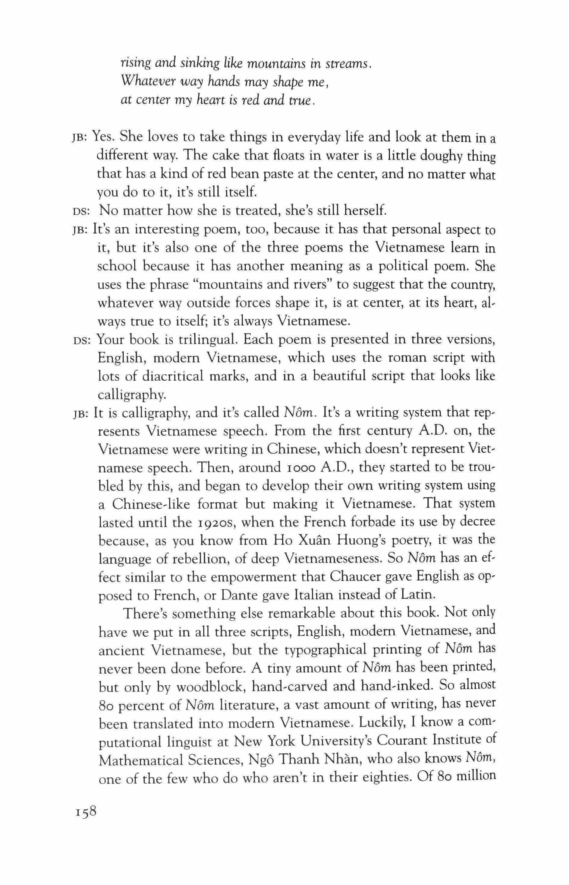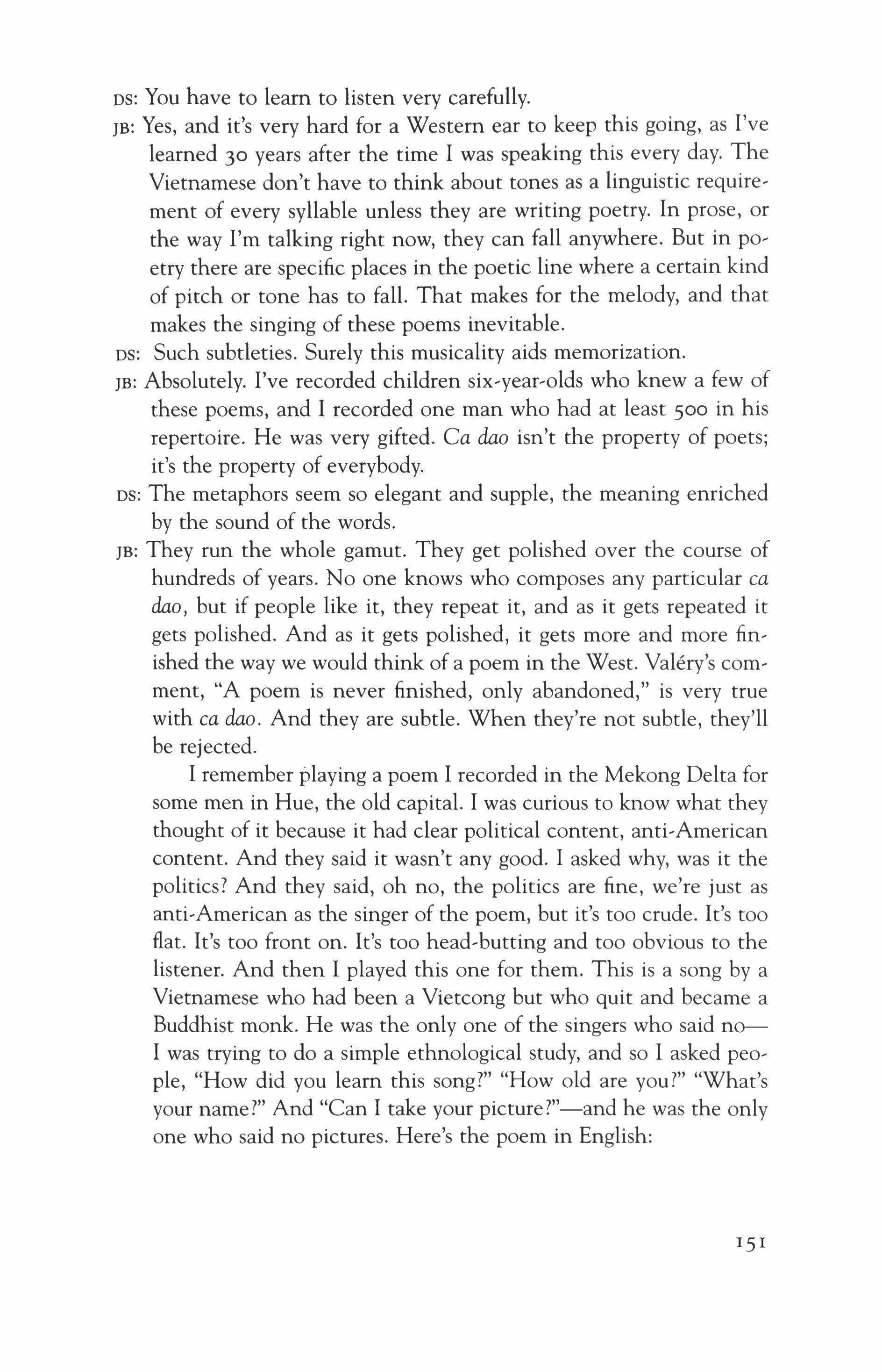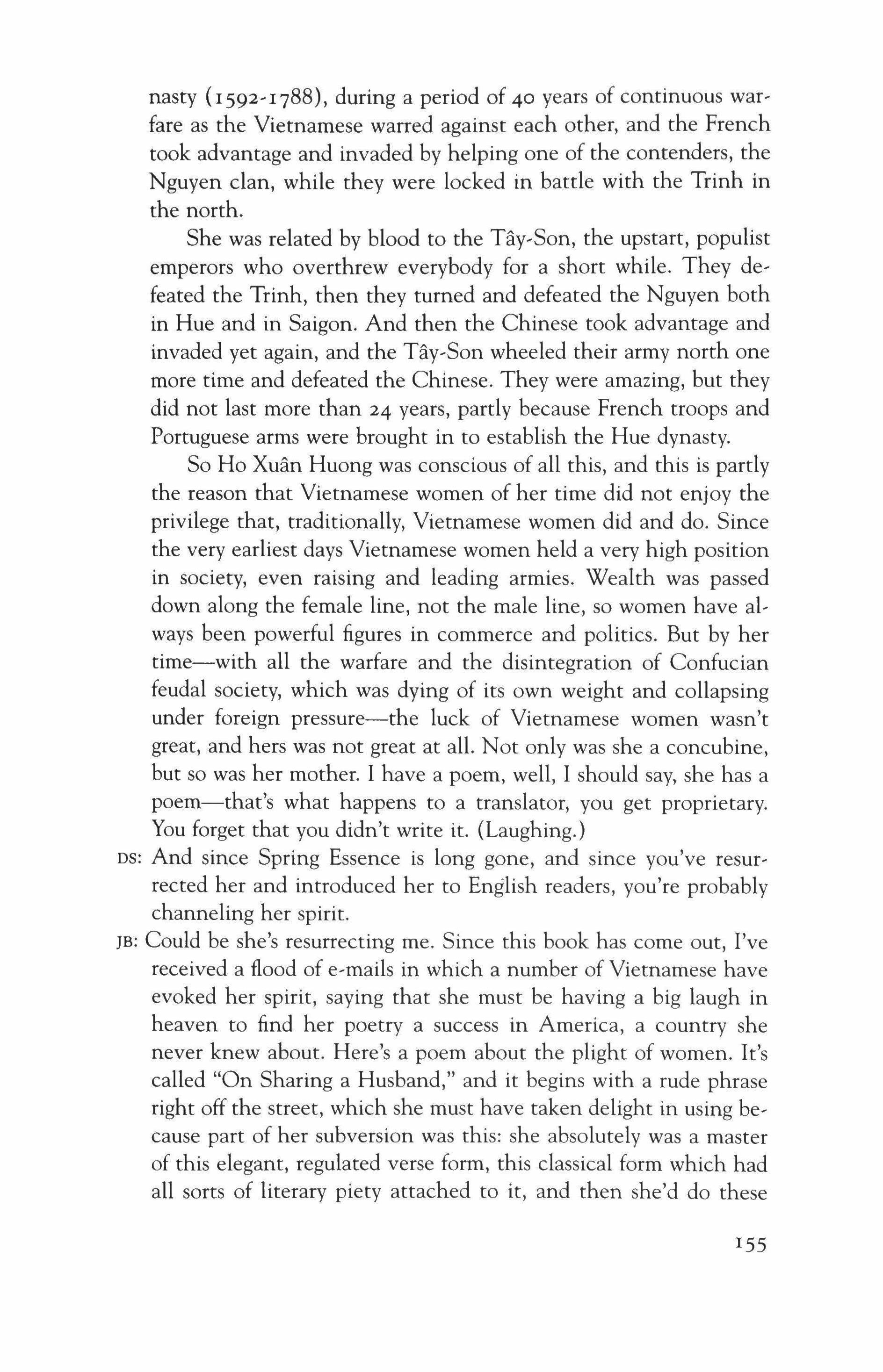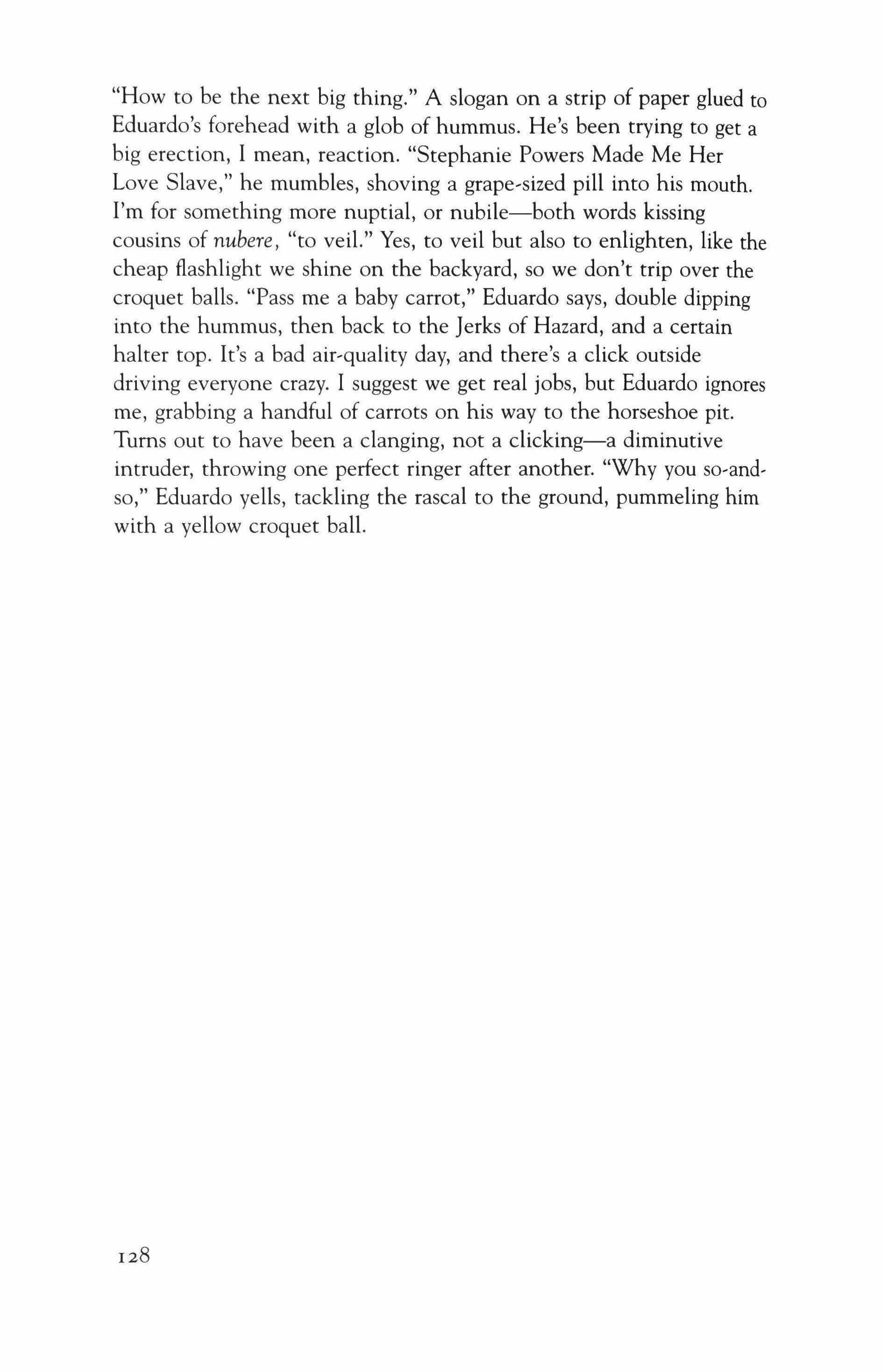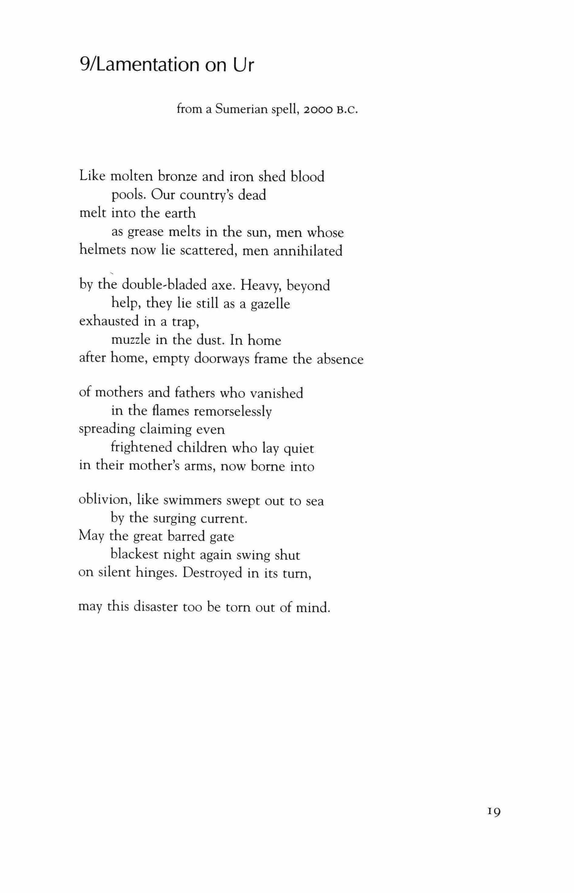 John Balaban is the author of eleven books of poetry and prose. He has won the Academy of American Poets' Lamont Prize, a National Poetry Series Selection, and two nominations for the National Book Award. His collection, Locusts at the Edge of Summer: New and Selected Poems, won the 1998 William Carlos Williams Award from the Poetry Society of America. Aliki Barnstone's most recent book is Wild With It (Sheep Meadow Press, 2002). She is editor of two anthologies, A Book of Women Poets from Antiquity to Now (Schoken/Random House, 1992) and Voices ofLight: Spiritual Poems by Women around the World from Sumeria to Now (Shambhala, 1999)' Rick Barot's poems have appeared in Ploughshares, the New Republic, New England Review, Yale Review, and the Threepenny Review. He is an NEA fellowship recipient and is Jones Lecturer in Poetry at Stanford. Peter Campion is a Wallace Stegner Fellow in poetry at Stanford. His poems and prose have appeared or are forthcoming in Agni, Raritan, Southwest Review, and other journals. Michael Chitwood has work that has recently appeared or is forthcoming in Poetry, Virginia Quarterly Review, the Southern Review, Field, and the Threepenny Review. Deborah Cummins is the author of Beyond the Reach (BKMK Press, 2002) and
