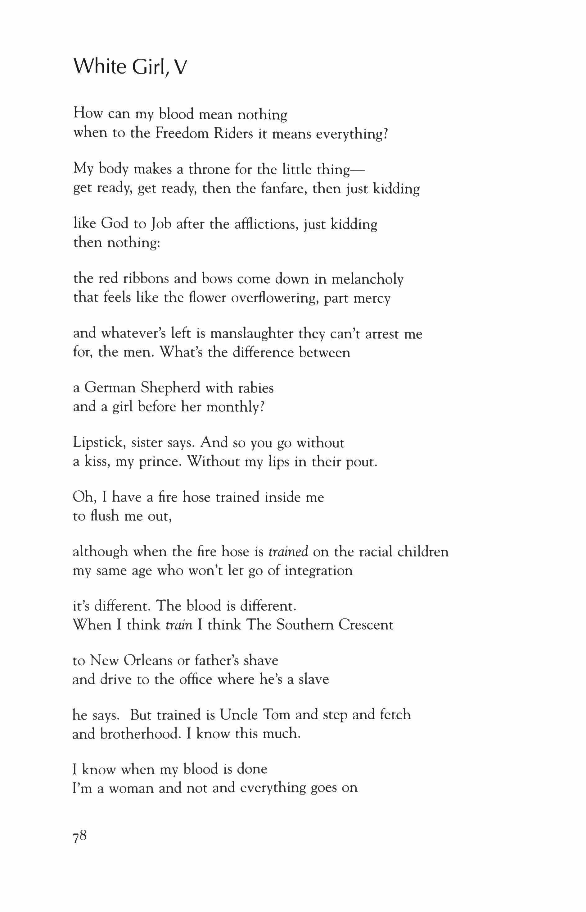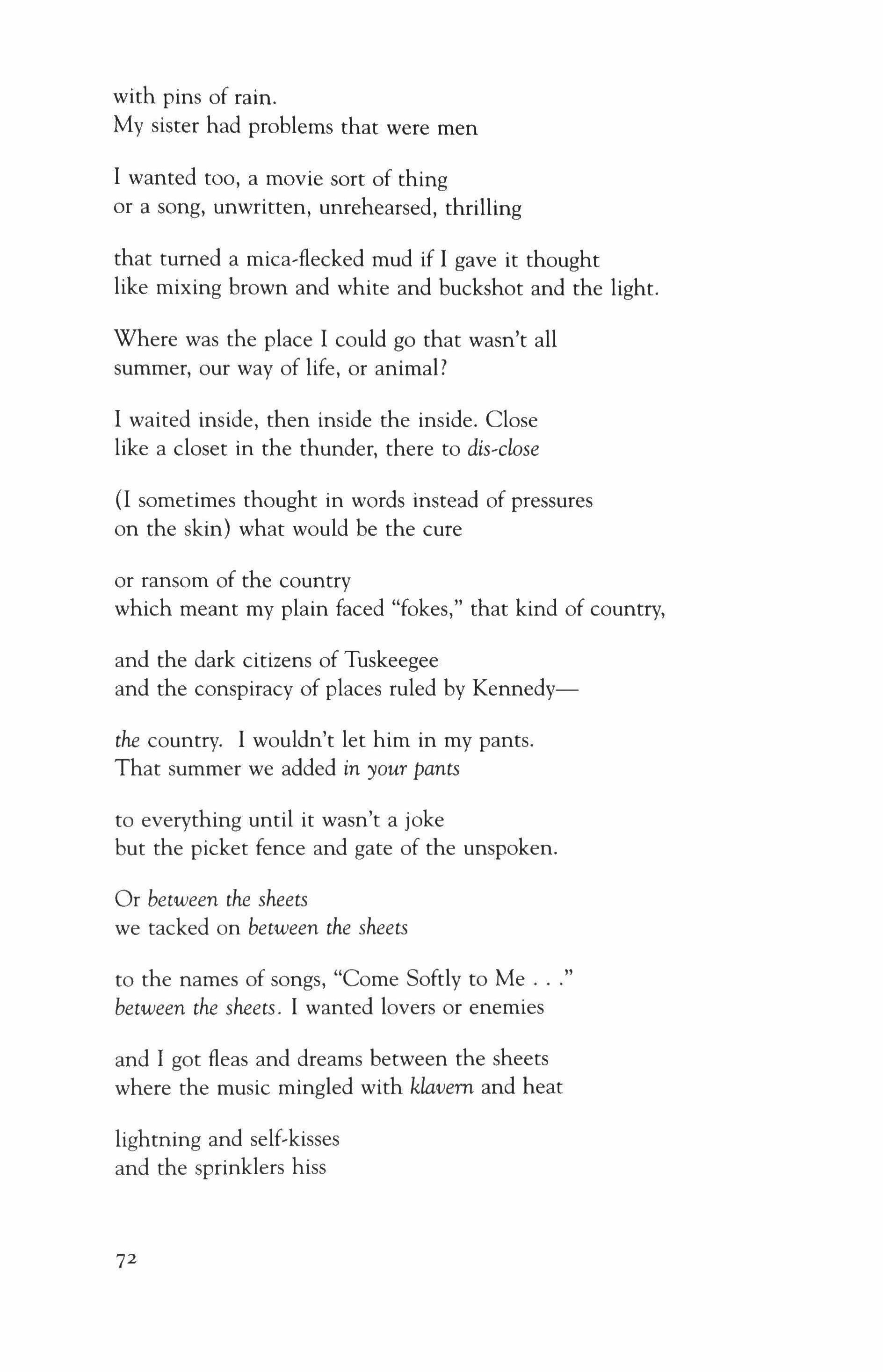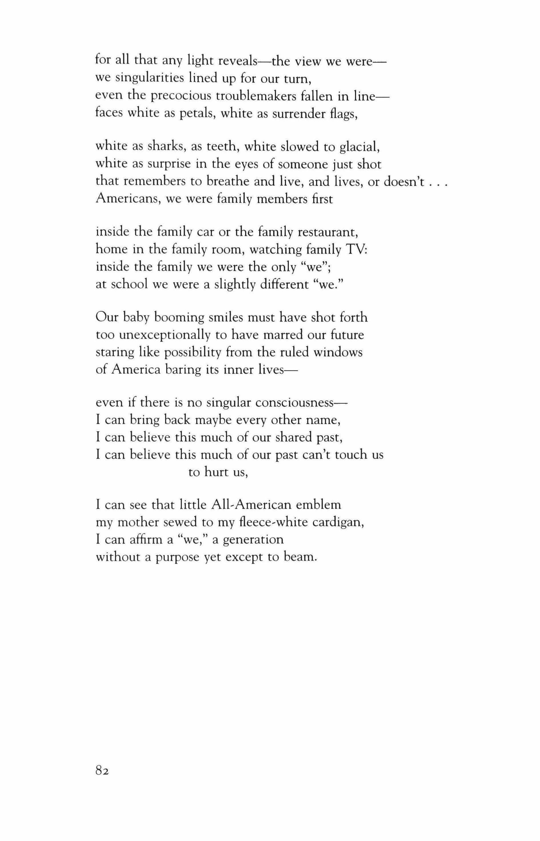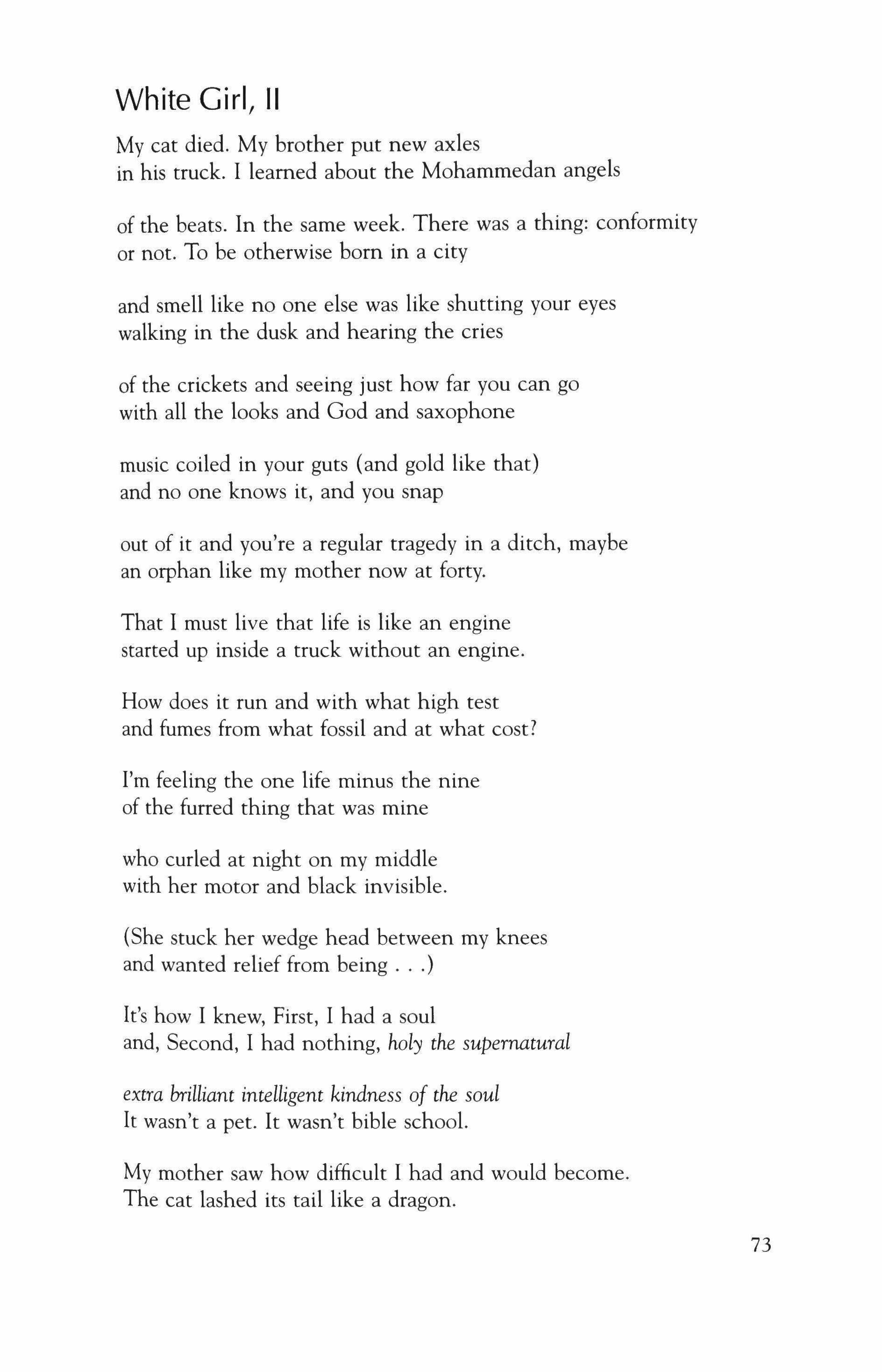 64 Mosaic Joshua Weiner 67 To the Reader Awakened by a Noisy Furnace; Reintroductions Kevin Stein 7 I White Girl, Alabama Bruce Smith 80 All American: First Grade Class Photo; Neither Paradise Nor Below, Nor Up Nor Down; Rag for the Cornish