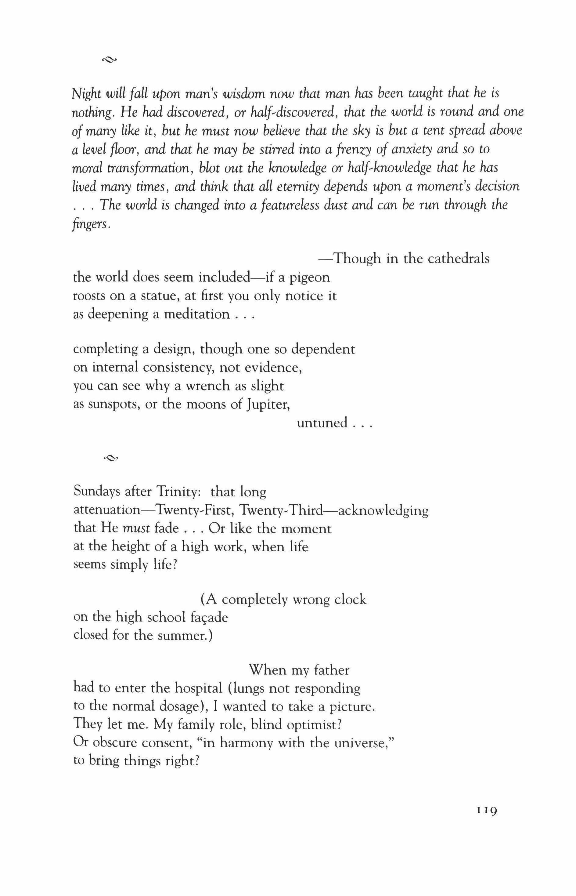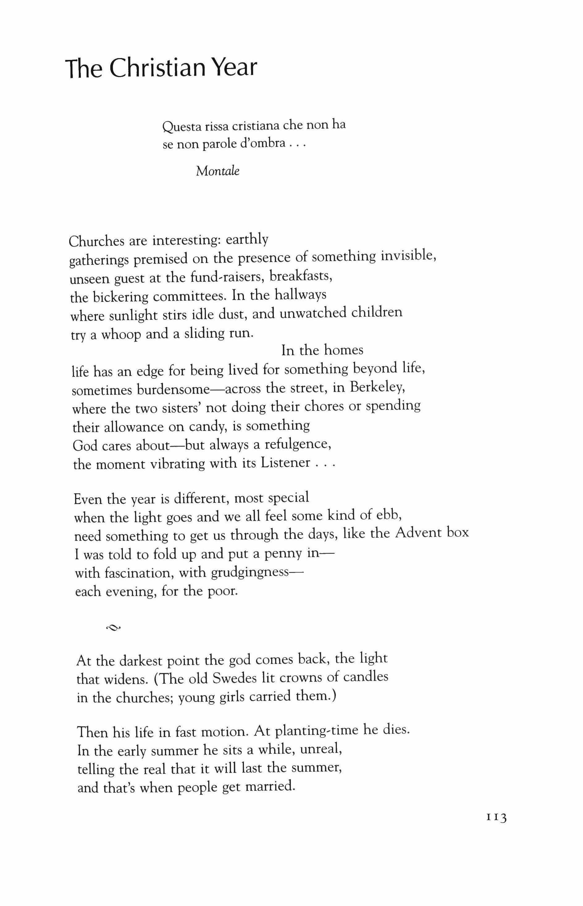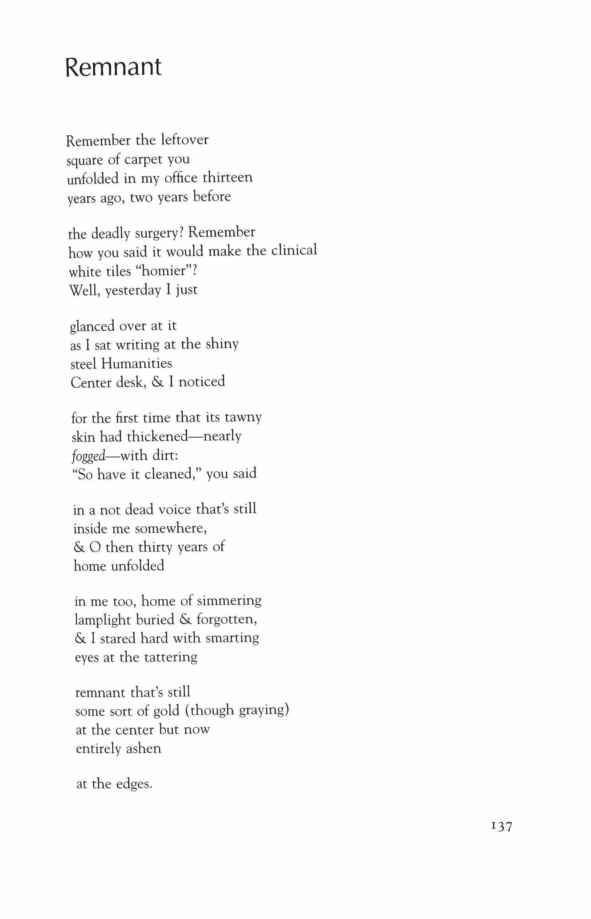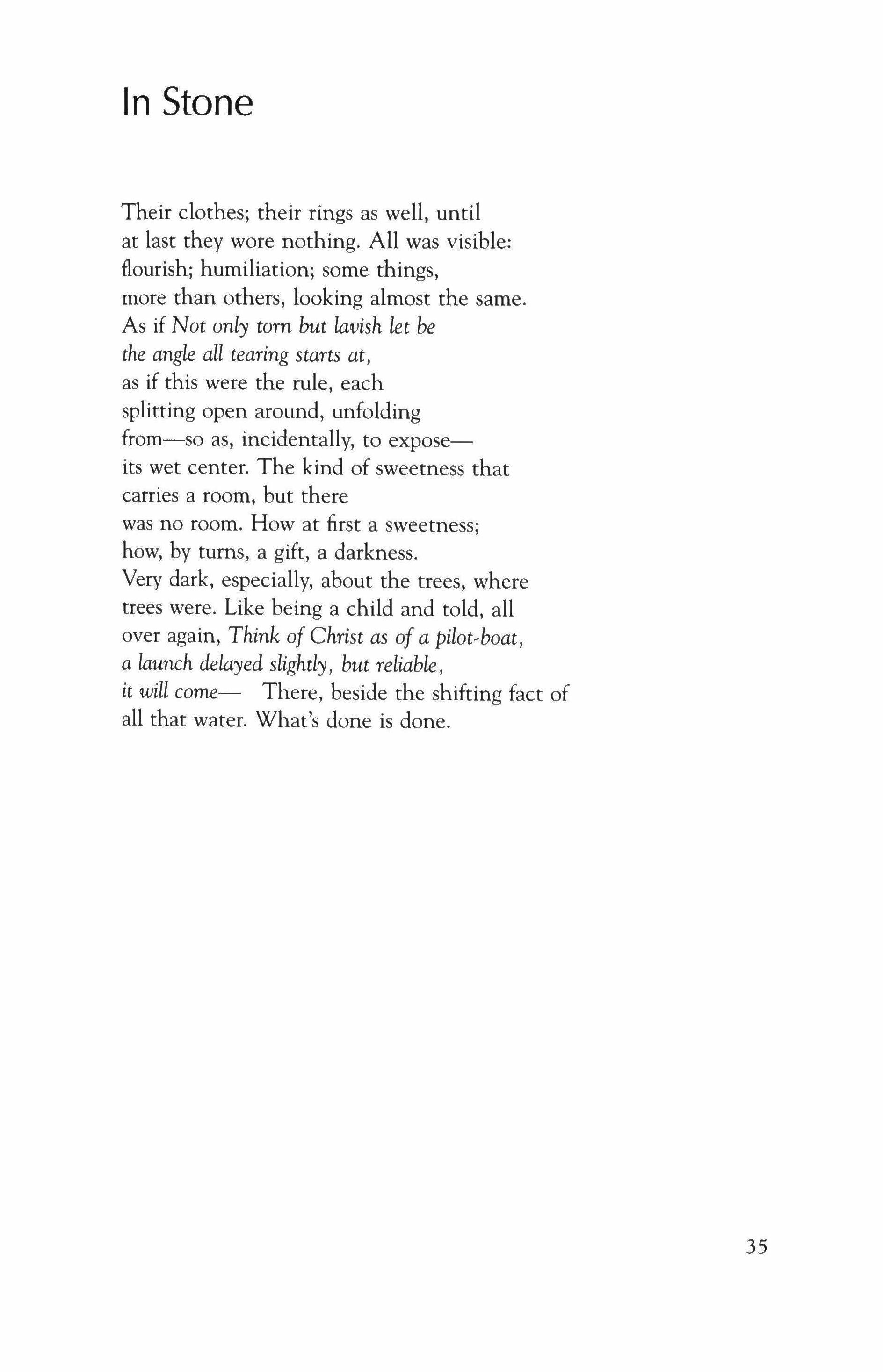 Tree William Olsen 85 Sanctum Shirley Kaufman 89 Destination Peter Campion 91 Botanicals Rick Barot 93 The Mercator Projection; Shower Nancy Eimers 98 The Dream of Autumn after Rain; Beside the Unnamed Lake; 33rd & Kirkham C. Dale Young 102 Pierre Reverdy, After the Ball George Kalamaras 103 Design for a Necklace Molly McQuade 106 Green; Faces of the Madonna; Winter Journal Judith Valente I I I The Fever of Brother Barnabas; The Christian Year Alan Williamson