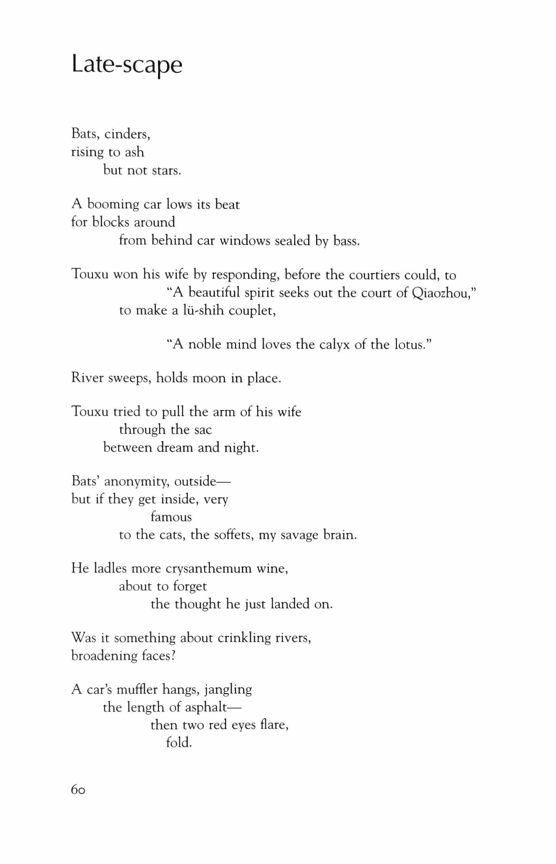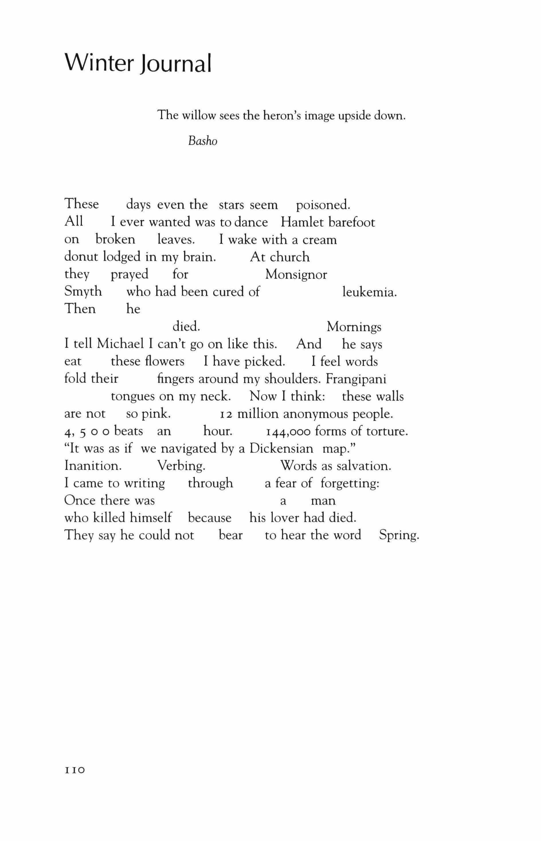books and has been the recipient of the Abiko Quarterly Poetry Award (Japan) and writing fellowships from the NEA.