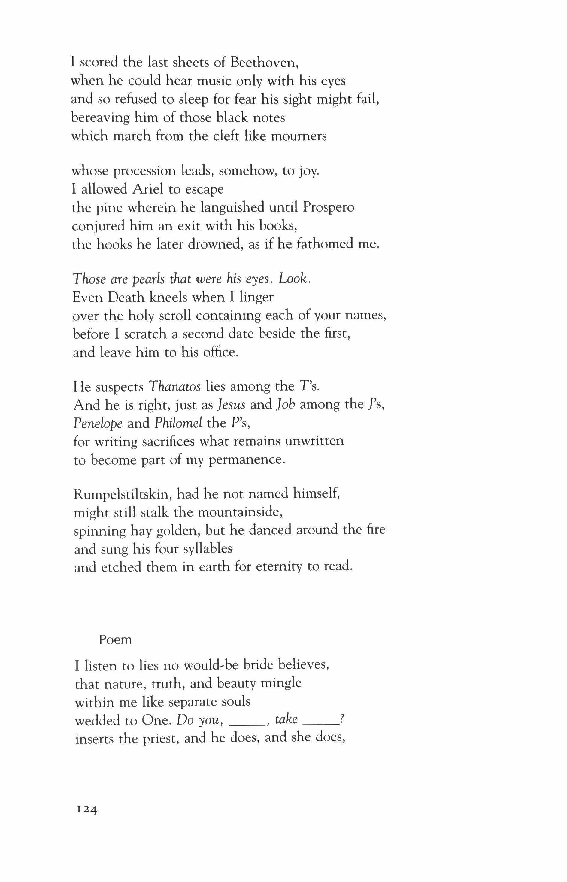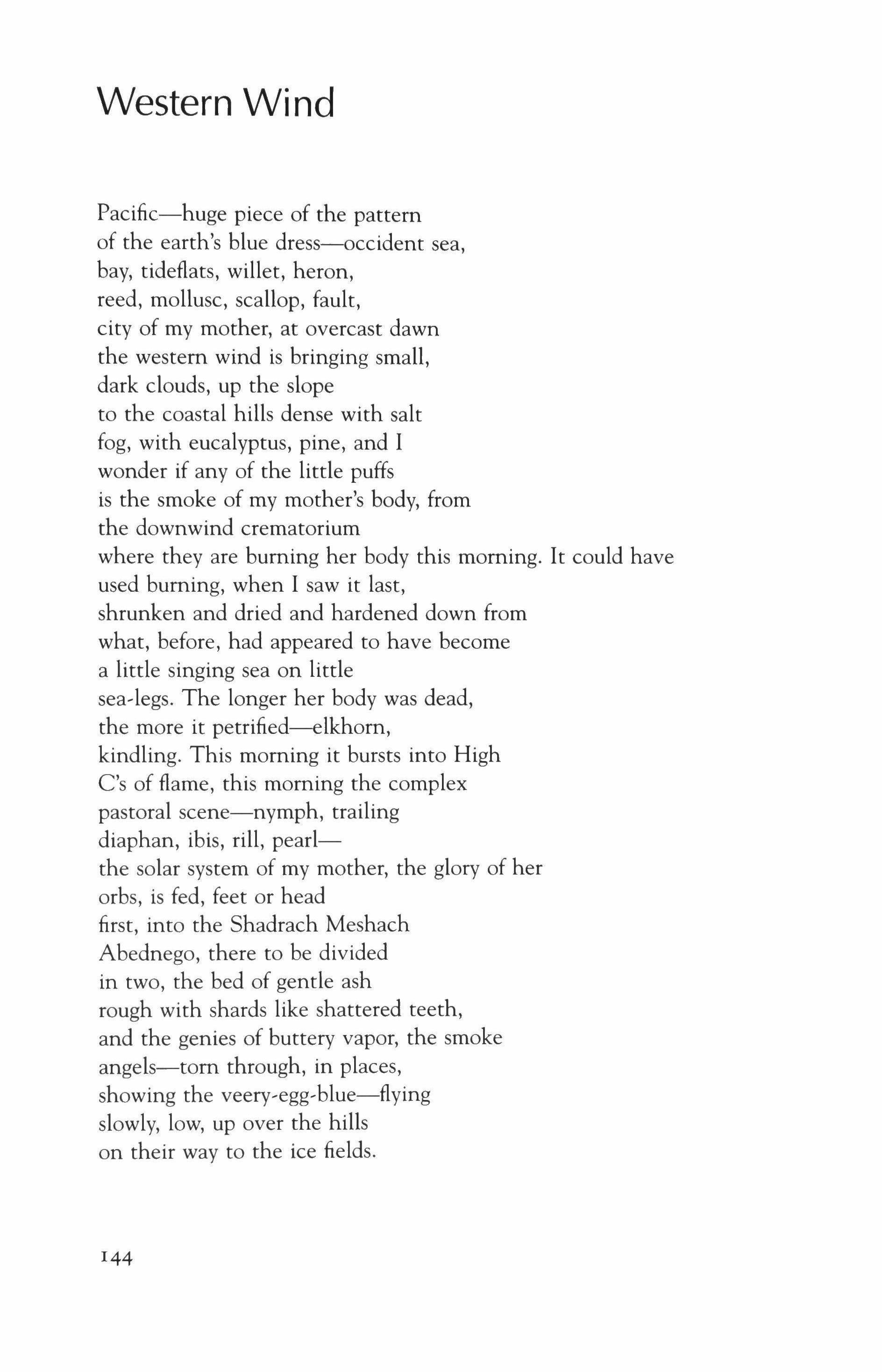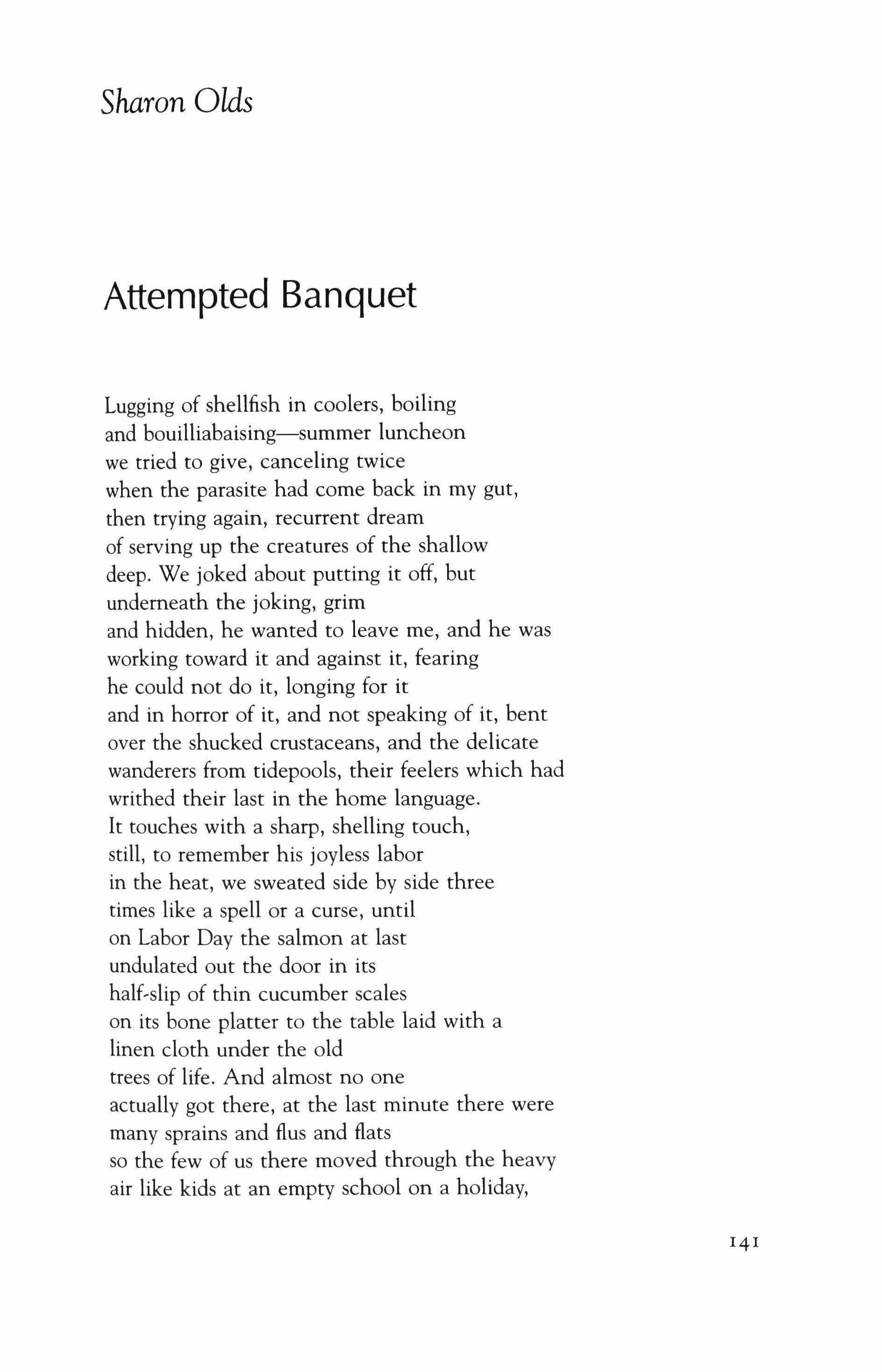 141 Attempted Banquet; To Our Miscarried One, Age Thirty Now; Western Wind
