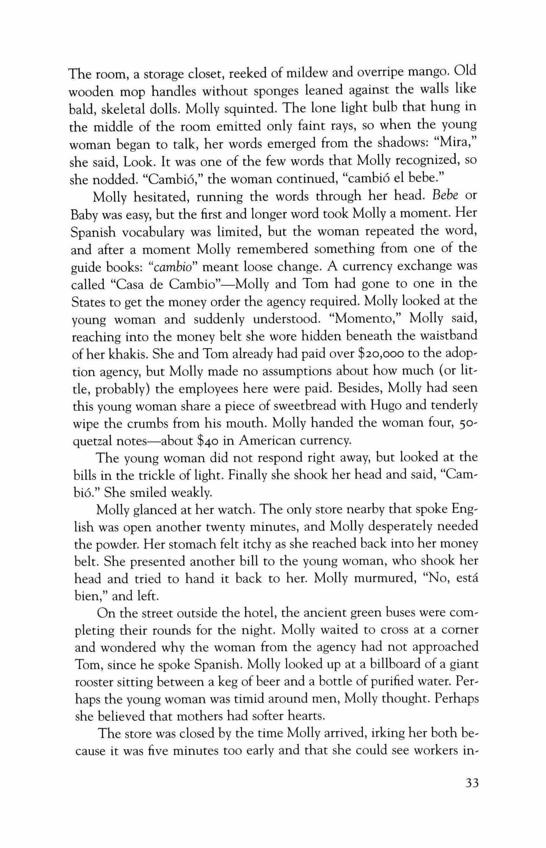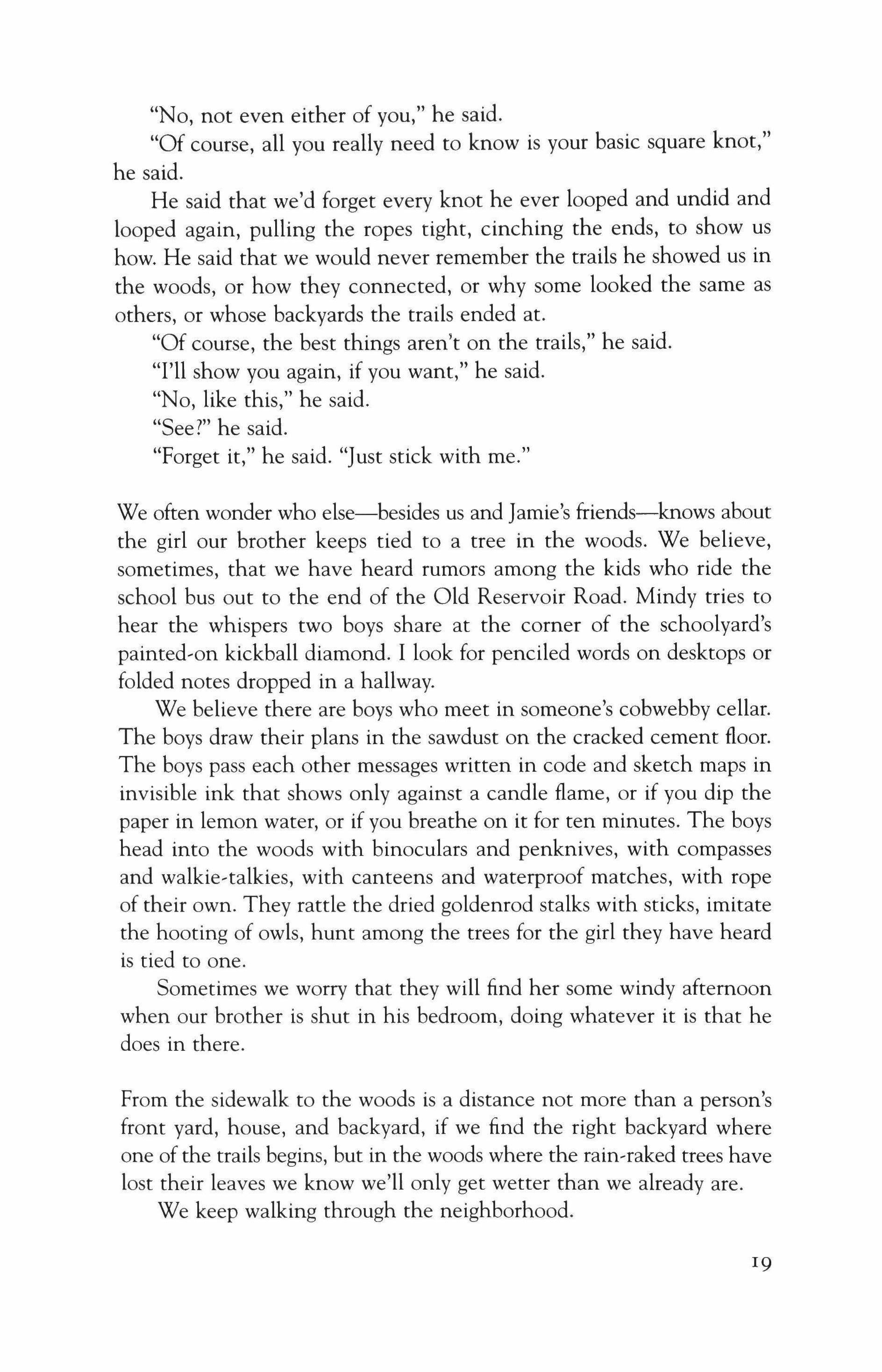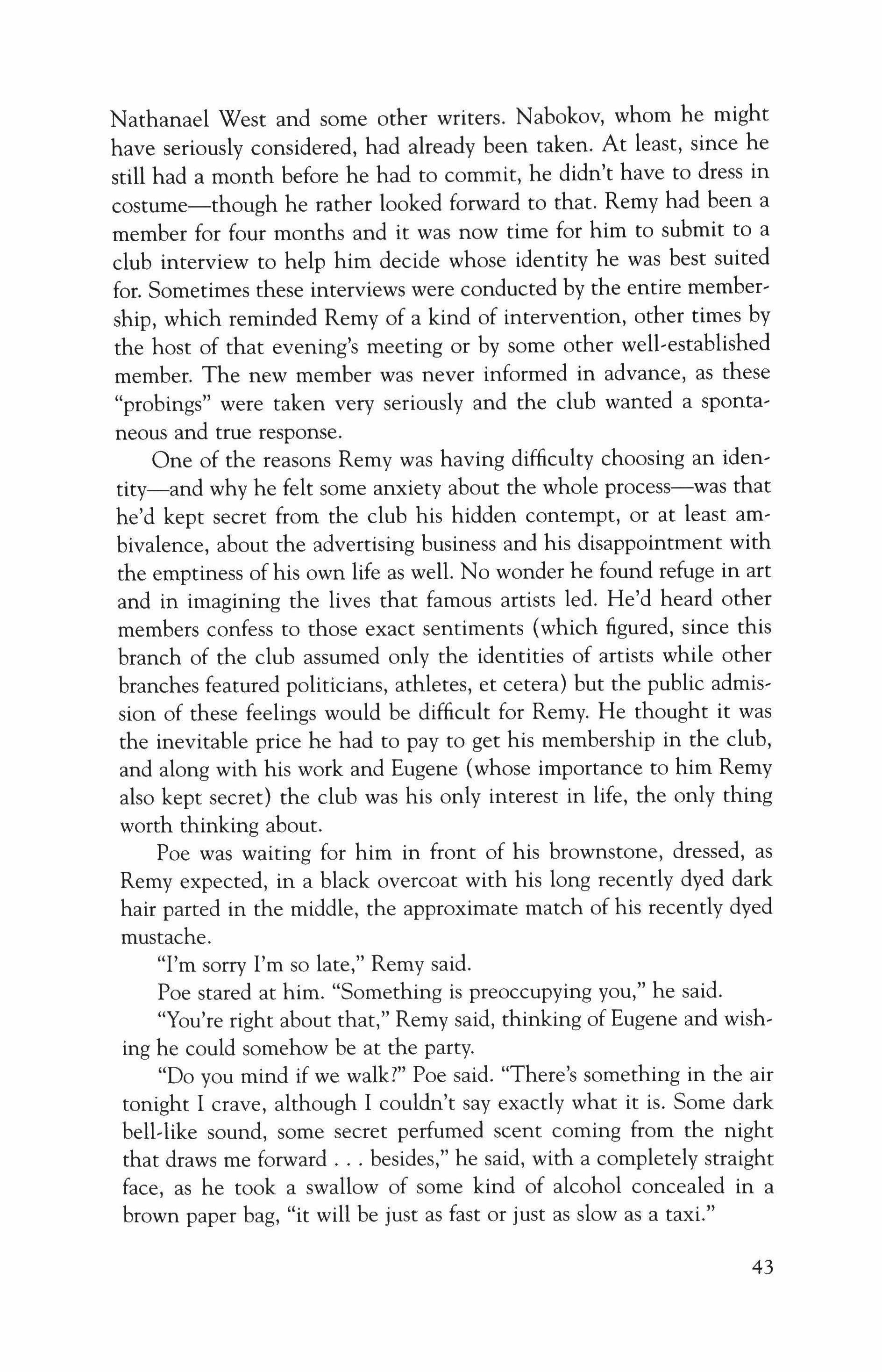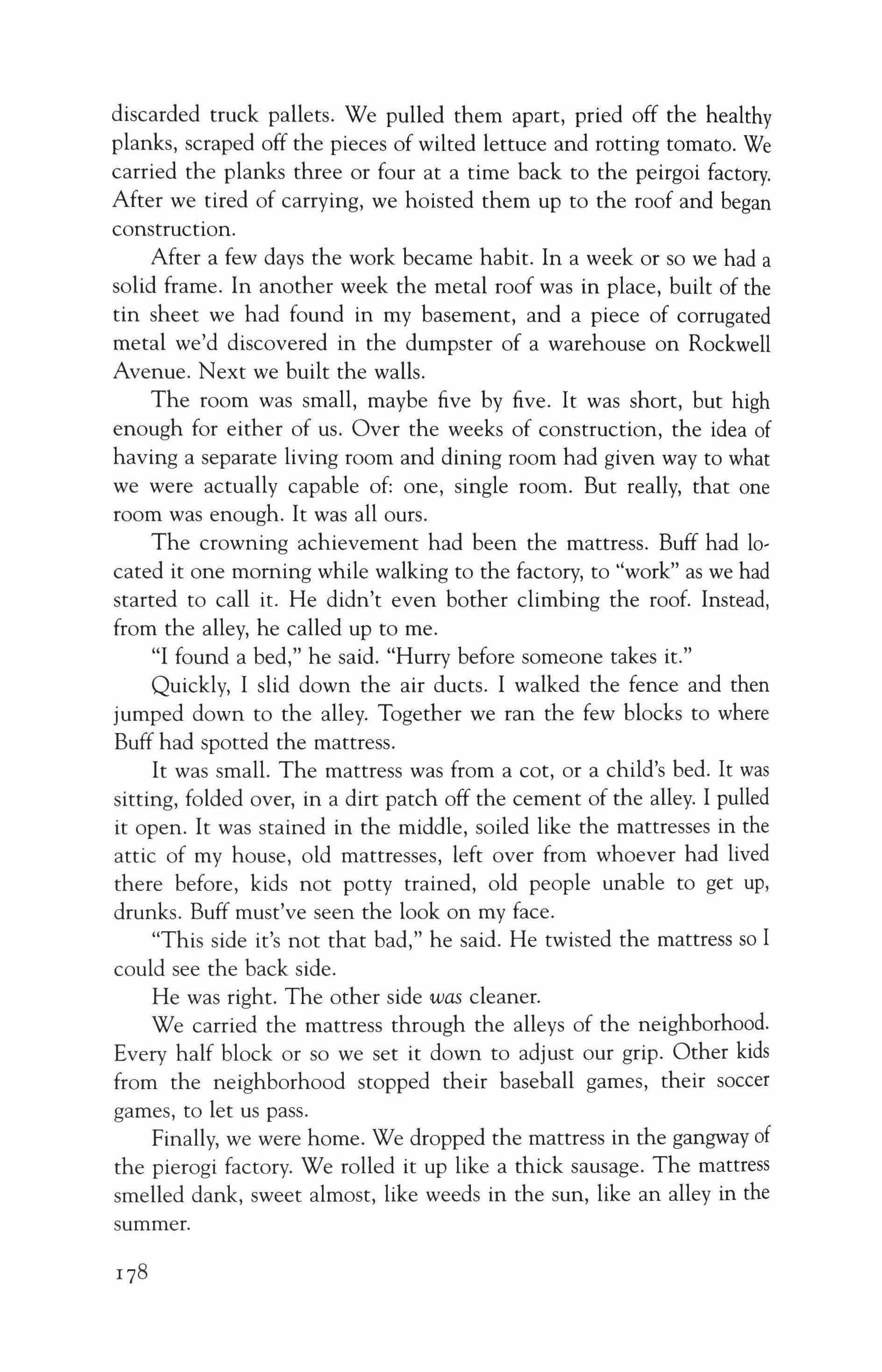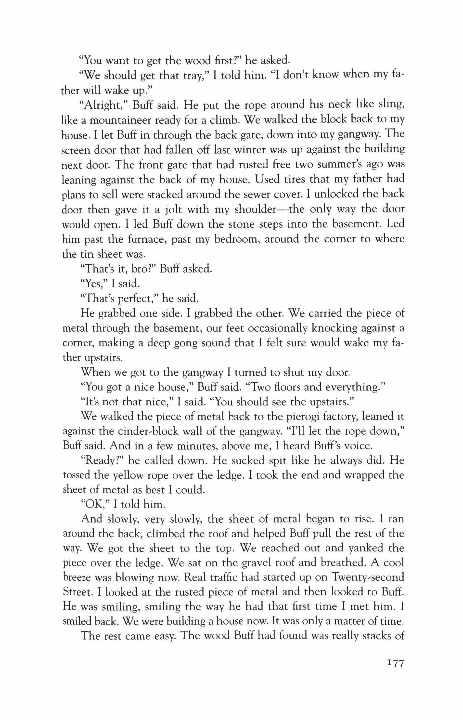Jack was trying, he was tugging at the wallet. It held nothing he couldn't afford to surrender. But out of habit he'd buttoned the pocket, and his fumbling fingers couldn't push it open. He twisted at it, he struggled. At last the button popped off, pinging faintly on the pavement. But now the wallet itself resisted. It snagged and twisted in the lining. Leslie wasn't helping. Tucked up close, she was bumping against him. And they were both still edging away as the two boys pressed at them. Their breath was foul with beer.