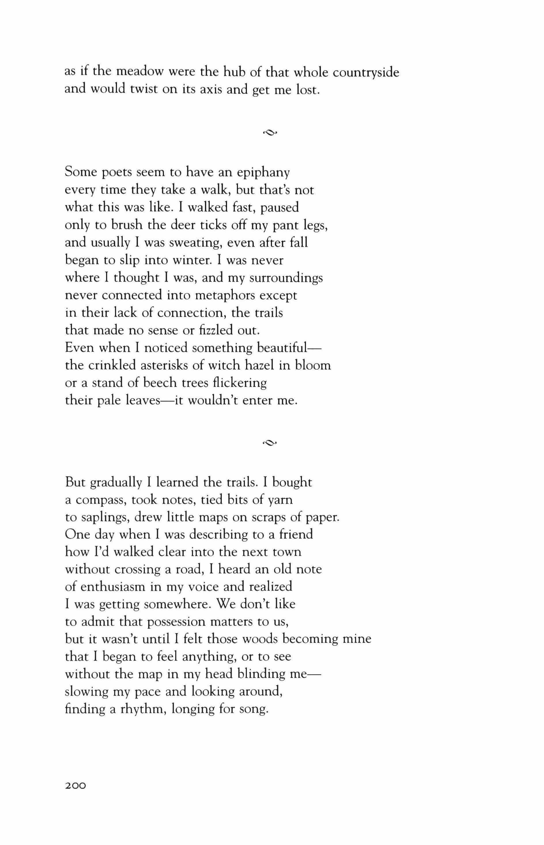 Slowly, by measures, I have grown stronger. And though I could never in any intellectual way tell you why-not even if someone cocked a loaded gun to my head-I know a good part of that strength comes from my daily trek into this sacred landscape. After my fiance left me, I took a hard look at myself. I realized there were things about myself I had to change: my flash-point Italian temper, for one; my in, ability to see other viewpoints but my own, for another. There is a prayer just before communion that says: Lord I am not worthy that you should come under my roof but only say the word and I shall be healed.