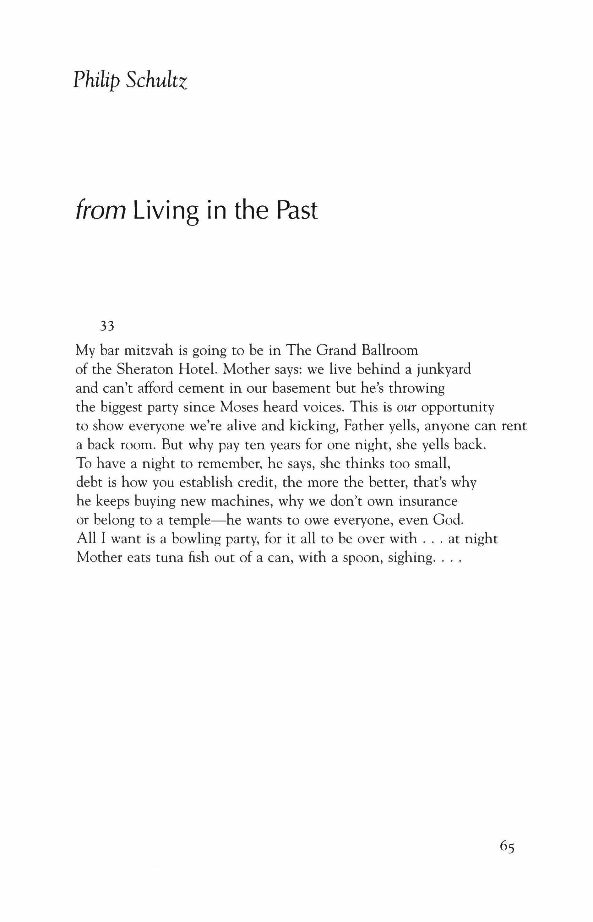 Illinois Press in 2000. A recipient of a 2003 NEA Fellowship, he teaches at the University of North Texas. D. Nurkse is the author of seven books of poetry, most recently The Fall (Knopf, 2002). Chou Ping writes poetry in Chinese and English, and his poetry and translations of Chinese poetry into English have appeared in such journals as the Literary Review and Nimrod, and a substantial selection of his work appeared in Out of the Howling Storm: The New Chinese Poetry (Wesleyan, 1993). He has taught at Washington University, Oberlin College, and Wooster College. Tadeusz Rozewicz is one of the leading post-war Polish writers. He has published over twenty volumes of poetry and is considered a major playwright, essayist, and fiction writer. Philip Schultz is the author of The Holy Worm of Praise (Harcourt, 2002). The poems in this issue are from a book-length sequence, Living in the Past, due out from Harcourt this April. Lloyd Schwartz is the Frederick S. Troy Professor of English at the University of Massachusetts Boston. He is classical music editor of the Boston Phoenix (for which he was awarded the 1994 Pulitzer Prize for Criticism) and a regular commentator on NPR's "Fresh Air." His articles, reviews, and poems have appeared in the New Yorker, the Atlantic, the New Republic, and elsewhere. Donna Seaman, an editor at Booklist, selected and introduced the fiction anthology, In Our Nature: Stories of Wildness (University of Georgia Press, 2002), and is currently working on a collection of interviews with writers based on her Chicago radio program, "Open Books." Neil Shep-