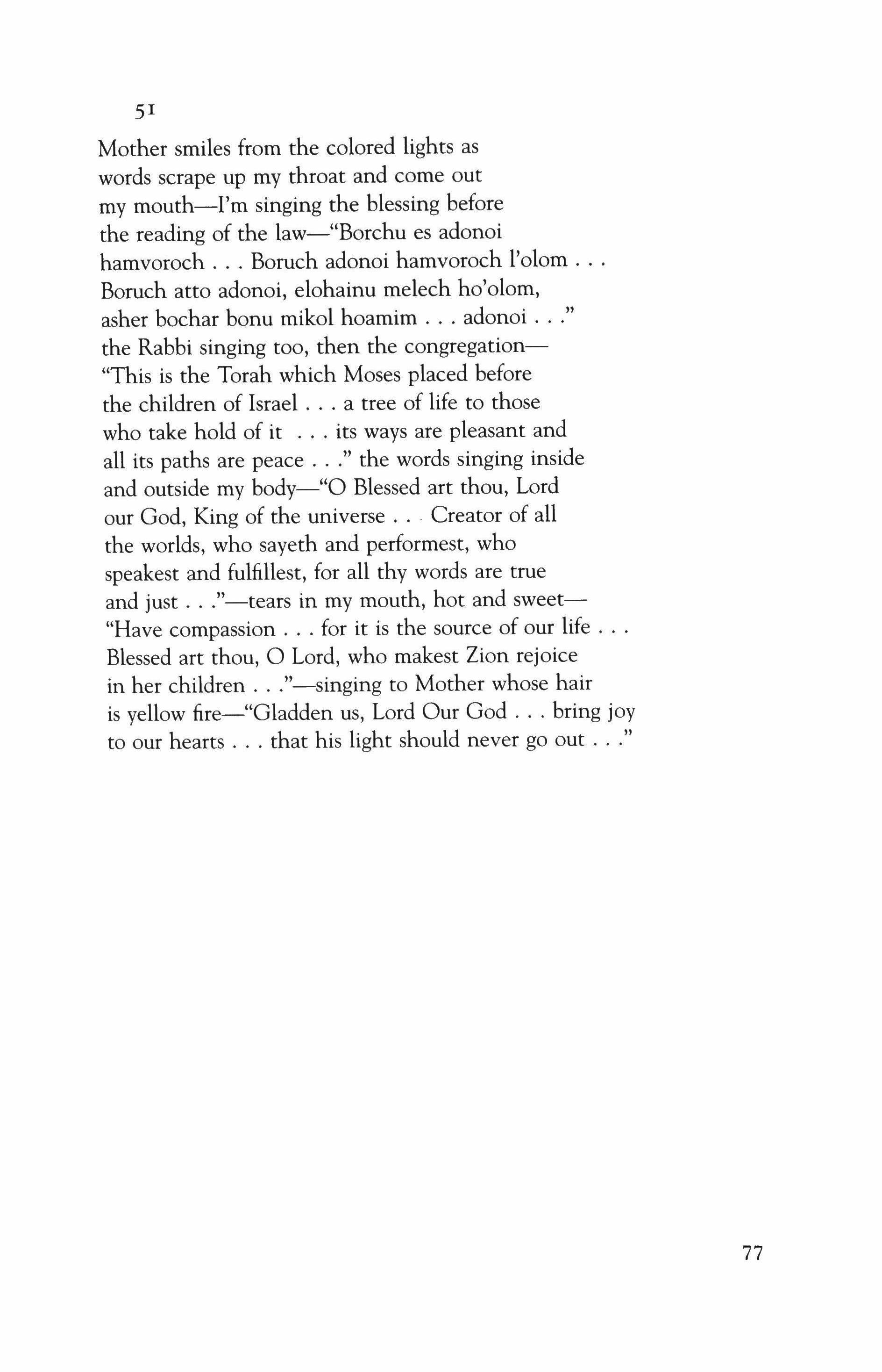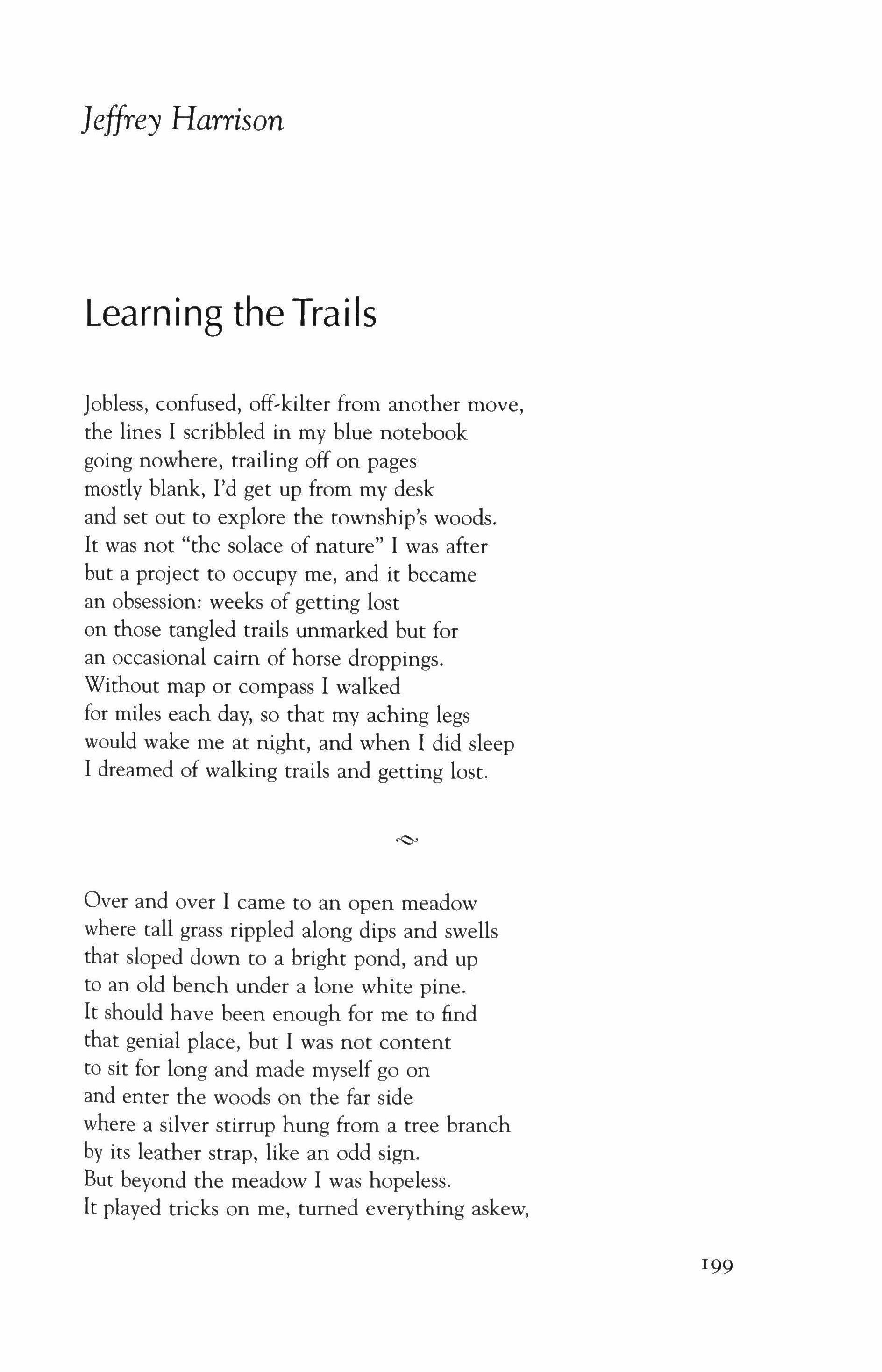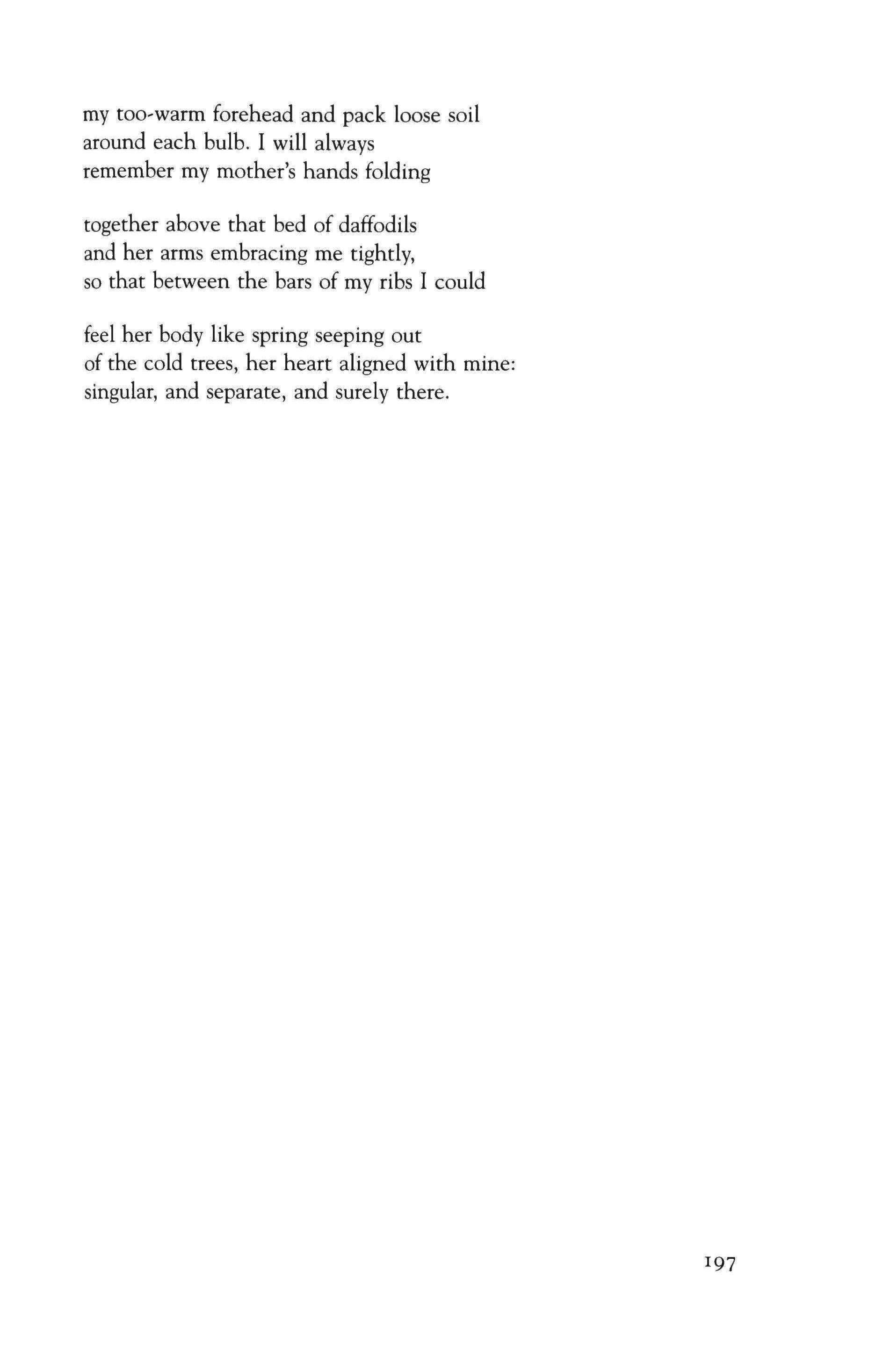 Leeway Award for Excellence in Poetry, and a Pew Fellowship in poetry. Her poems have appeared or are forthcoming in American Poetry Review, Prairie Schooner, Threepenny Review, and elsewhere. She teaches at Haverford College. Alexai Galaviz-Budziszewski has published work in many journals, including the Alaska Quarterly Review, BOOK, and Third Coast. He lives in Chicago with his wife and young daughter. Christine Garren has published two books of poetry, Among the Monarchs (2000) and Afterworld (1993), both from the University of Chicago Press. Kimiko Hahn is the author of six collections of poetry, most recently The Artist's Daughter (W.W. Norton, 2004), and has received fellowships from the National Endowment of the Arts, the New York Foundation for the Arts, the Lila Wallace-Reader's Digest Fund. She teaches at Queens College/CUNY. Judith Hall is the author of To Put the Mouth To (William Morrow, 1992), Anatomy, Errata (The Ohio State University Press, 1997), and, most recently, The Promised Folly (TriQuarterly Books, 2003). She teaches at the California Institute of Technology. Joshua Harmon's fiction has appeared in Iowa Review, Bomb, Black Warrior Review, and elsewhere. He has been awarded fellowships from the Rhode Island State Council on the Arts and the NEA. Jeffrey Harrison's third book of poems, Feeding the Fire, was published by Sarabande in 2001. He was a 1999 Guggenheim Fellow and his poems have appeared or are forthcoming in the Yale Review, Poetry, the Southern Review, Agni, and others. David Her-