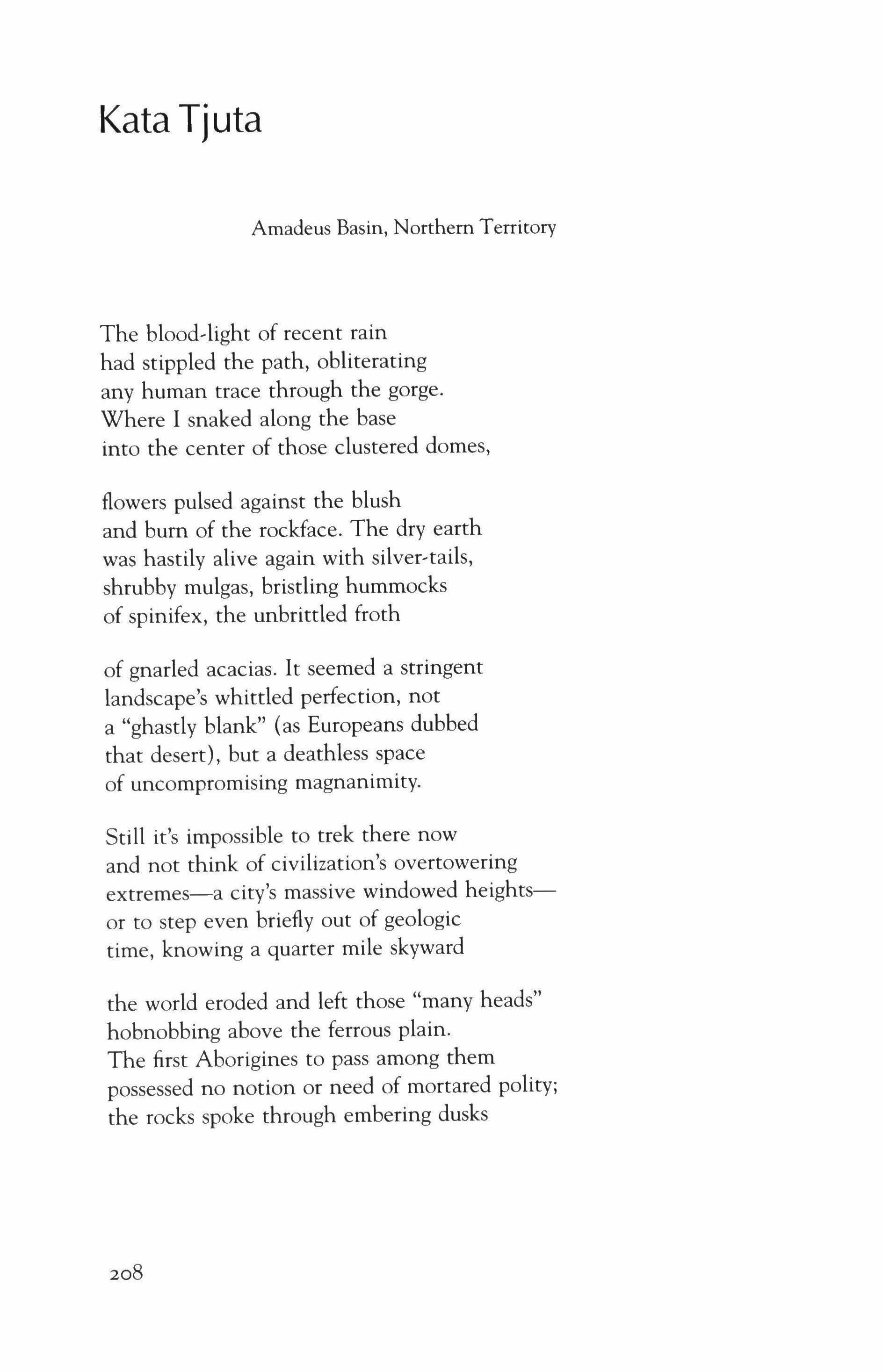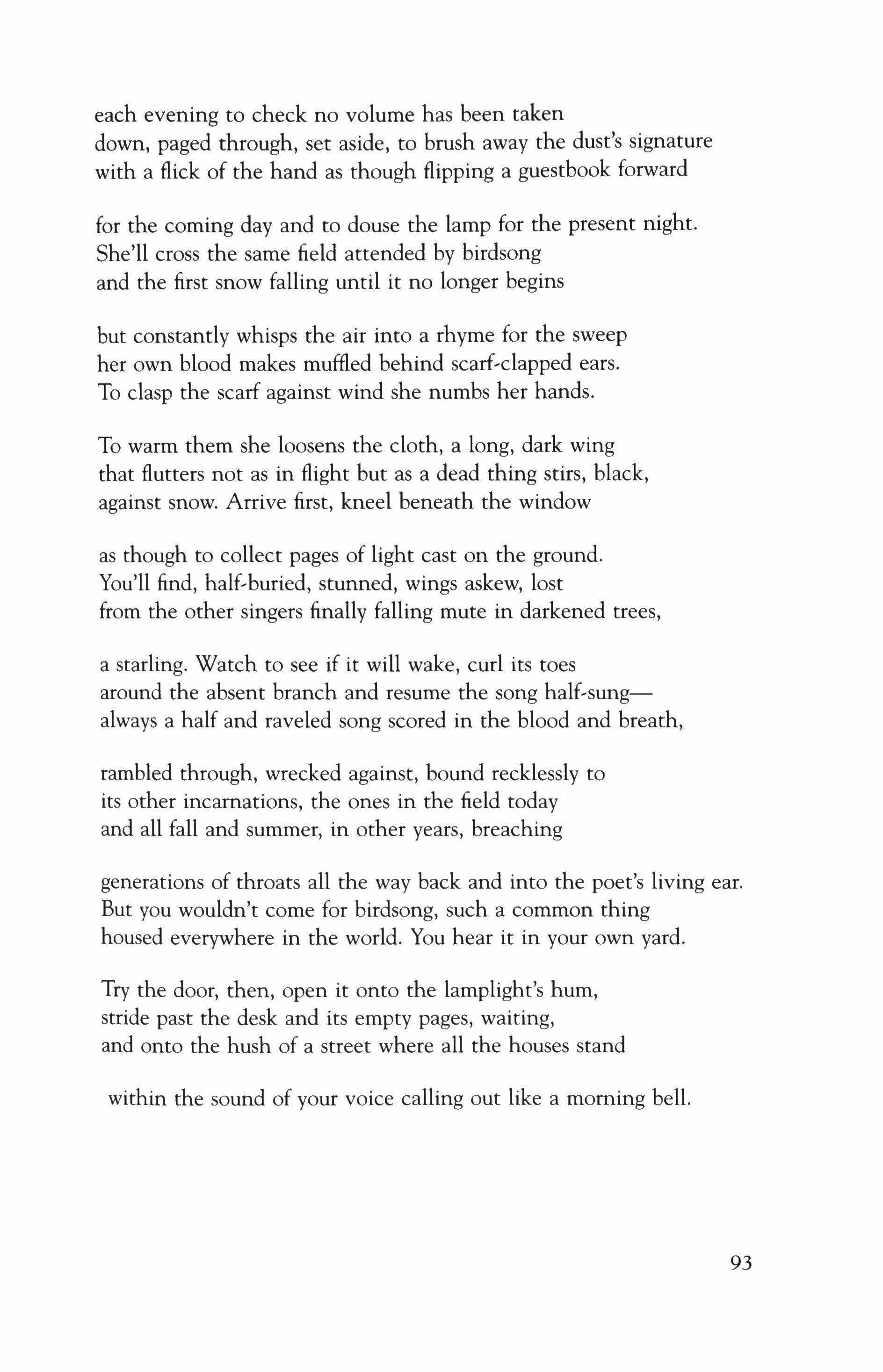 Poetry: David Baker, Rick Bass, Andrew Feld, Billy Collins, Susan Hahn, Bob Hicok, John Kinsella, Laurence Lieberman, Thylias Moss, Alicia Ostriker, Adrienne Rich, Richard Tillinghast, Daneen Wardrop, Lisa Williams, Jay Wright