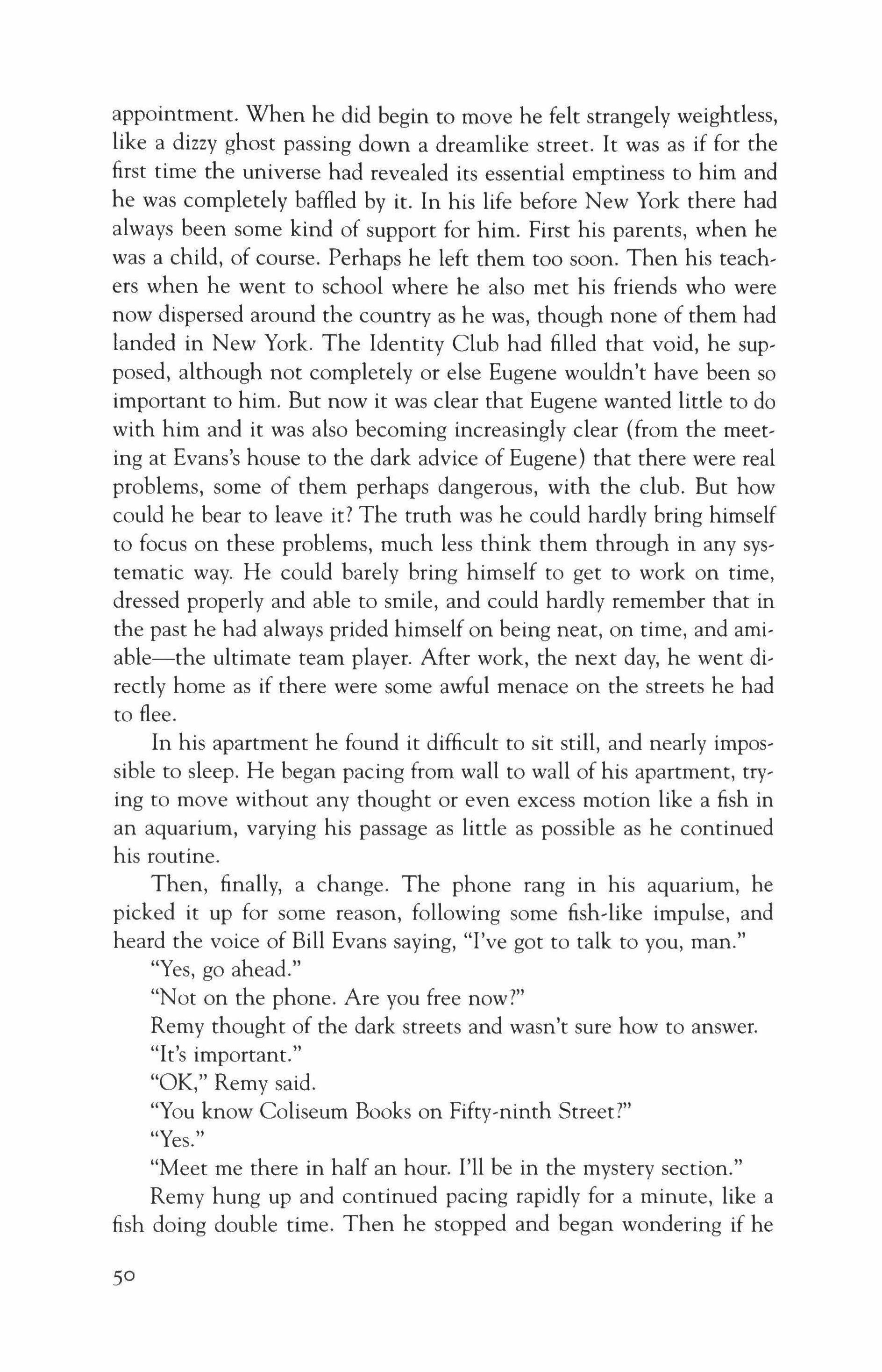 Every afternoon at 5:15, I stop in the middle of whatever sentence I'm writing, shut down my computer and lower the desktop. I emerge from my apartment on the fifteenth floor, take the elevator to the lobby and wave to the doorman, who, I imagine, might wonder where I disappear to for forty-five minutes every day at the same hour. I step out into the dusk-cooked evening, pass Flowerland, its large green awning advertising Bonsai Weddings Funeral; the Mattress Outlet, with its enticing display of Sealy Posturepedics; the playground where boys from nearby projects curse and play rollerblade hockey on an asphalt field; the ivyfaced house where Joseph O'Connell, the inventor of the coin-operated telephone once lived, and where the current residents in summer sit and smoke in the front courtyard. Some fifteen minutes later, I arrive at my destination, open the door to a scent like no other I know: wood polish, burnt incense, candle wax and steam heat.
