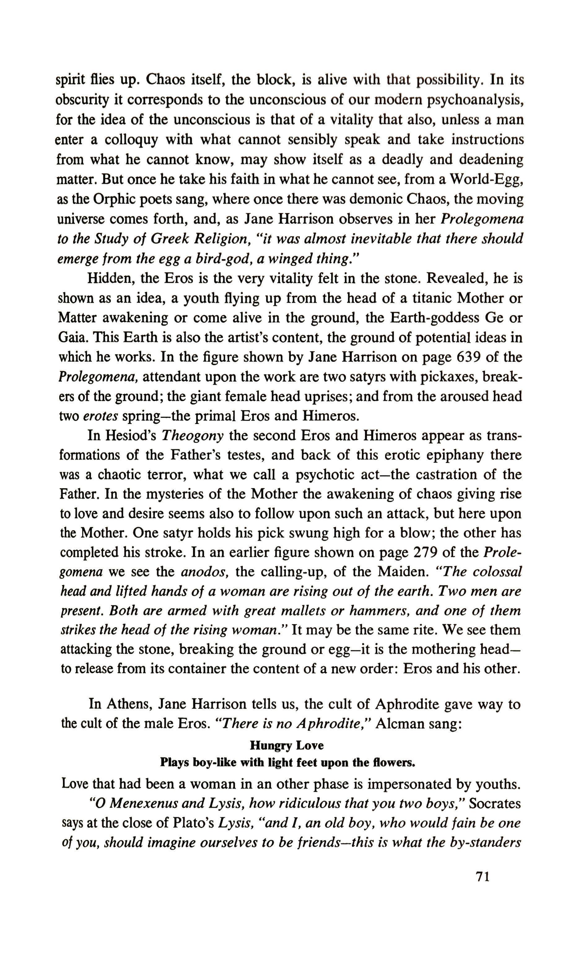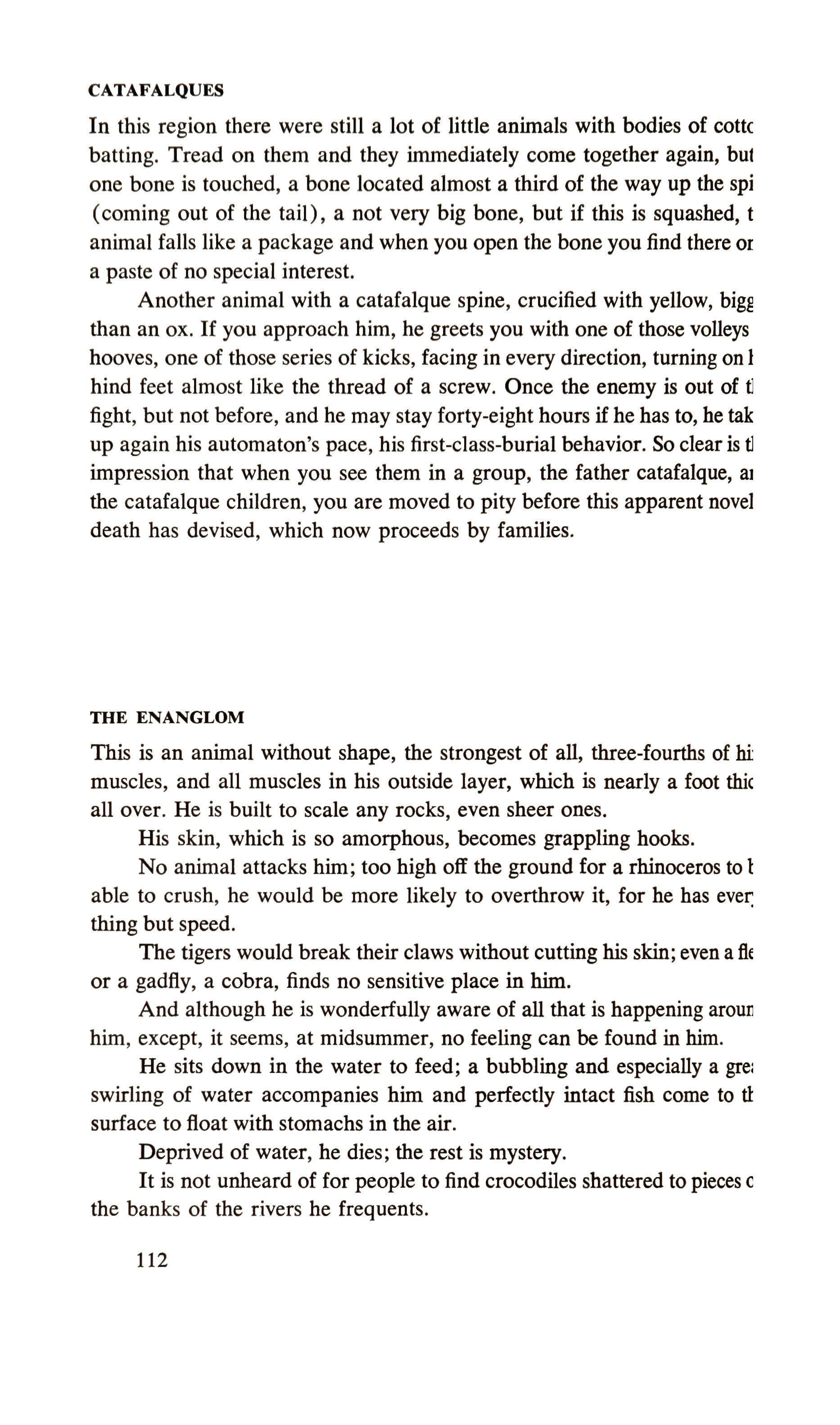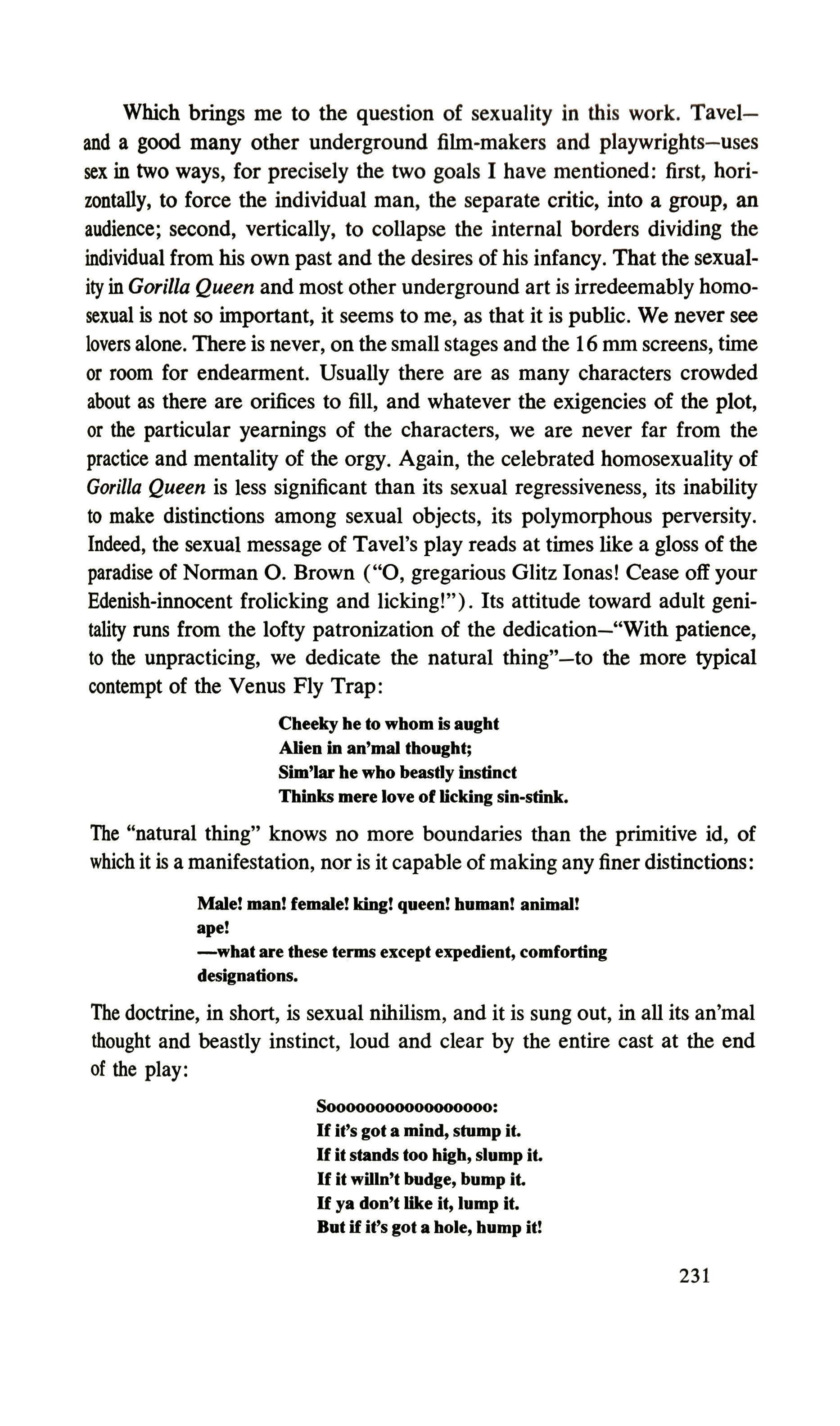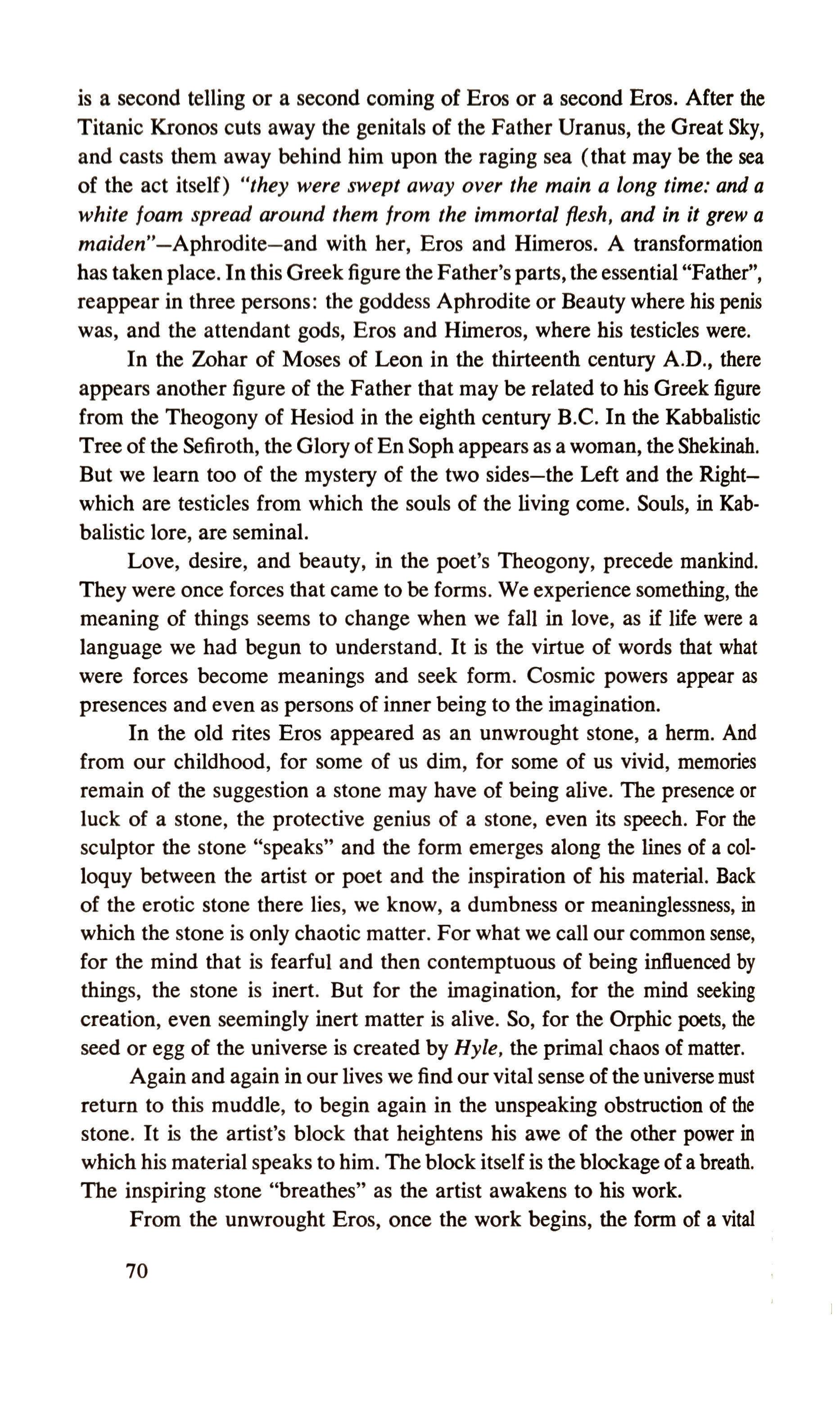 I believe I was discussing wby they call saliva tbe sweet wine of love, thougb I can't imagine wbo "they" are. Would you call saliva tbe sweet wine of love? Nor sbould I. Nor sbould I call it nectar or mead, denominate it cider. It goes back to birds, vomiting in tbeir babies. Perbaps it consists in the ritualization of attack these bared teetb neutralized. But nothing I say will prevent it, no description mar the quality or lessen the force of its attraction. No one can 'rtl '. agif)