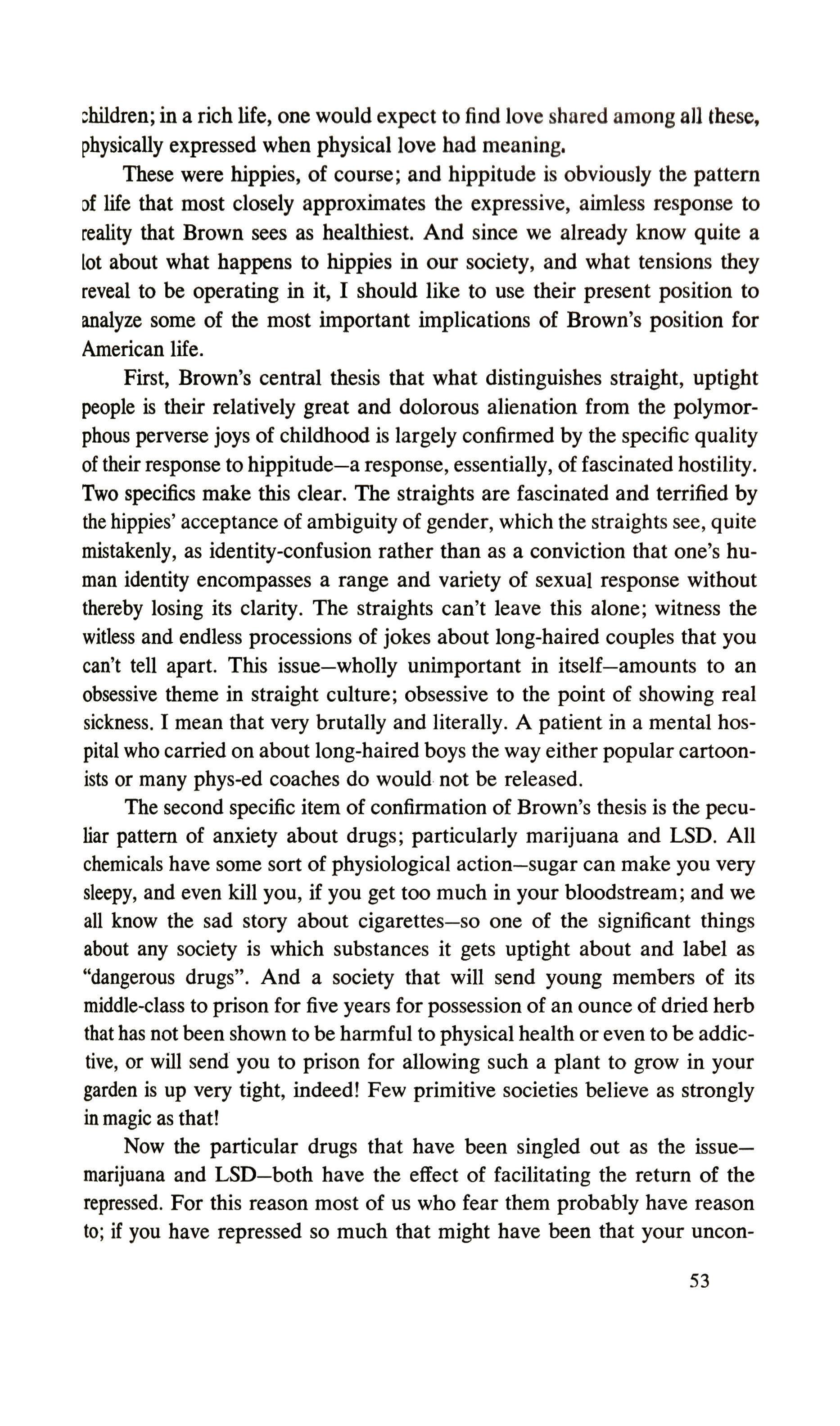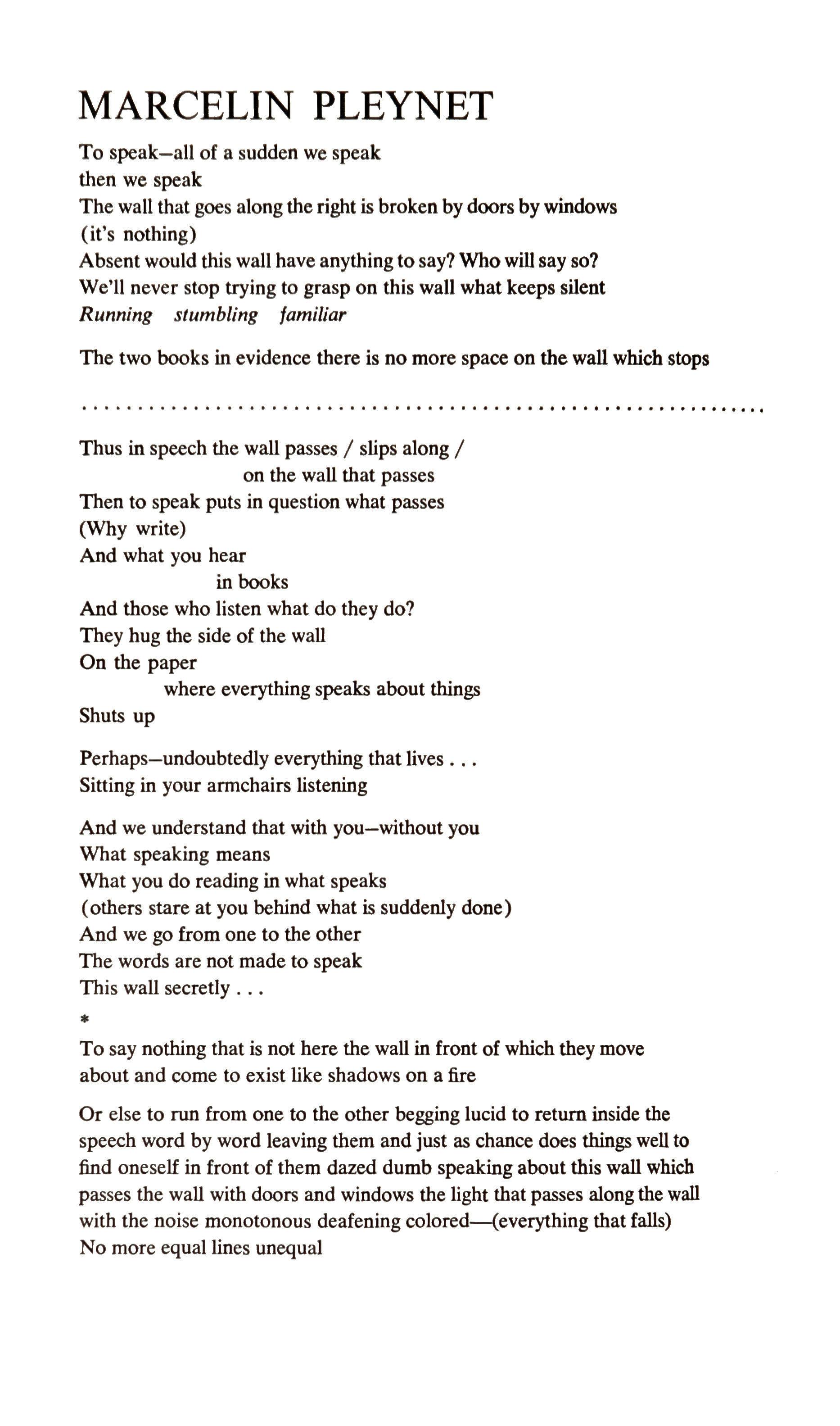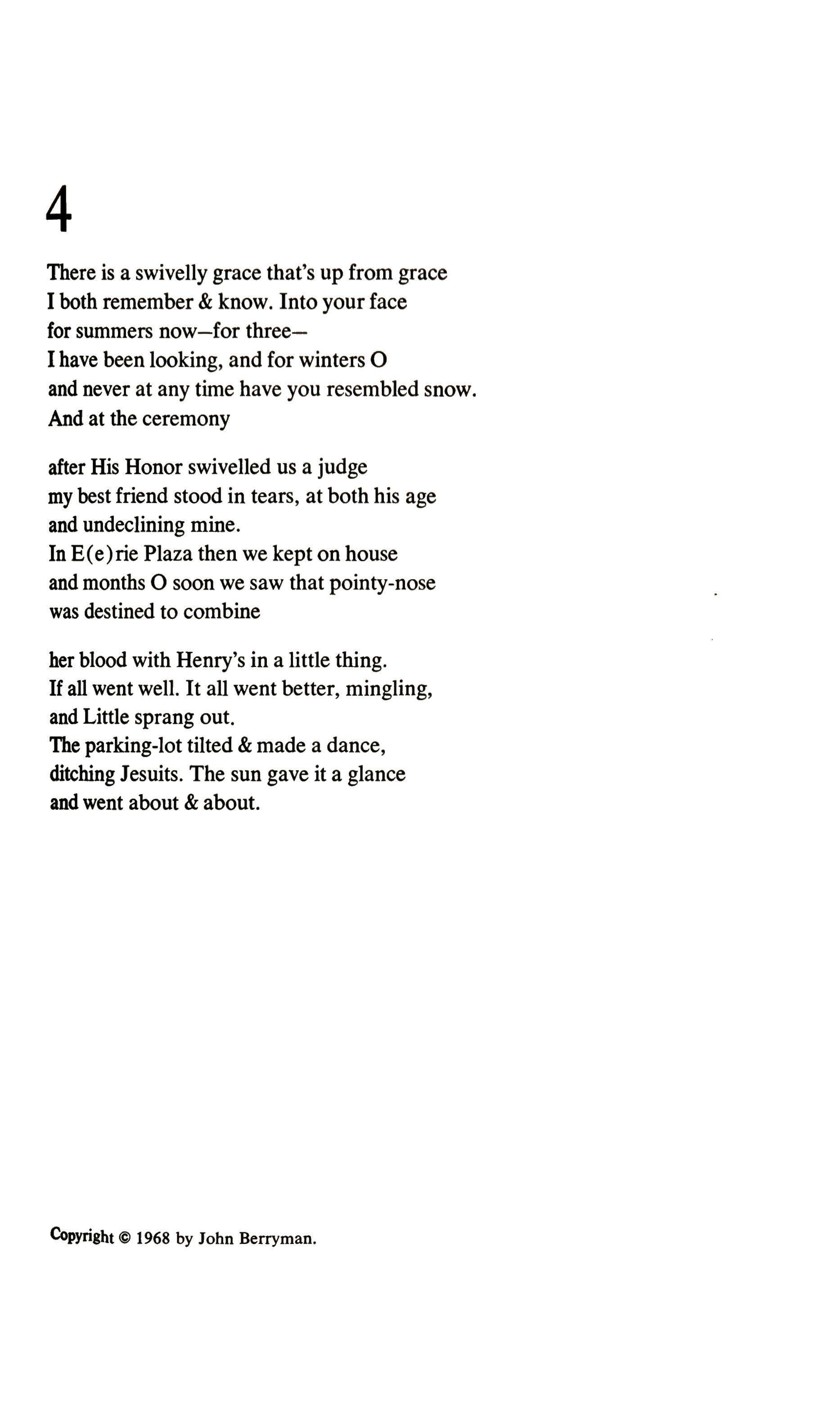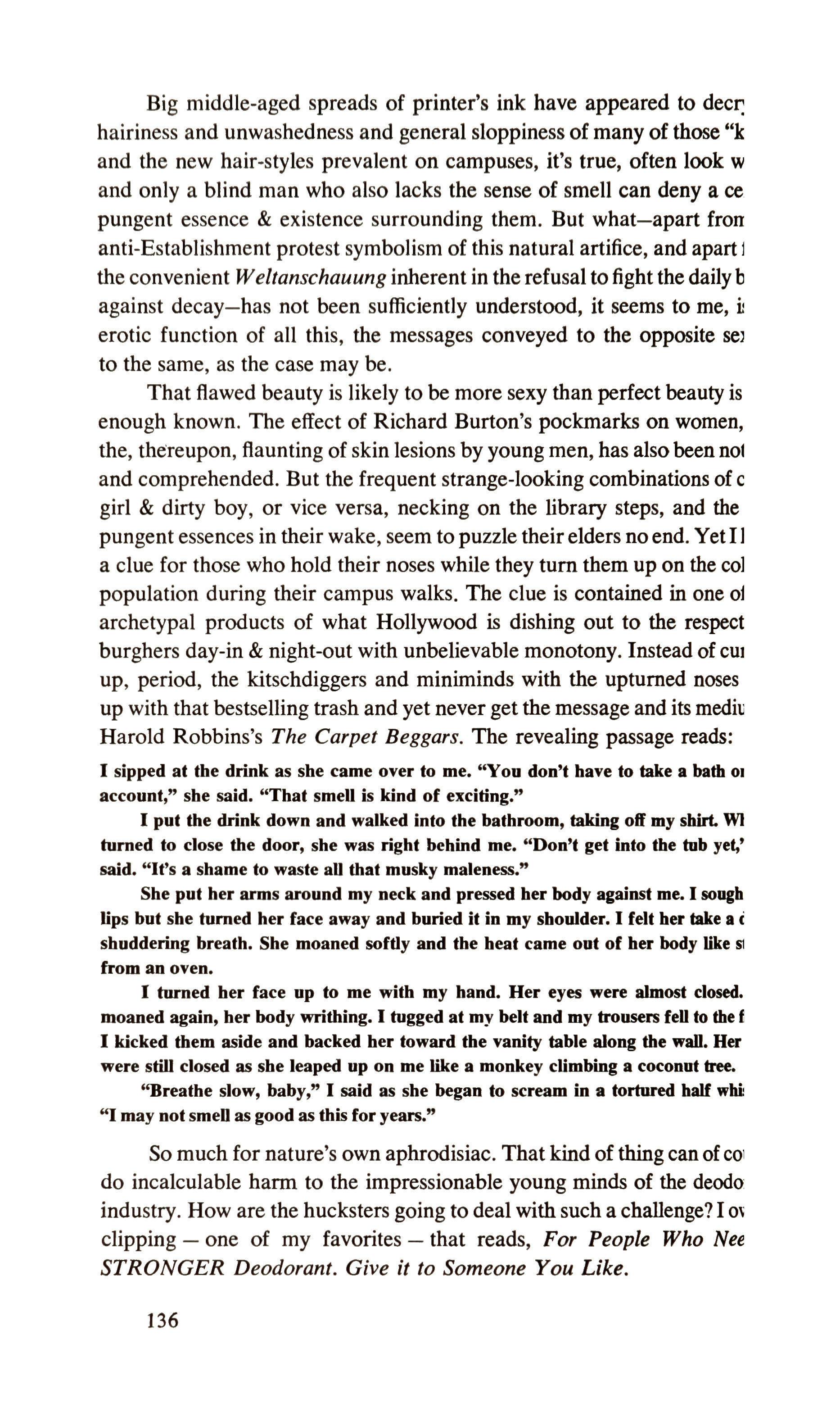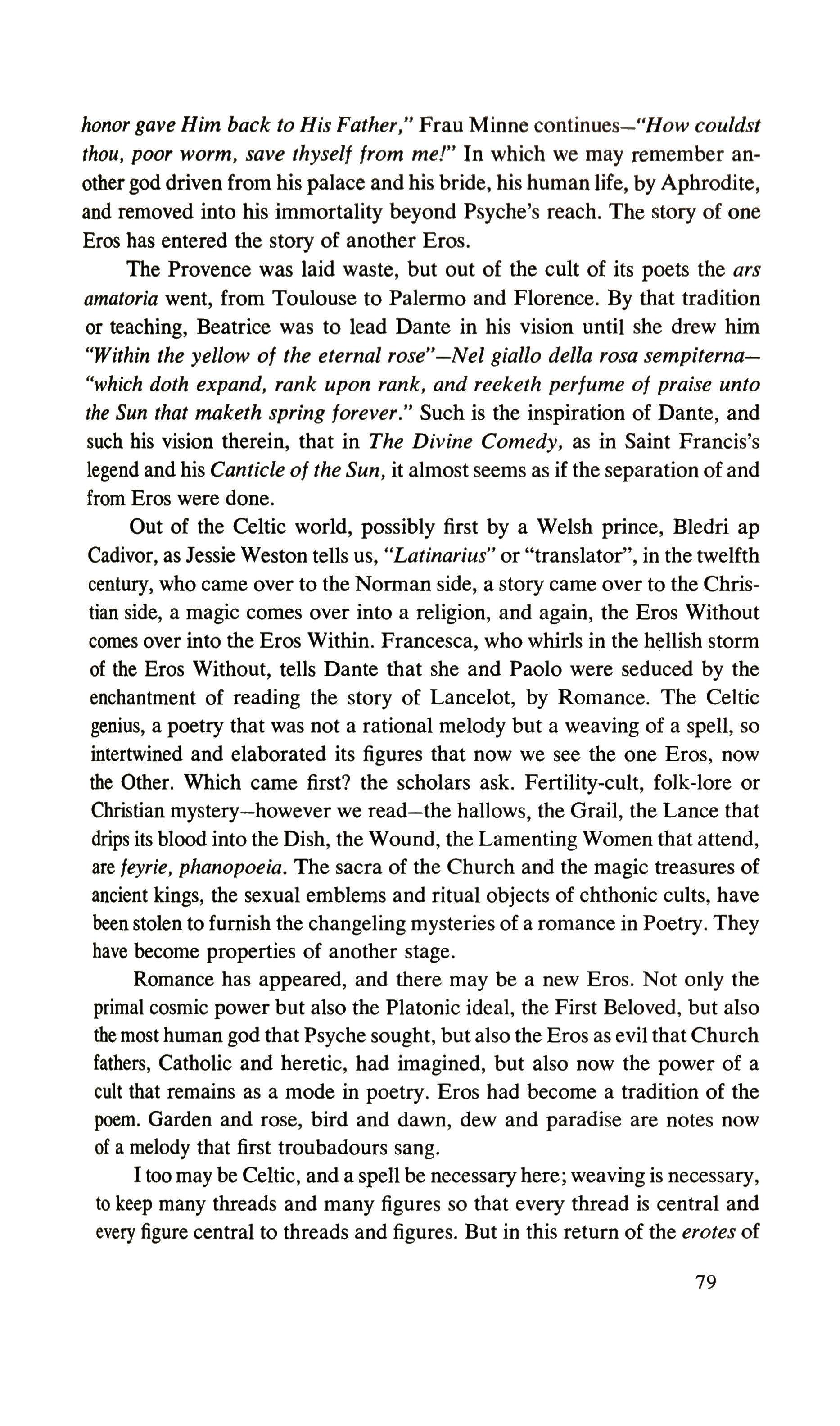 I believe I was discussing wby they call saliva tbe sweet wine of love, thougb I can't imagine wbo "they" are. Would you call saliva tbe sweet wine of love? Nor sbould I. Nor sbould I call it nectar or mead, denominate it cider. It goes back to birds, vomiting in tbeir babies. Perbaps it consists in the ritualization of attack these bared teetb neutralized. But nothing I say will prevent it, no description mar the quality or lessen the force of its attraction. No one can 'rtl '. agif)