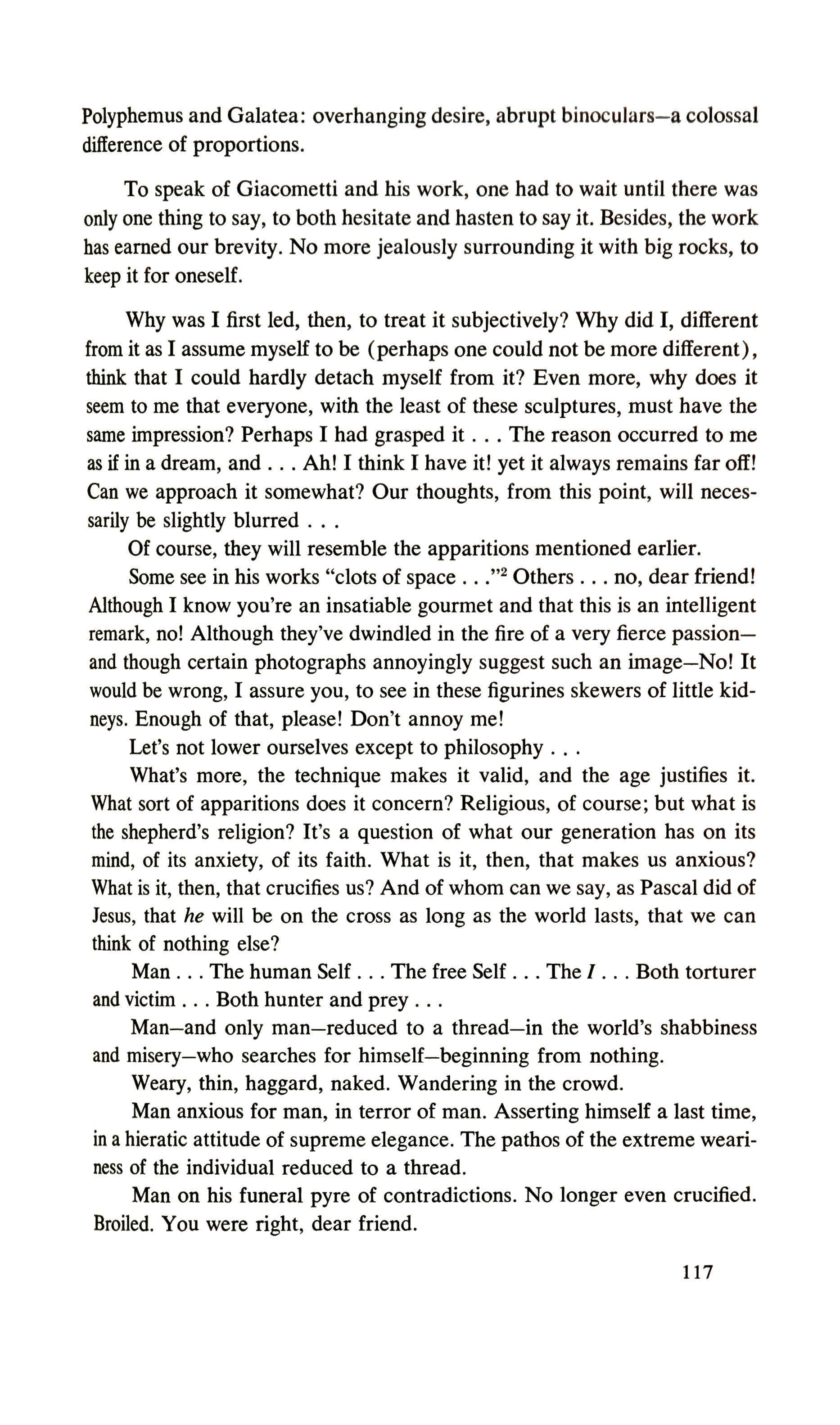 Francis Ponge: Reflections on the statuettes, figures, and paintings of Alberto Giacometti 115