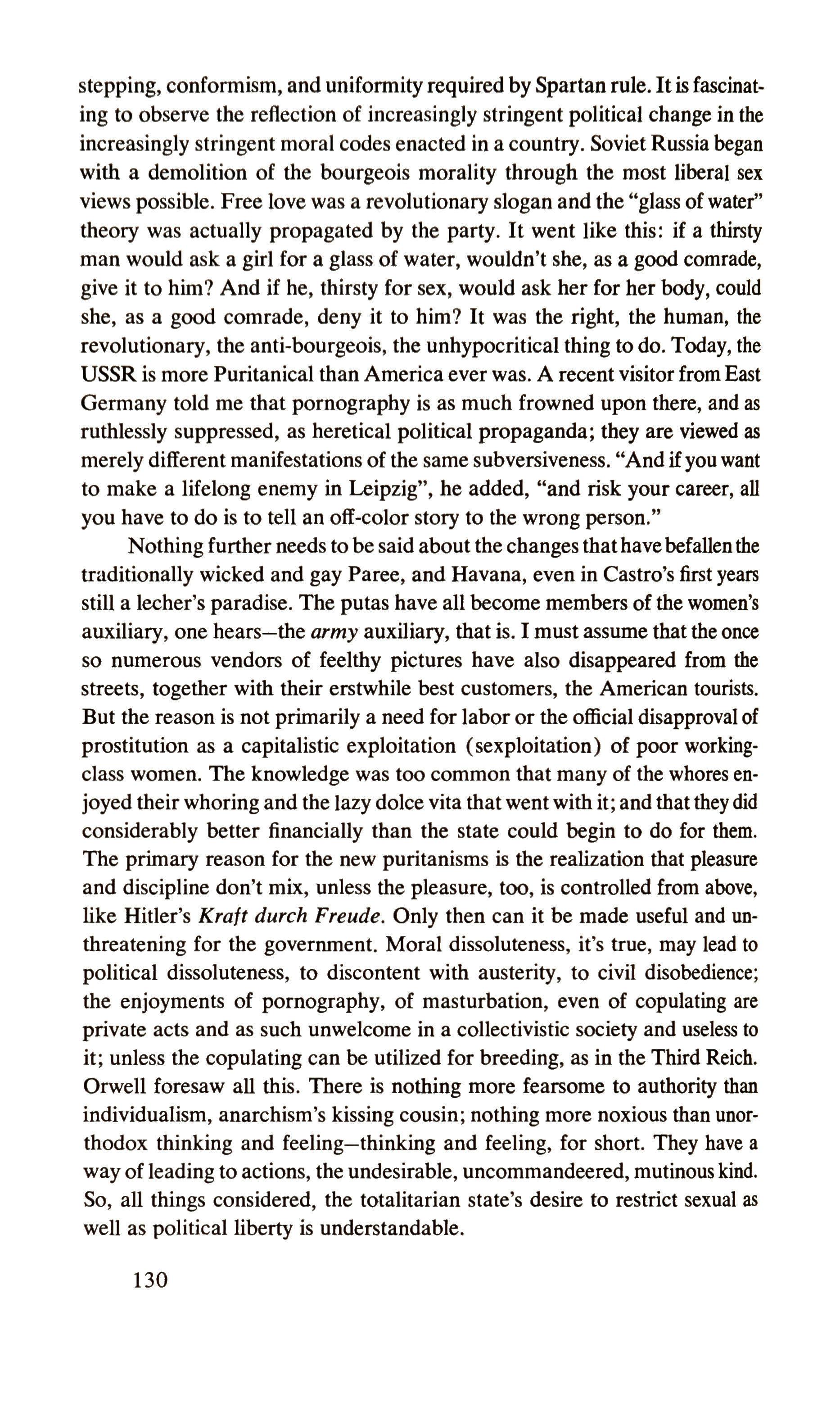 spermatozoa might, like famished millions ill rebellion, turn back to storm the heaven of their manufacture? Why not? So much of it's self-love. Why not infect yourself with your infections? No sacks to send your seed to safety in. Frankly, Mr. Gelvin you are Mr. Gelvin, aren't you? Gelvin of the shining helm and sample shoes? well, frankly, Mr. Gelvin, far better you than us.