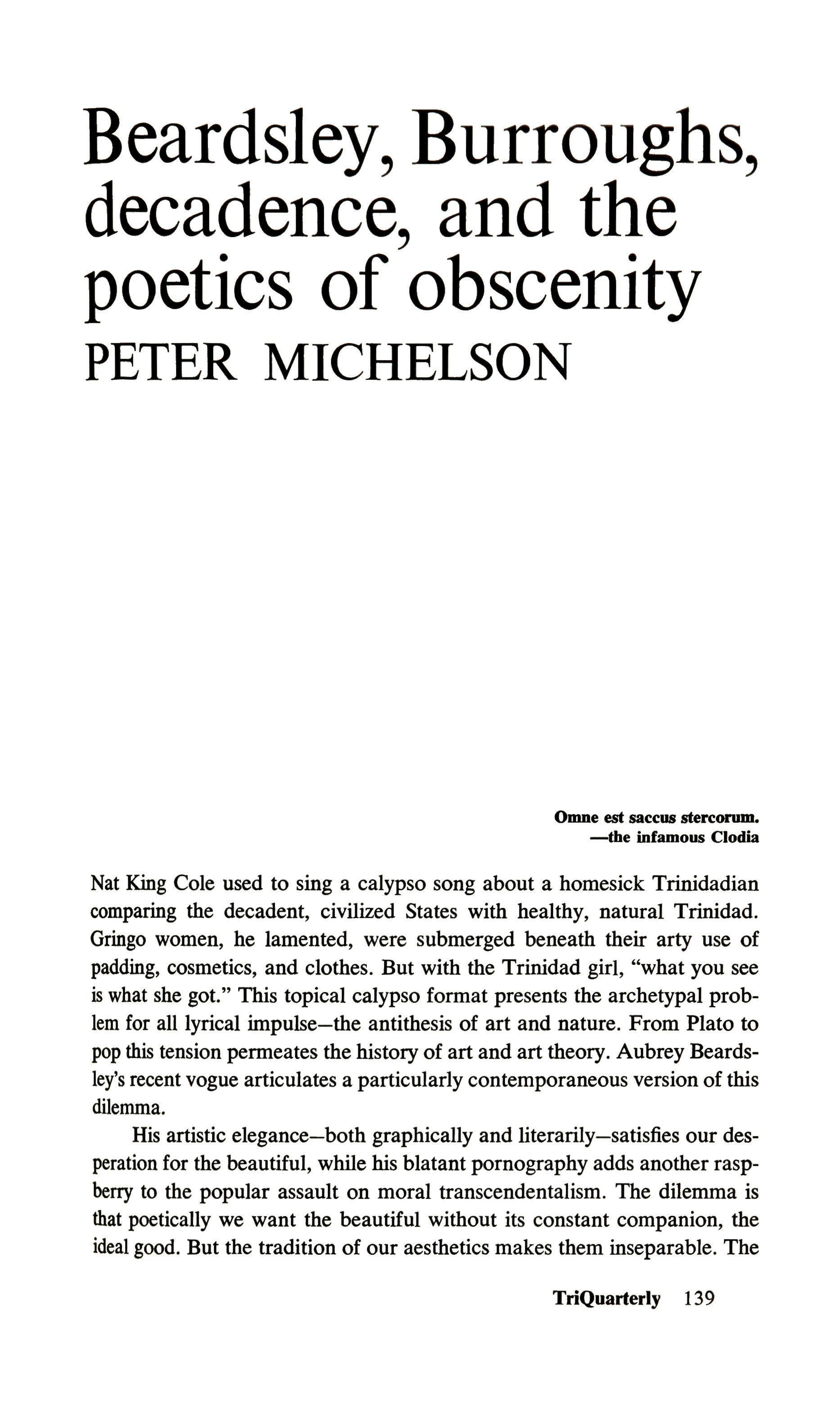 Beardsley, Burroughs, decadence, and the poetics of obscenity 139