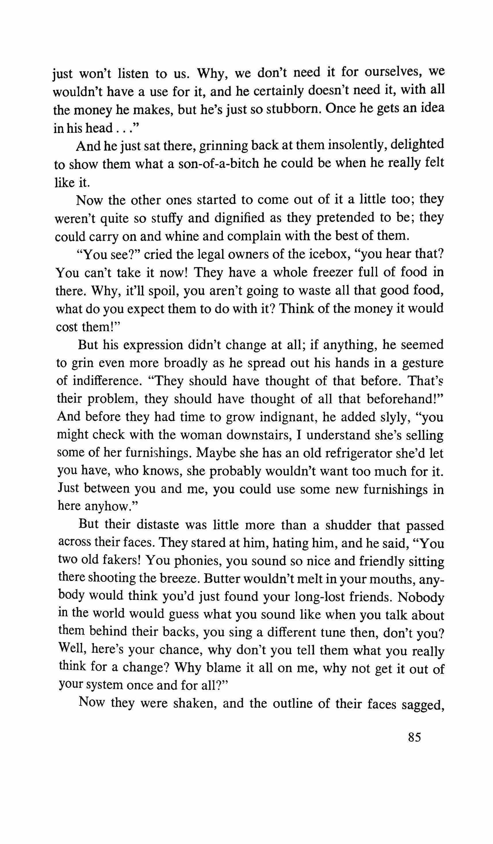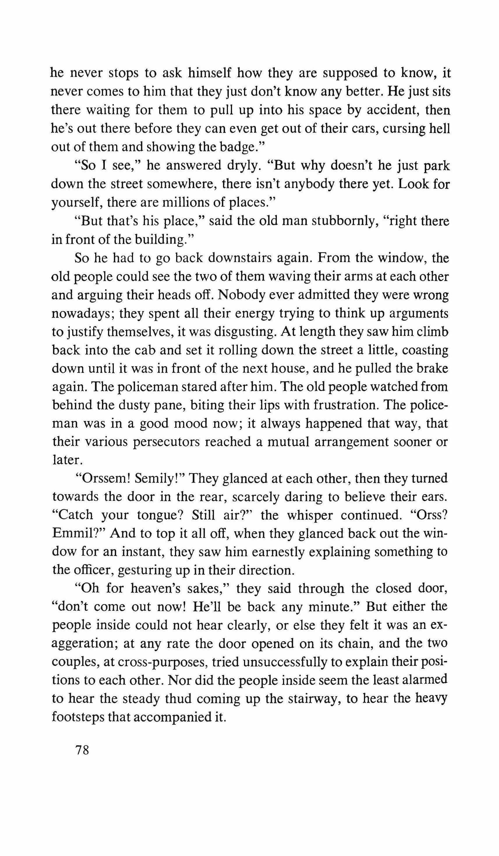 the park to her house. I smile as I pick it up. I bite one of the edges thinking that in spite of everything the poor old people would accept this gift.