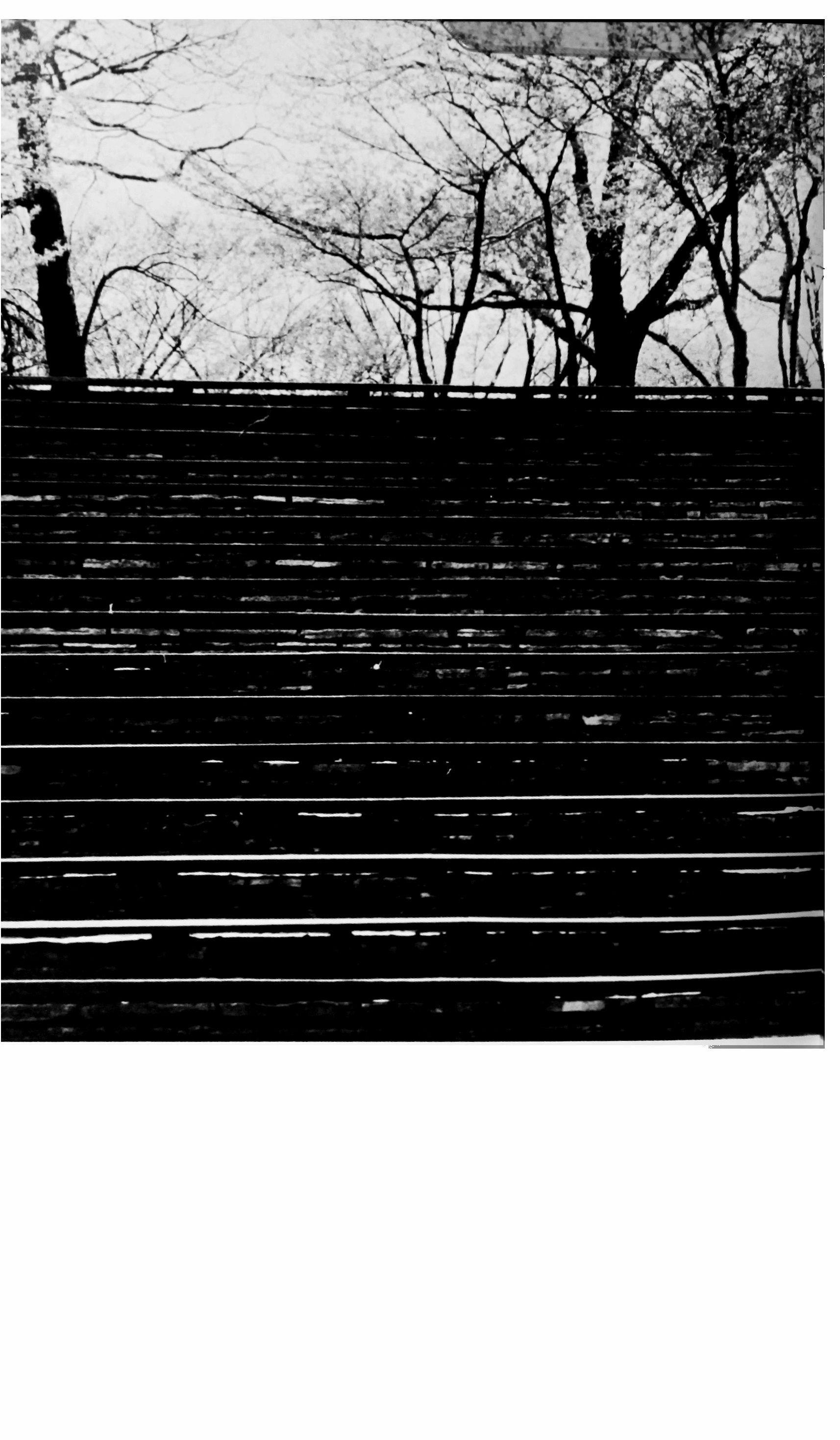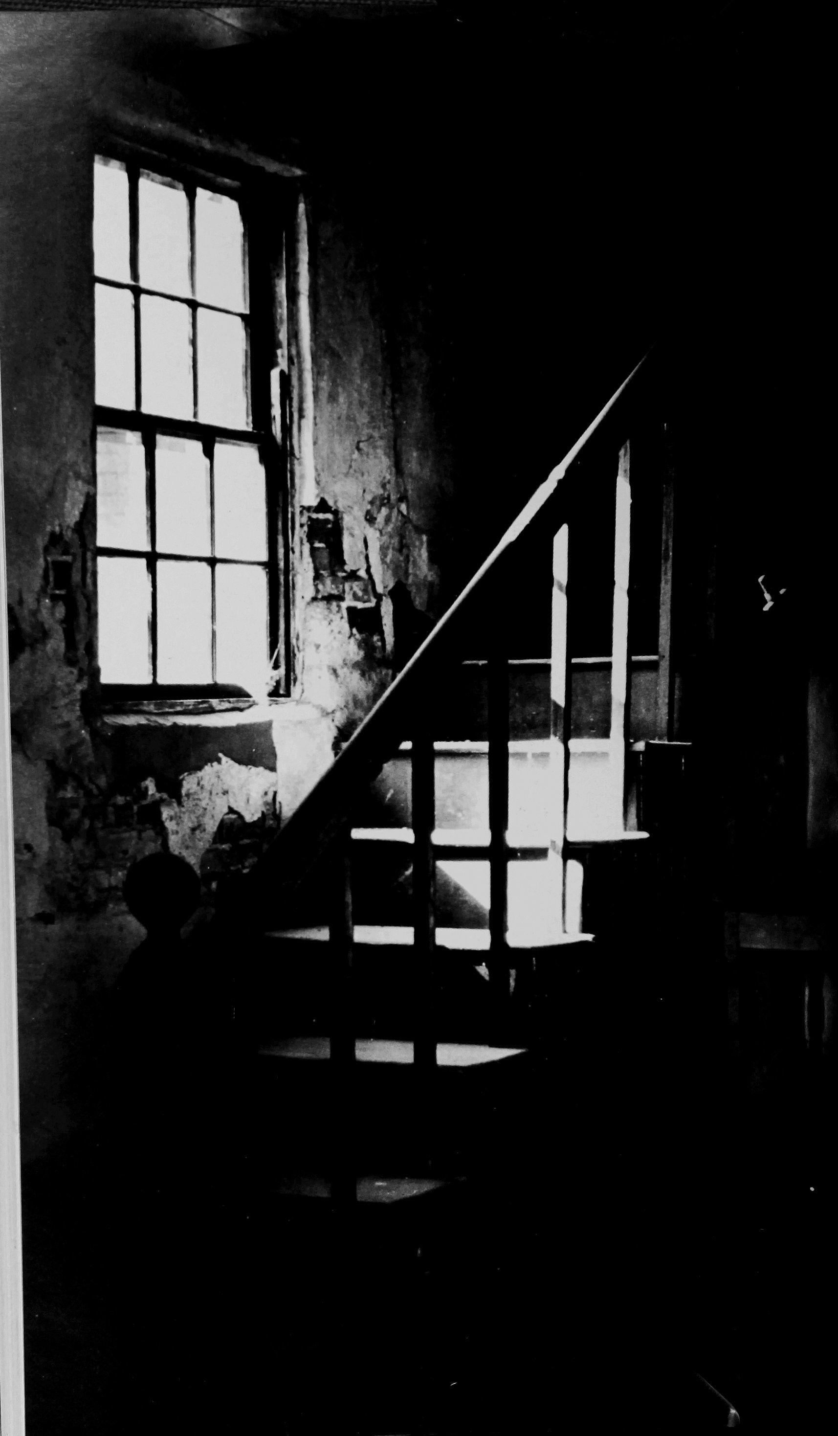 I keep my eyes closed. We go upstairs now. Two, five, eight, nine, twelve steps. Four hands guide my body.