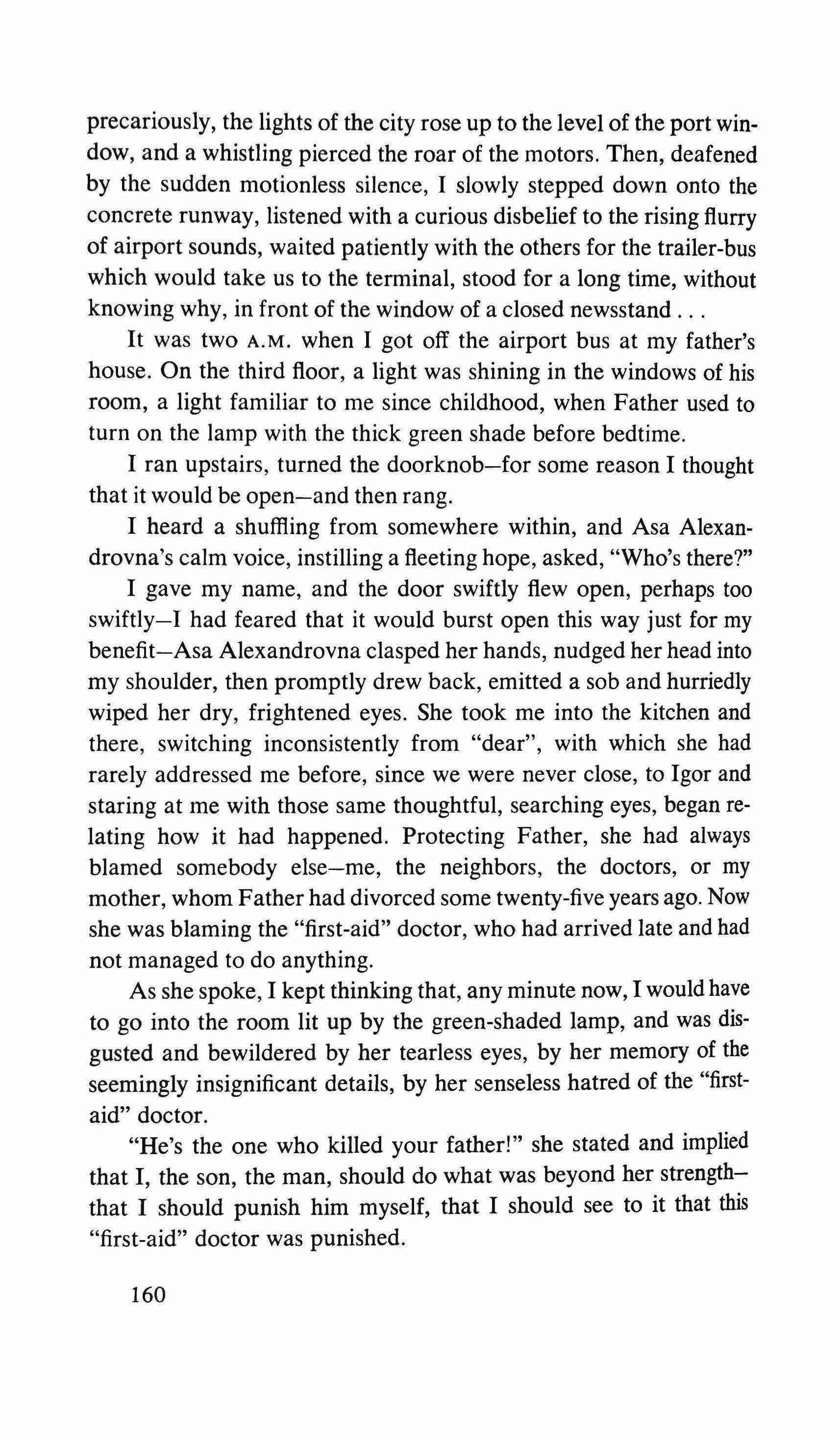 Upon hearing my voice, the person withdraws with heavy, uncertain steps. I ring the bell again, this time shouting: "Hello! Open up! What's wrong? Can't you hear me?"