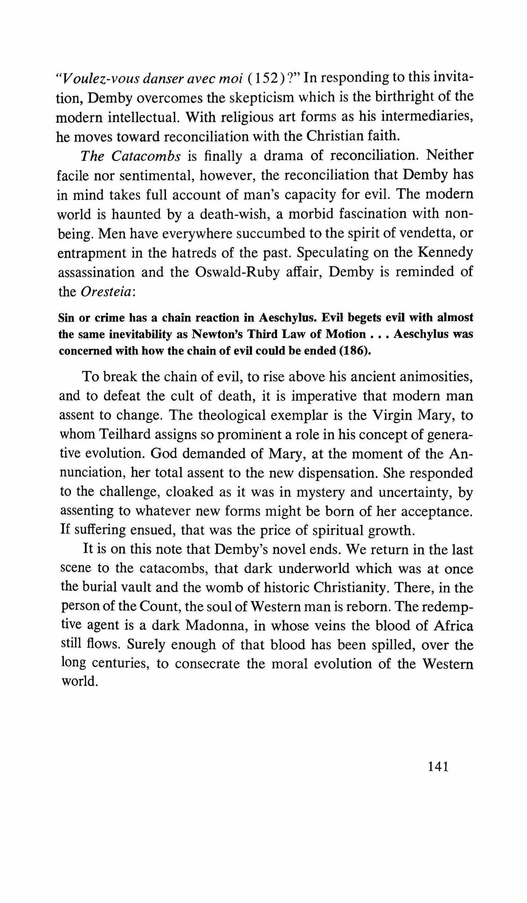 Yes; that red lipstick is under the chair. And if the lady smiles she does so with her slow hands which caress the rosary beads; for a minute I feel there's a joke on me which doesn't quite upset her features. She doesn't answer me this time either. for fifteen years at least, haven't you ?"