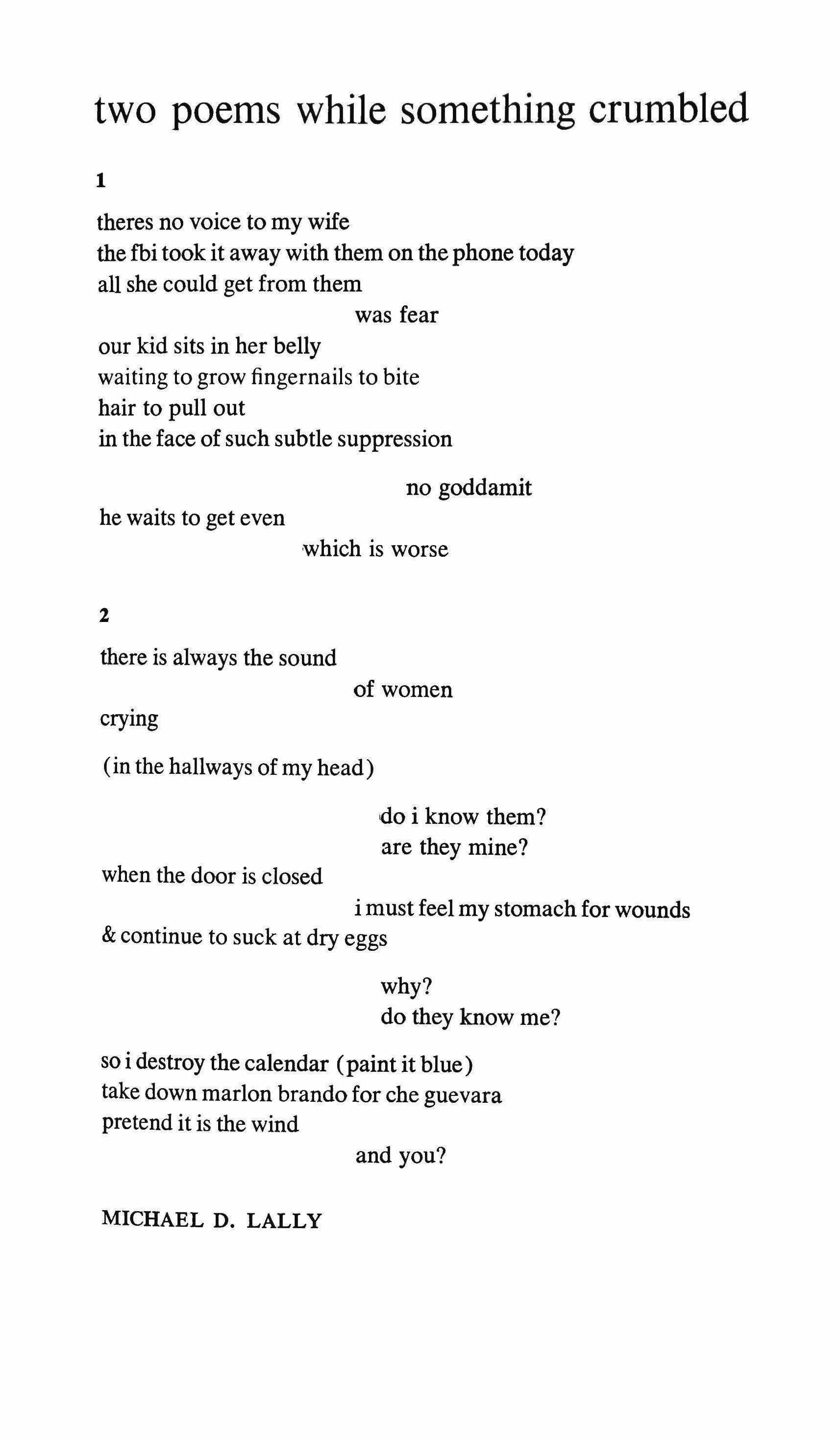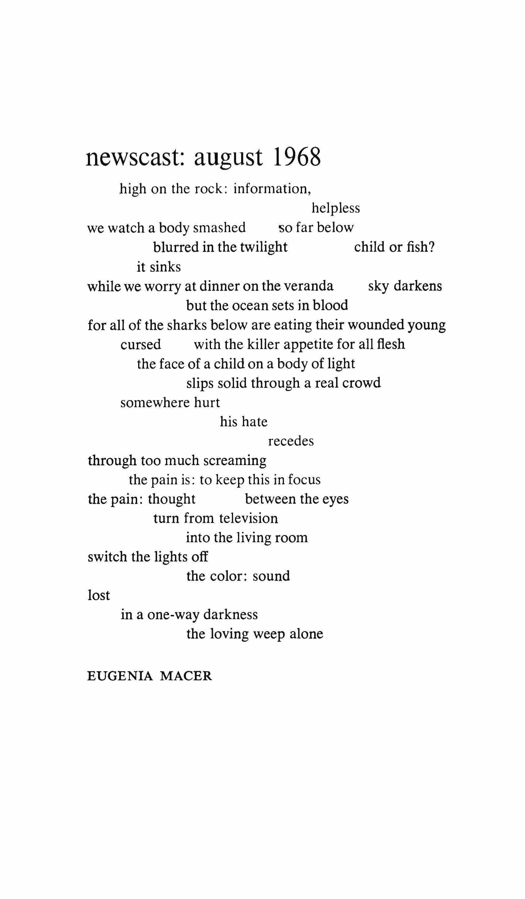 Two poems while something crumbled 89 newscast: august 1968 90