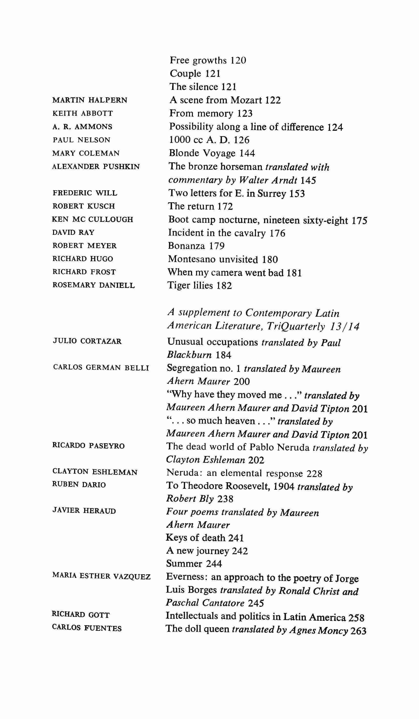 A supplement to Contemporary Latin American Literature, TriQuarterly 13/14