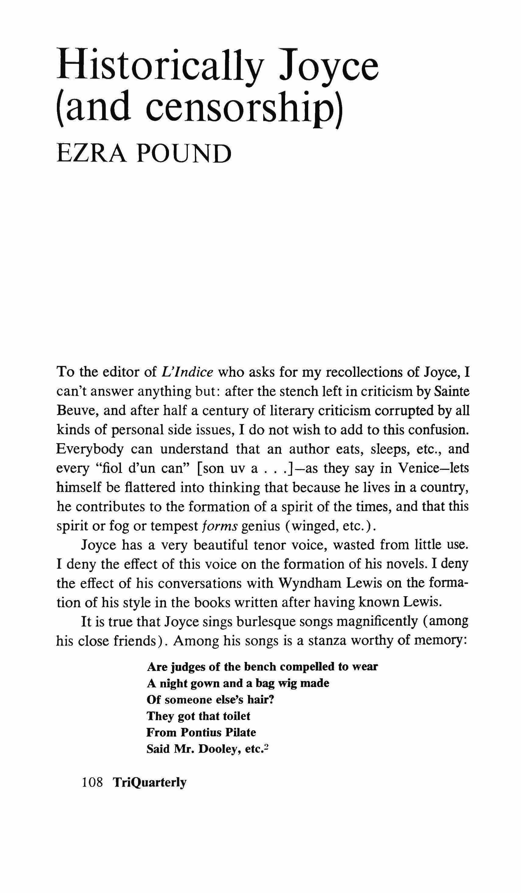 Historically Joyce (and censorship) translated by Forrest Read 108