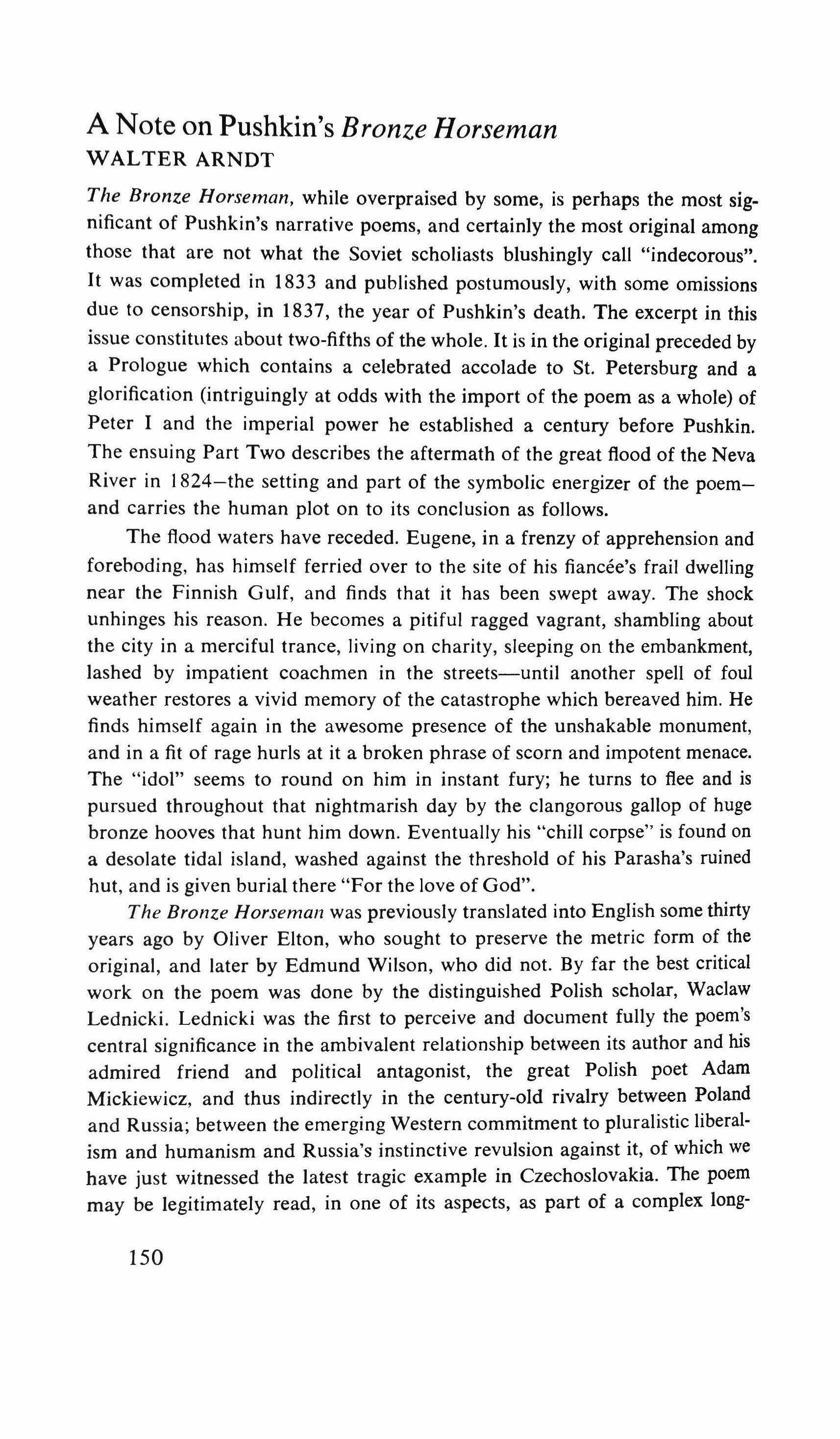 The bronze horseman translated with commentary by Walter Arndt 145