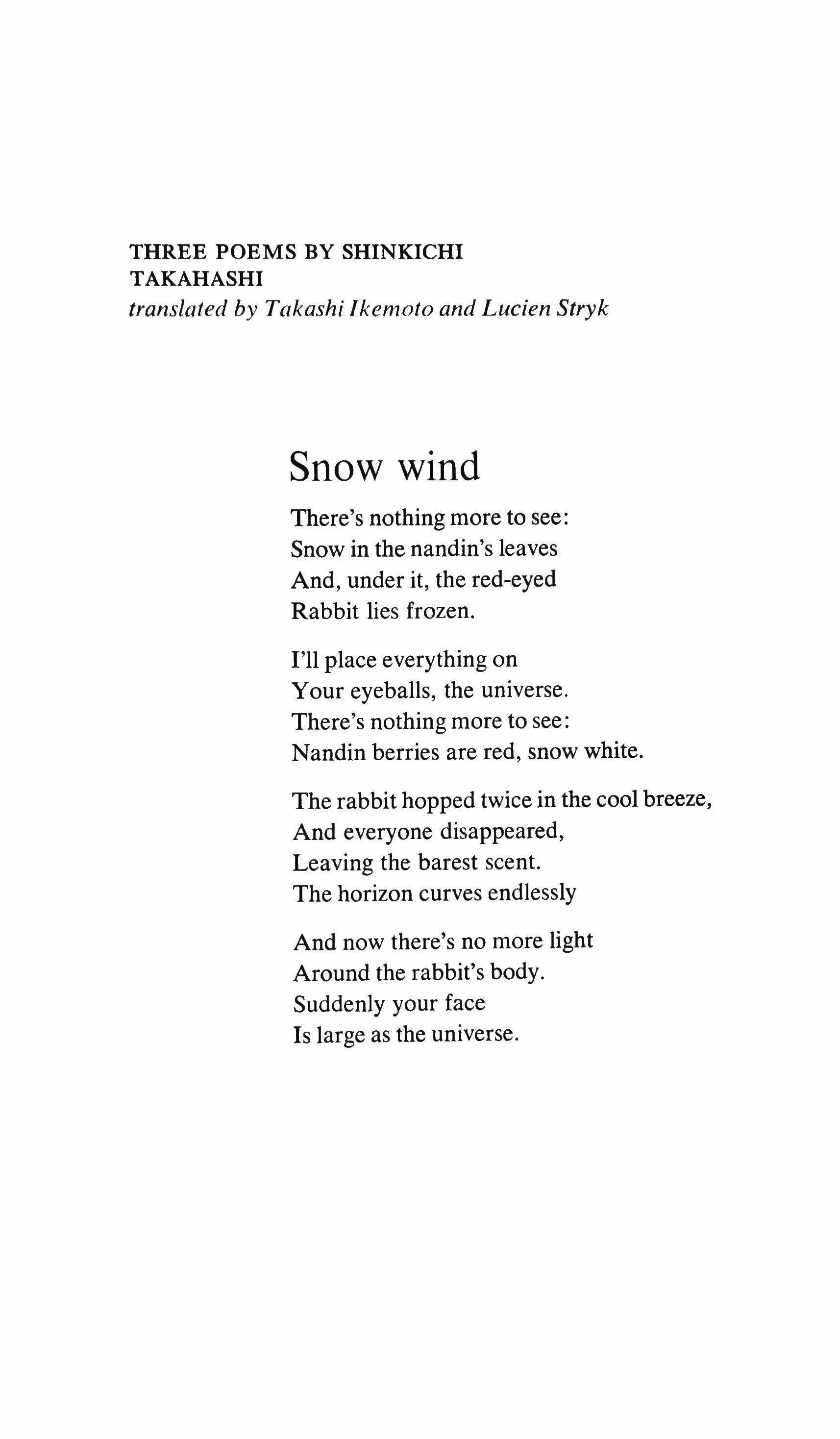 Three poems translated by Takashi Ikemoto and Lucien Stryk