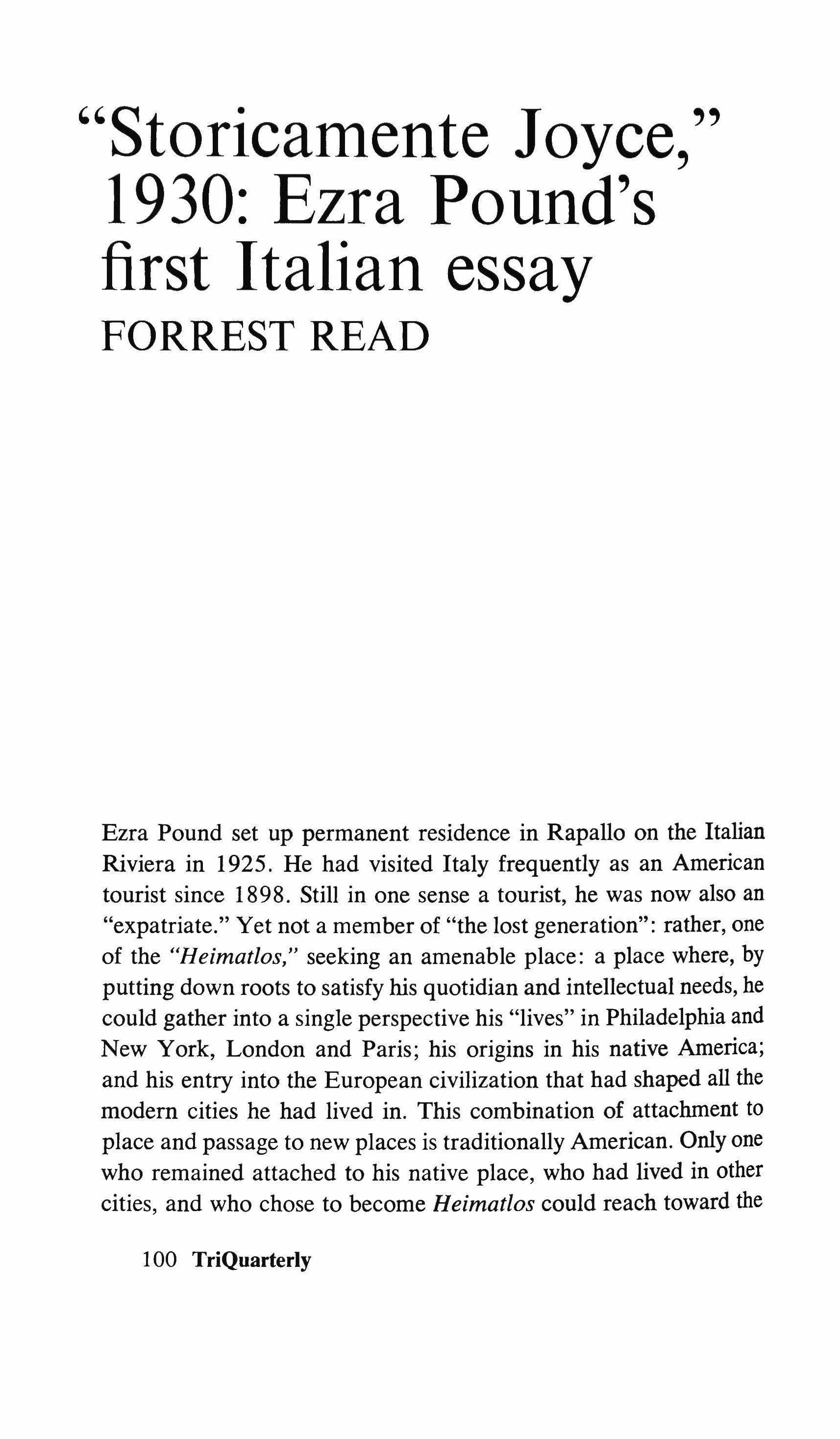 Overtures to Wilde's Salome 45 "Storicamente Joyce" 1930: Ezra Pound's first Italian essay 1 00