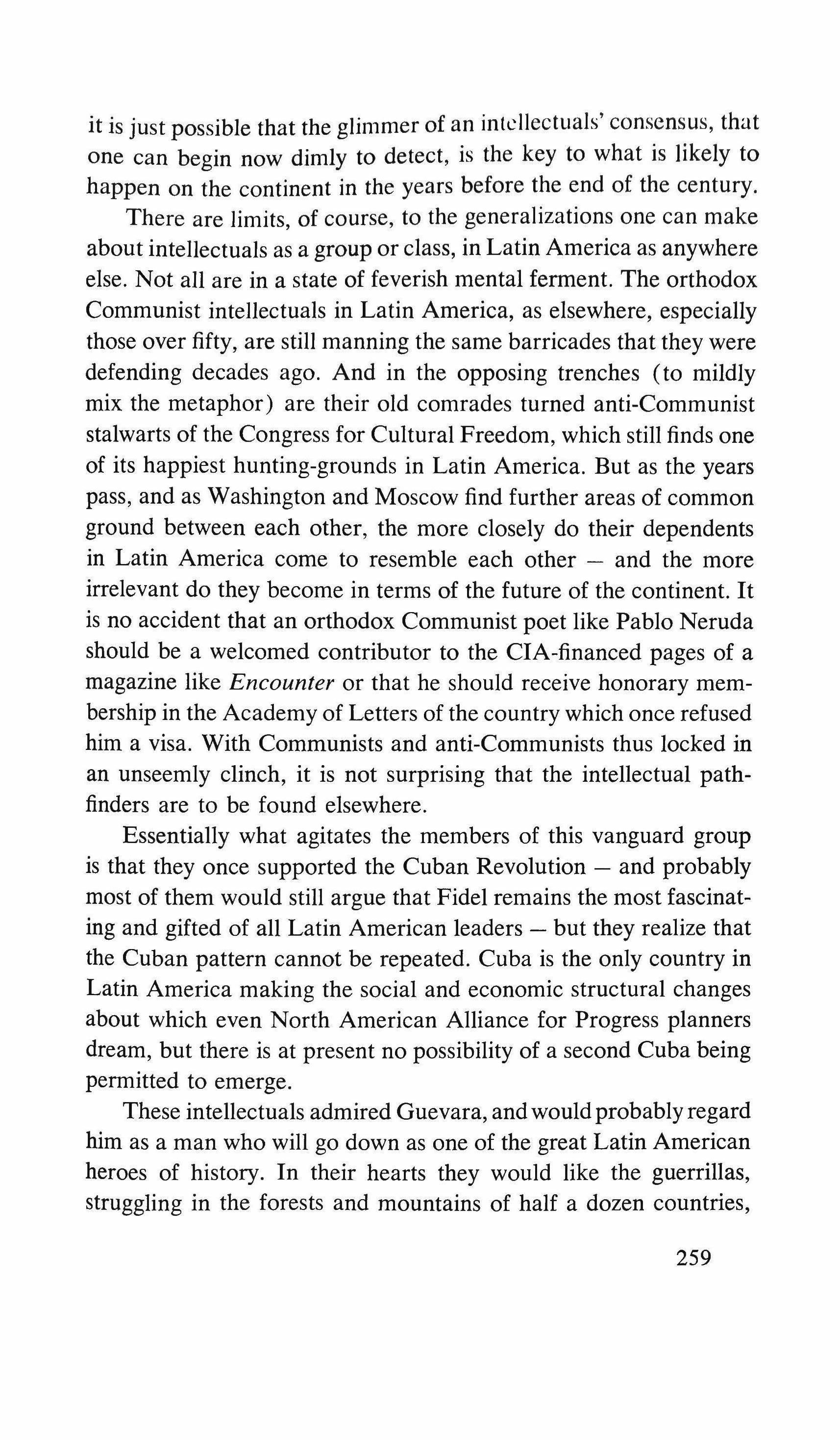 But at the same time as these vanguard intellectuals are embarking on a study of their own traditions and history in an effort to find a way out of the present difficulties, they are also looking out for a new tack which will permit a revolution to occur in Latin America that will take the United States by surprise.