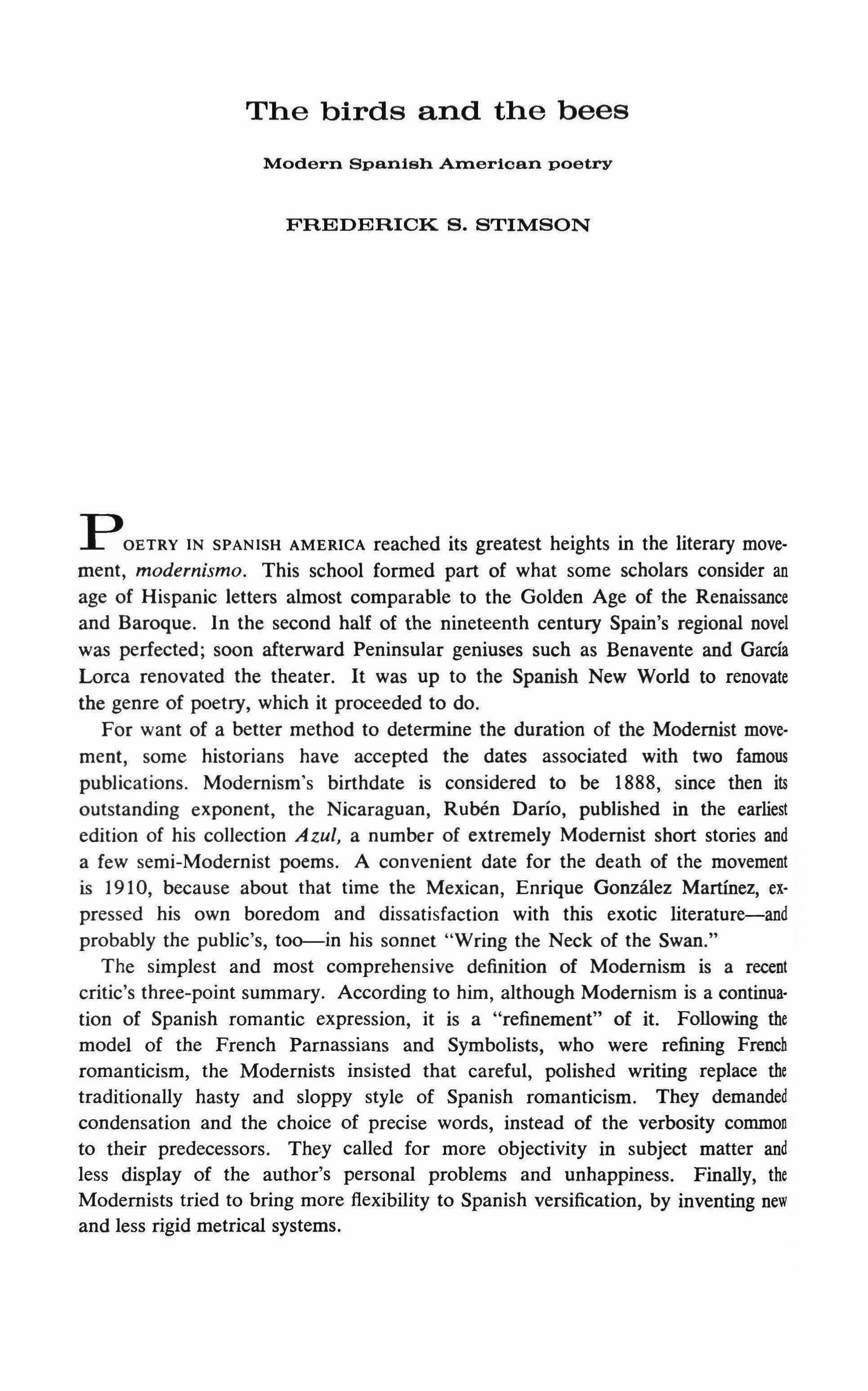 FREDERICK S. STIMSON 50 The birds and the bees: modern Spanish-American poetry